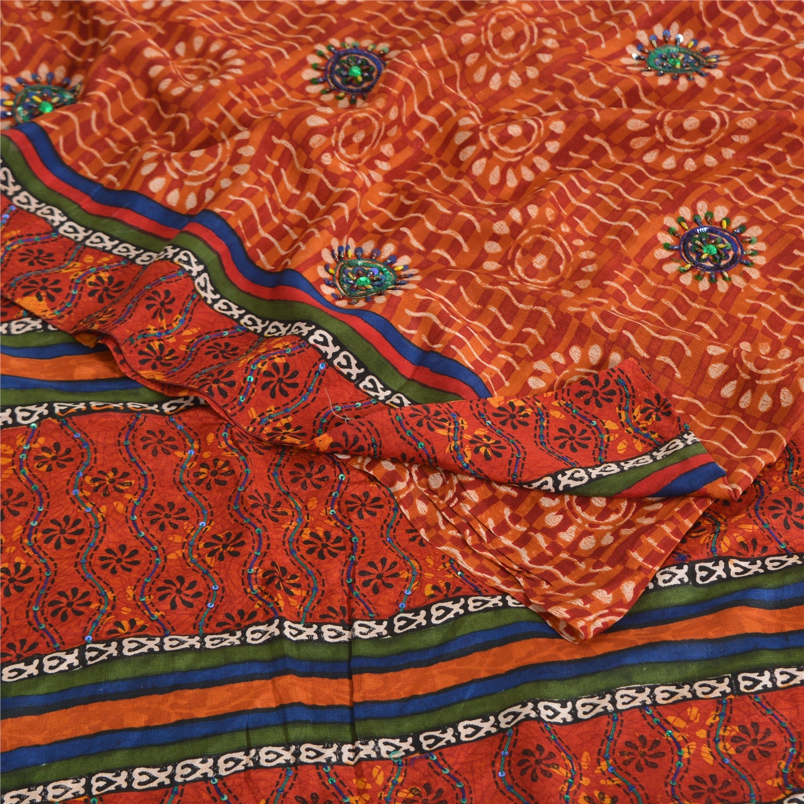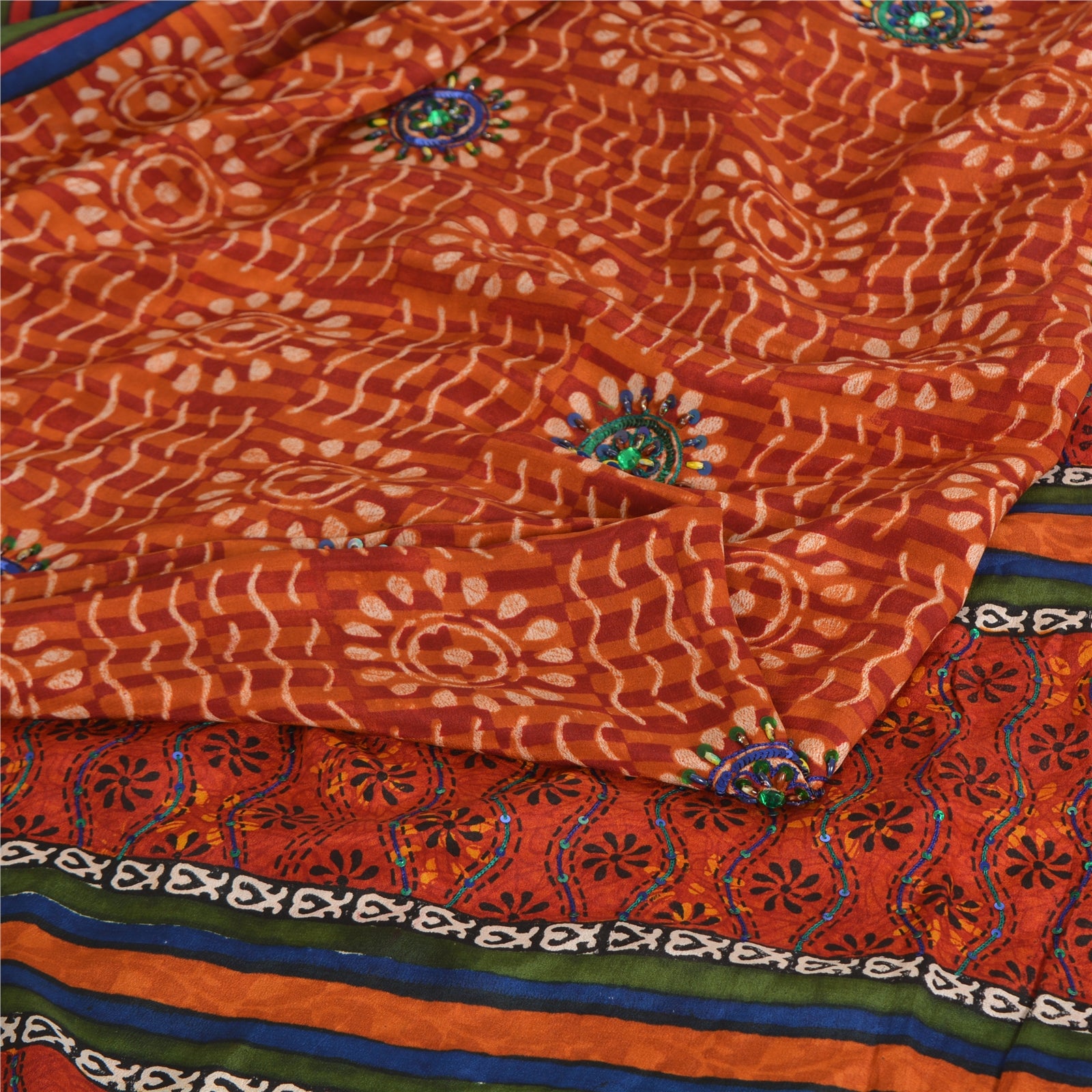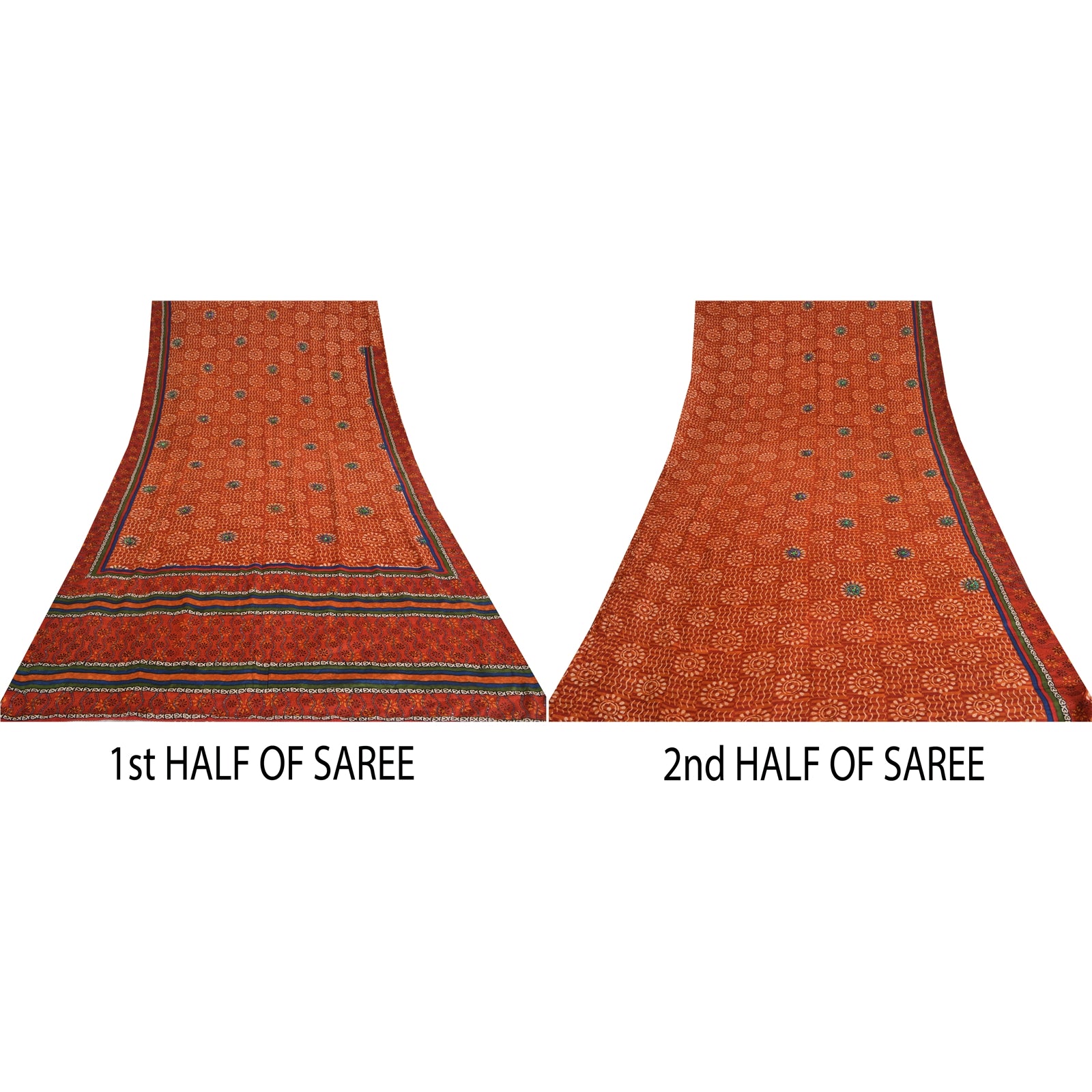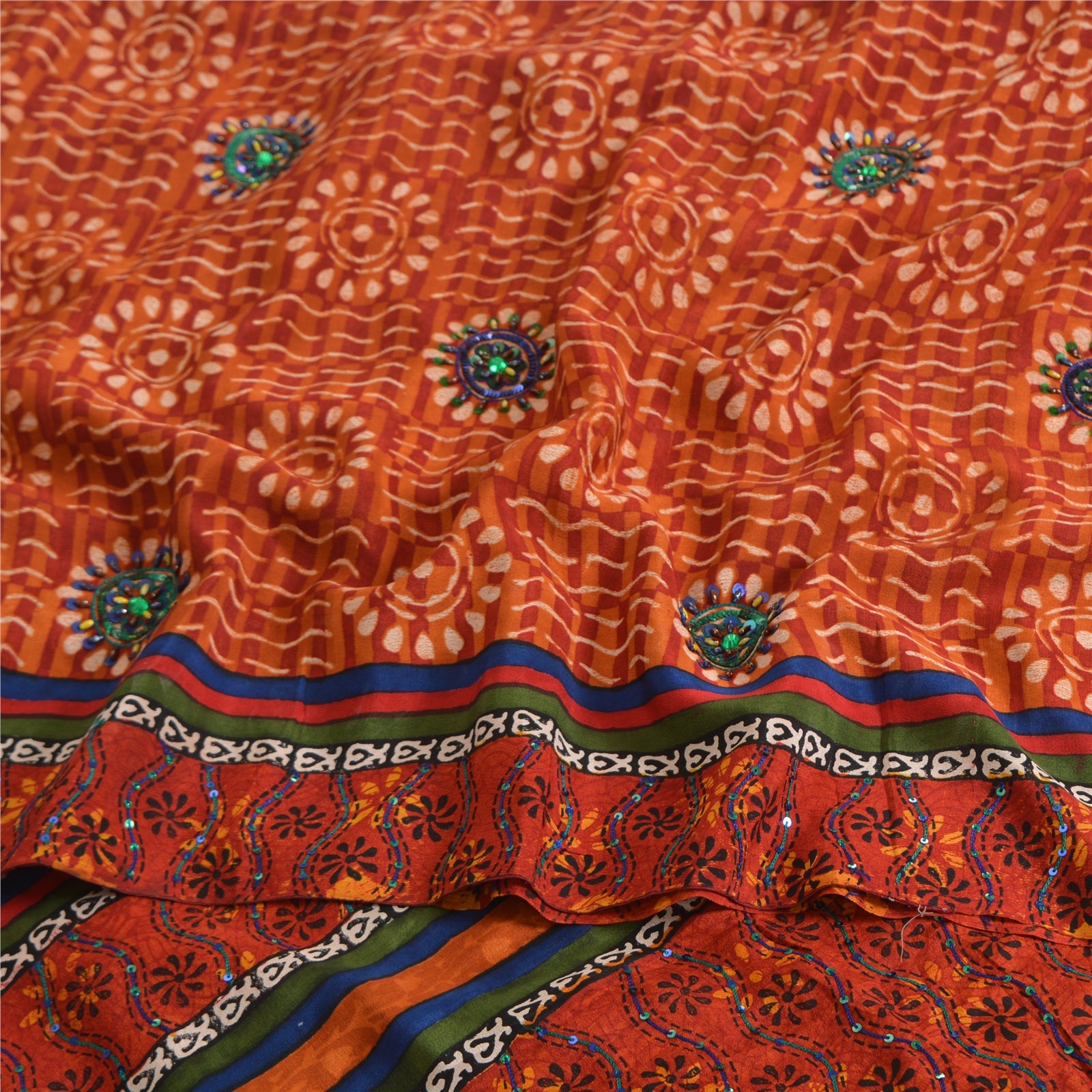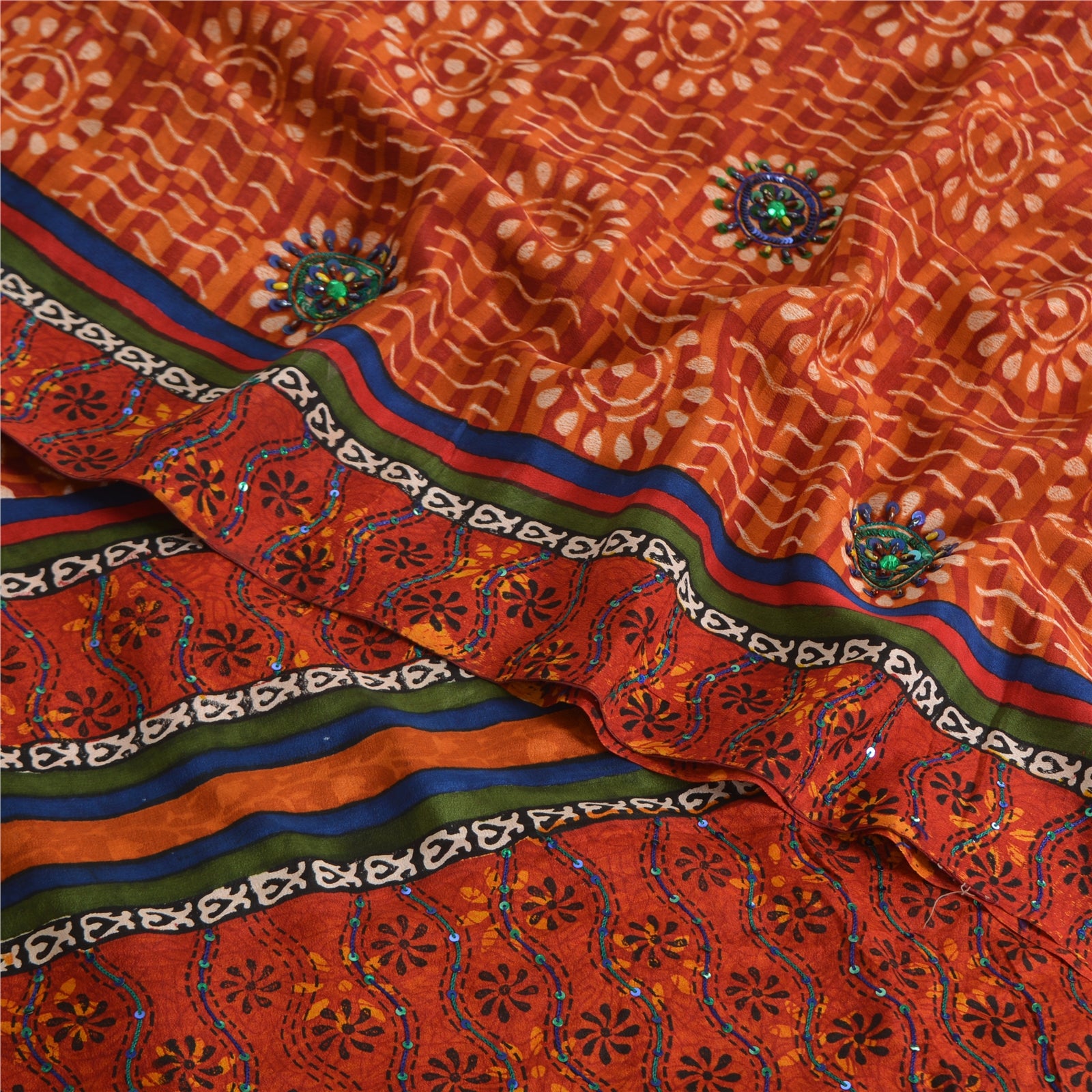 Сари из чистого крепа с бисером ручной работы, оранжевое сари с принтом, 5 ярдов, устойчивая ткань