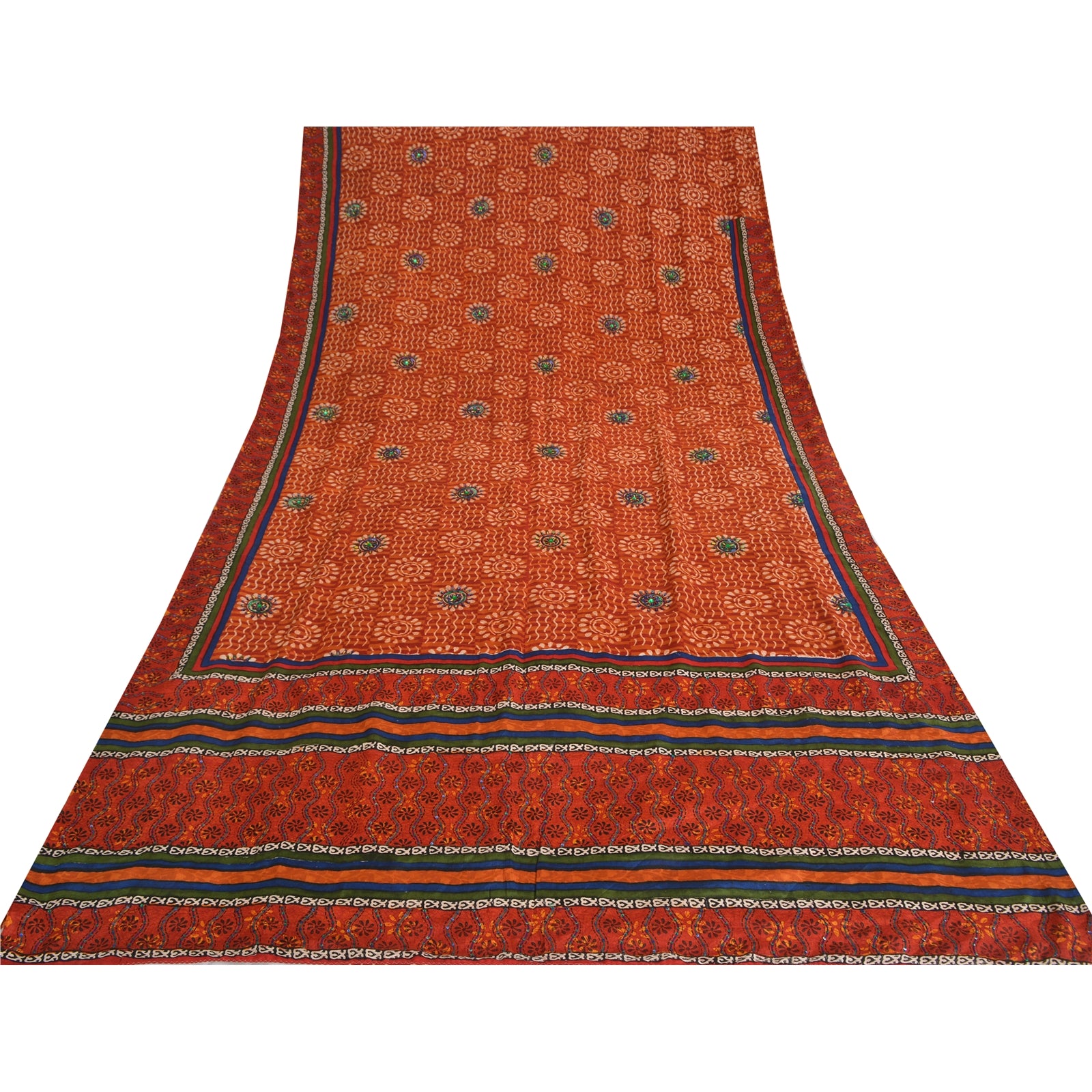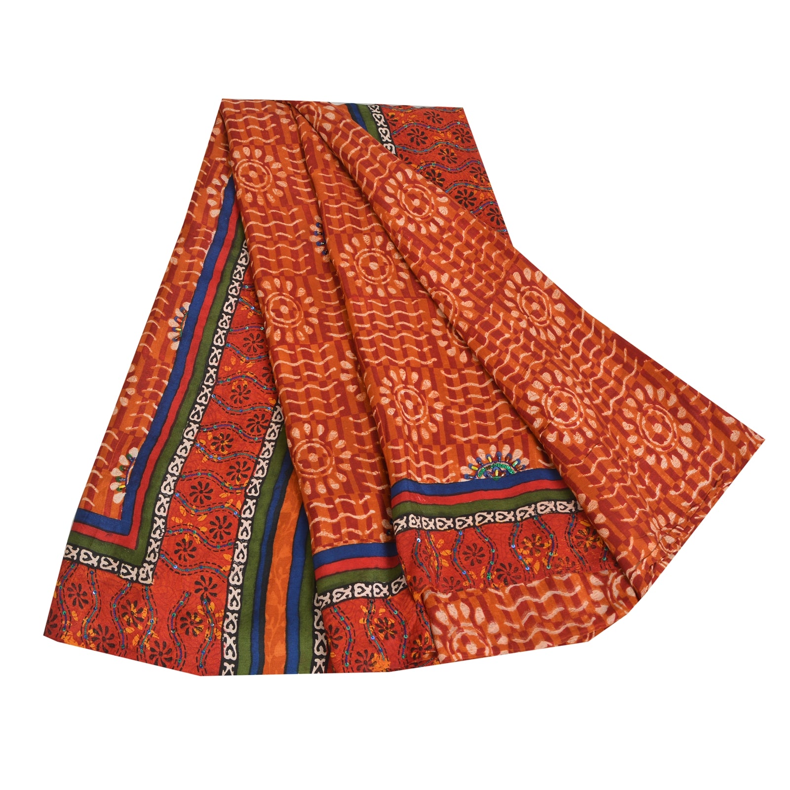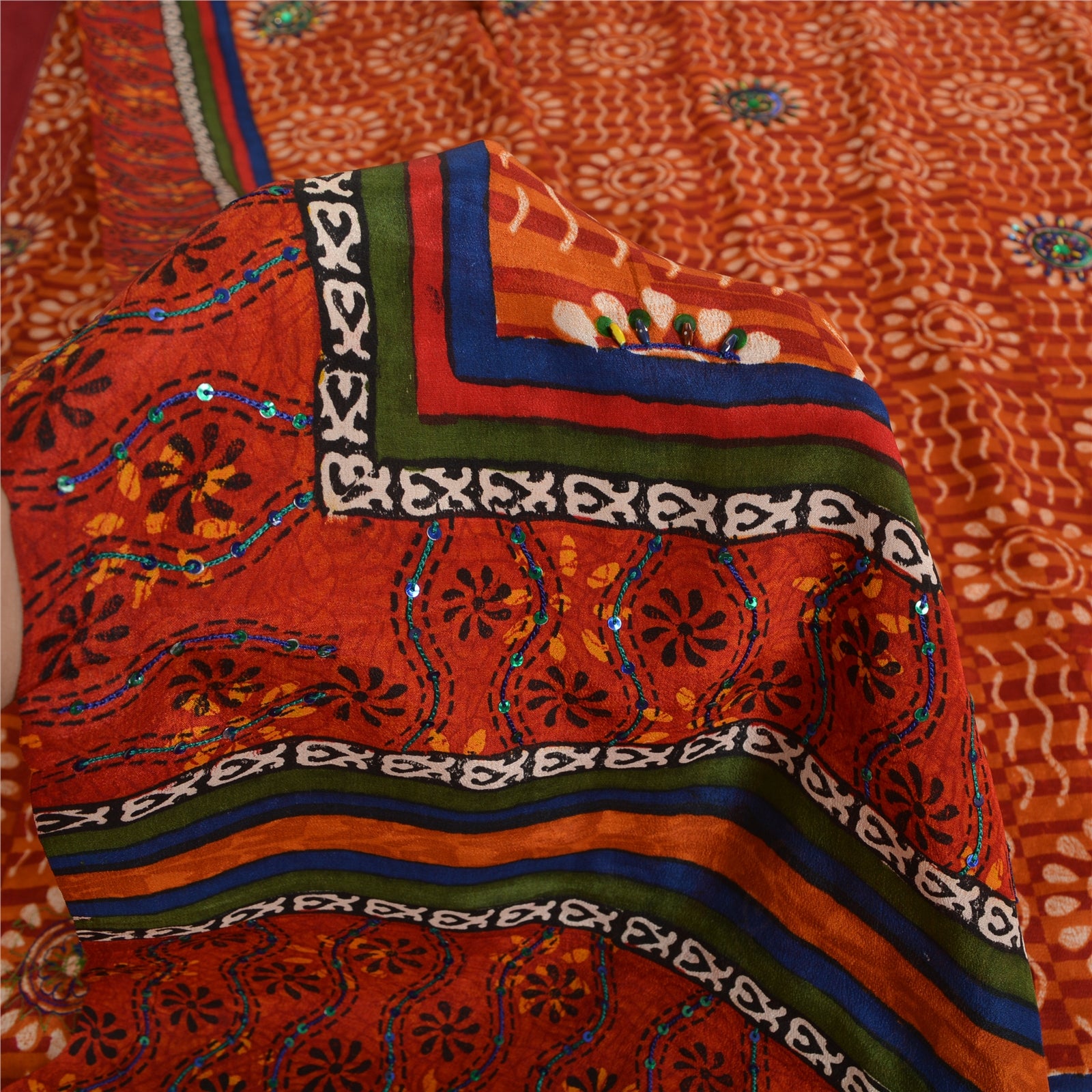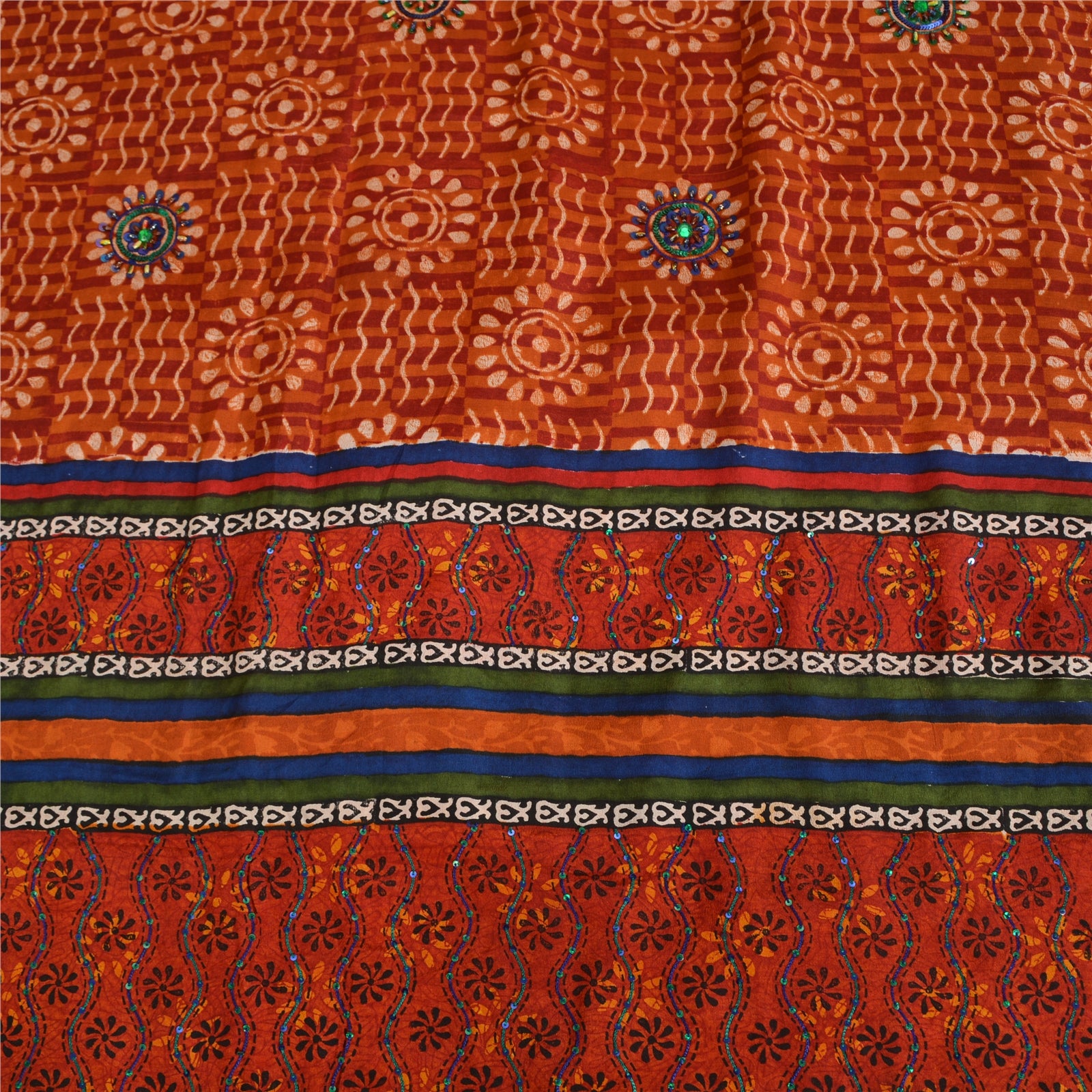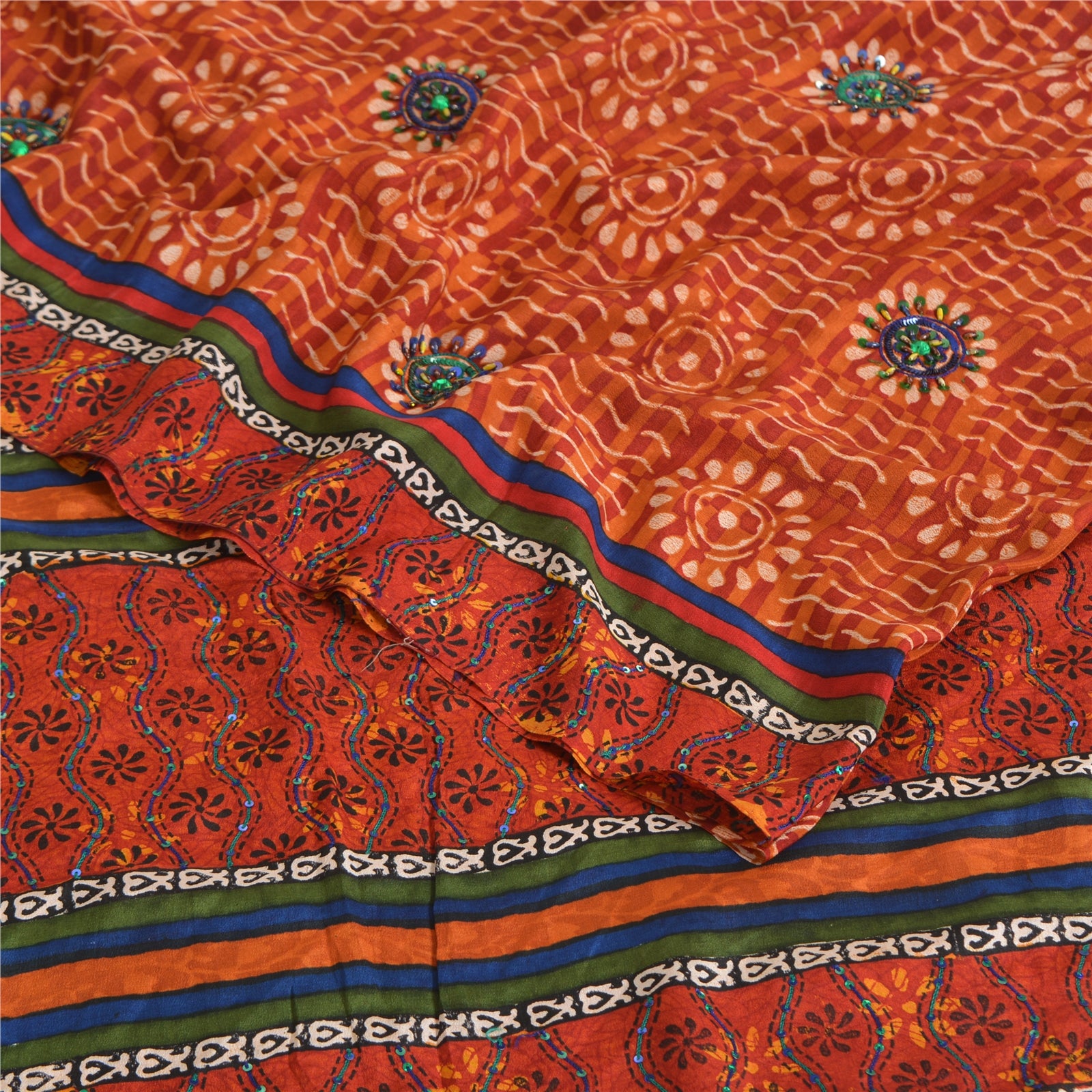 Сари из чистого крепа с бисером ручной работы, оранжевое сари с принтом, 5 ярдов, устойчивая ткань