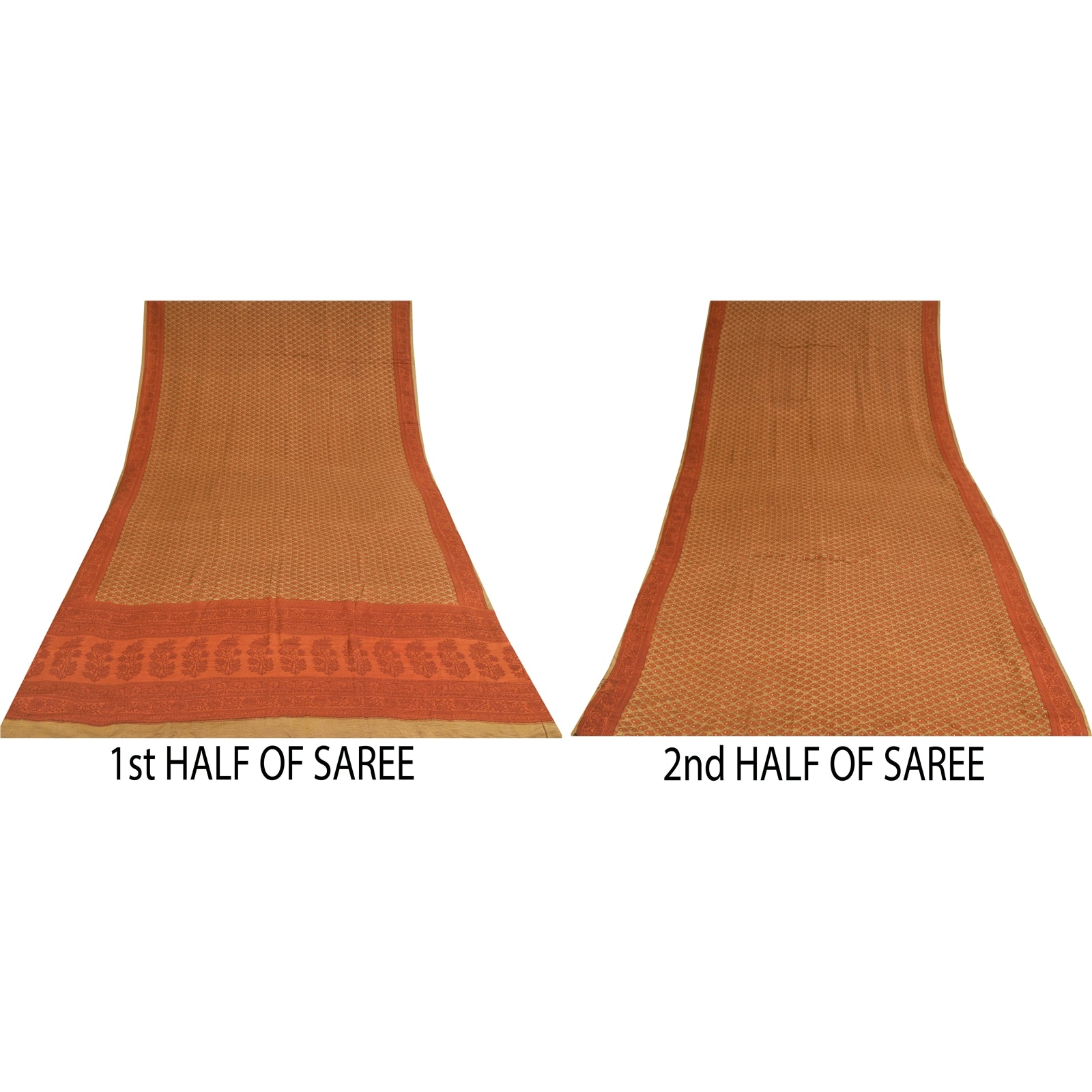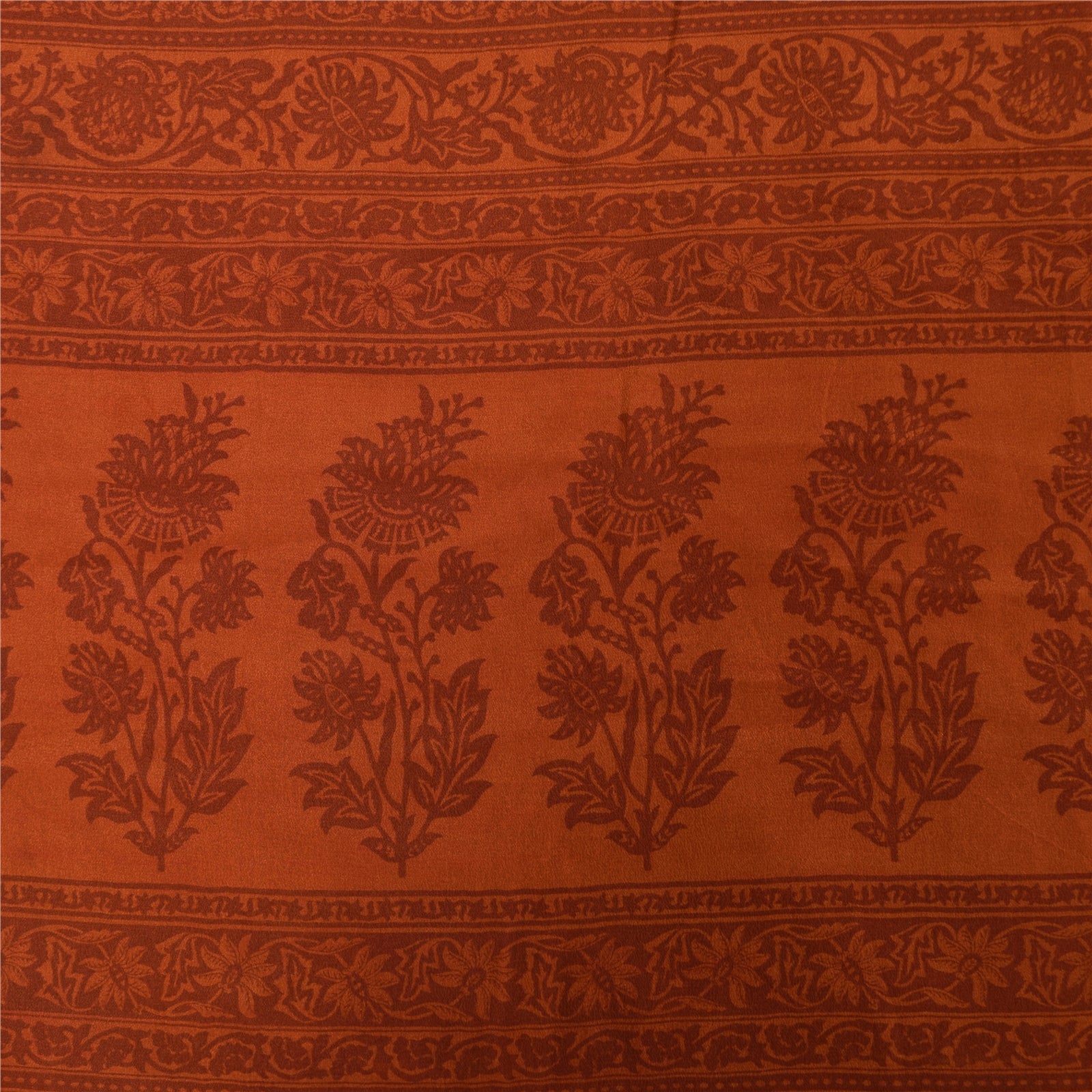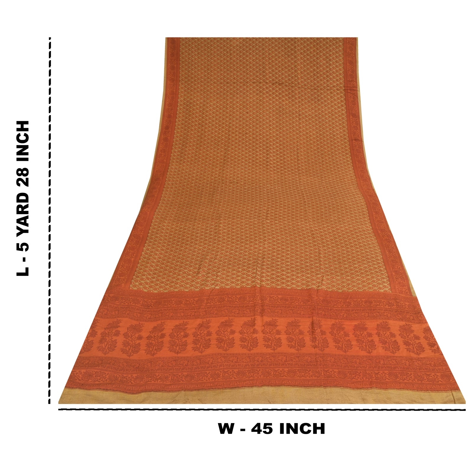 Сари Sanskriti Vintage, чистый креп, оранжевый и зеленый принт, сари, 5+ ярдов, ткань для рукоделия, устойчивая к истиранию