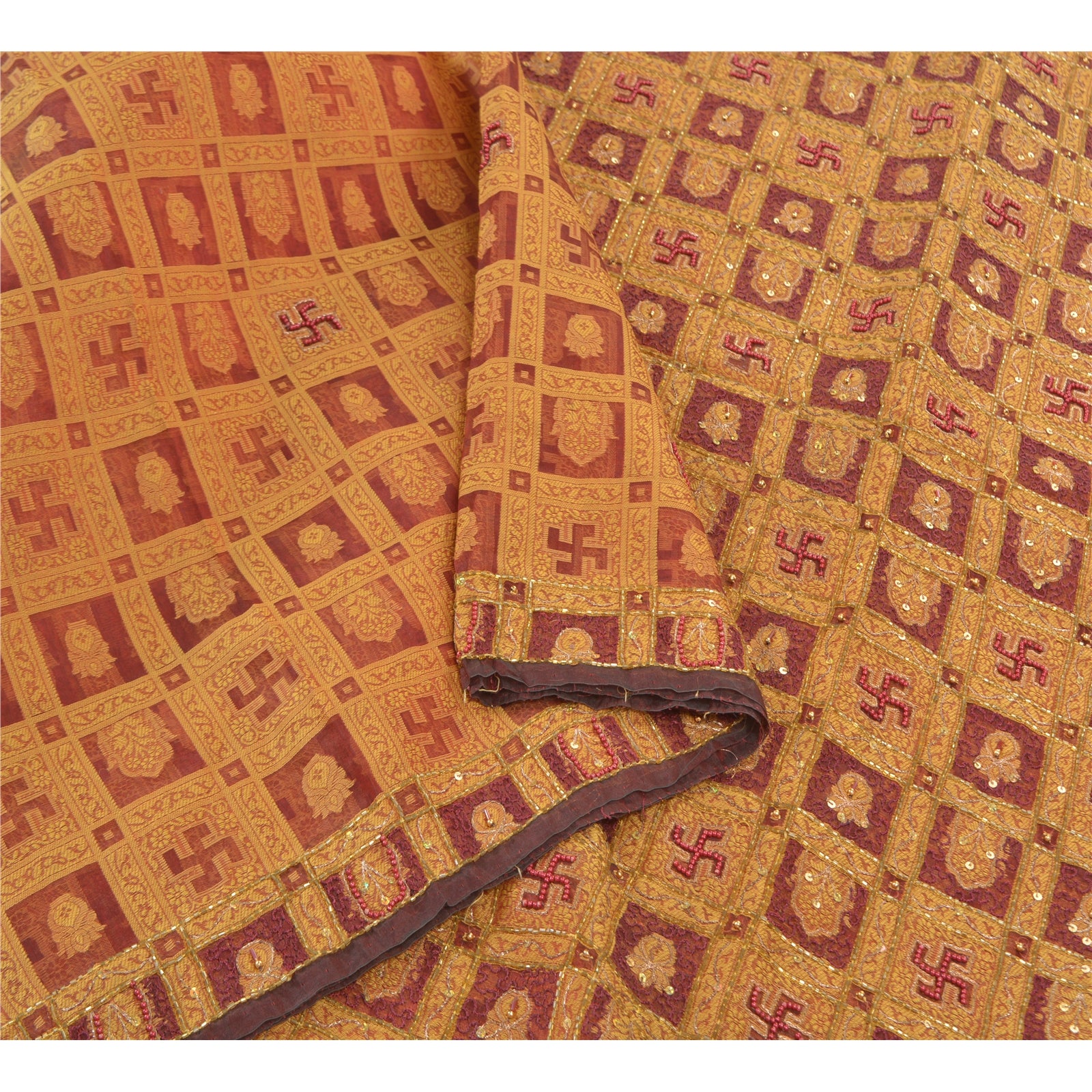 Санскритские винтажные сари из чистой органзы из шелка, расшитого вручную бисером, премиальное сари из экологически чистой ткани