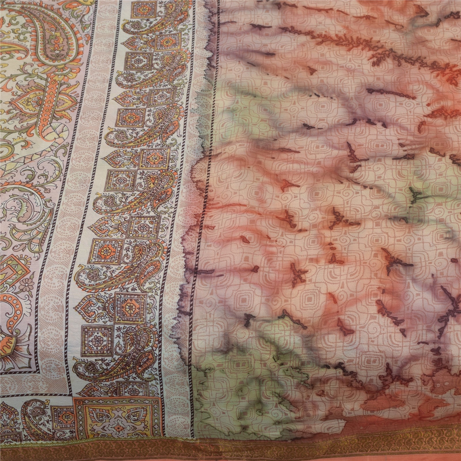 THE ITEM COLOR OR SHADE MAY BE DARKER OR LIGHTER THAN THE PICTURE.' • Beautiful multi colored printed pure silk saree . • Pallu & Border has printed floral design & golden zari woven work. • Abstract design in center part of sari . This unique vintage saree can be used for various crafting ideas even if you don't want to use it as a sari. Design a dress, use it as a as window dressing, upholstery, sarongs, throw, dress making and table linen much more. Let your creative juices flow and use this decorated fabric in multiple fashion. International buyers please note: Import duties, taxes, and charges are not included in the item price or postage cost. These charges are the buyer's responsibility. Please check with your country's customs office to determine what these additional costs will be prior to bidding or buying.Buyer will pay custom duty/tax. It is calculated and charged differently by every country. As a seller I do not have any control over it. VAT or sales tax is calculated by the platform at the time of checkout. Customs charge is payable at the time of delivery.