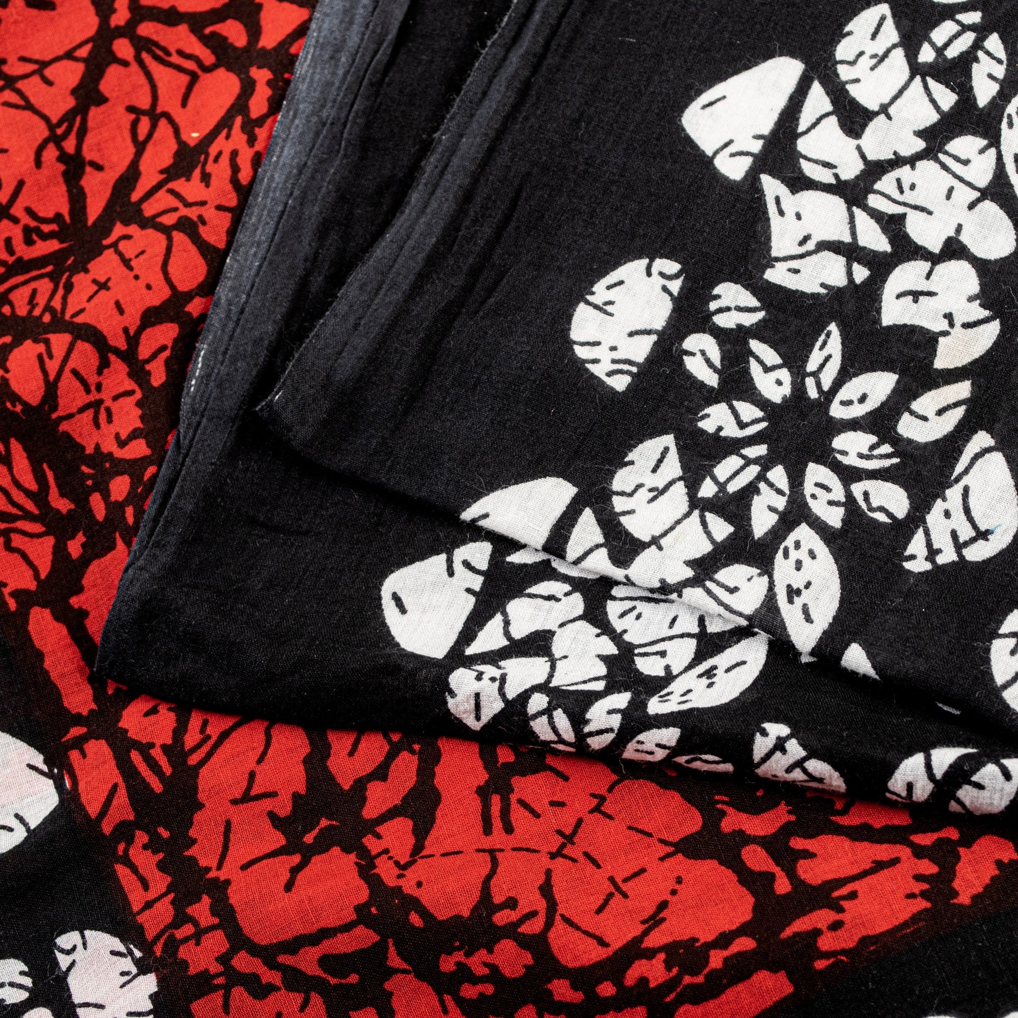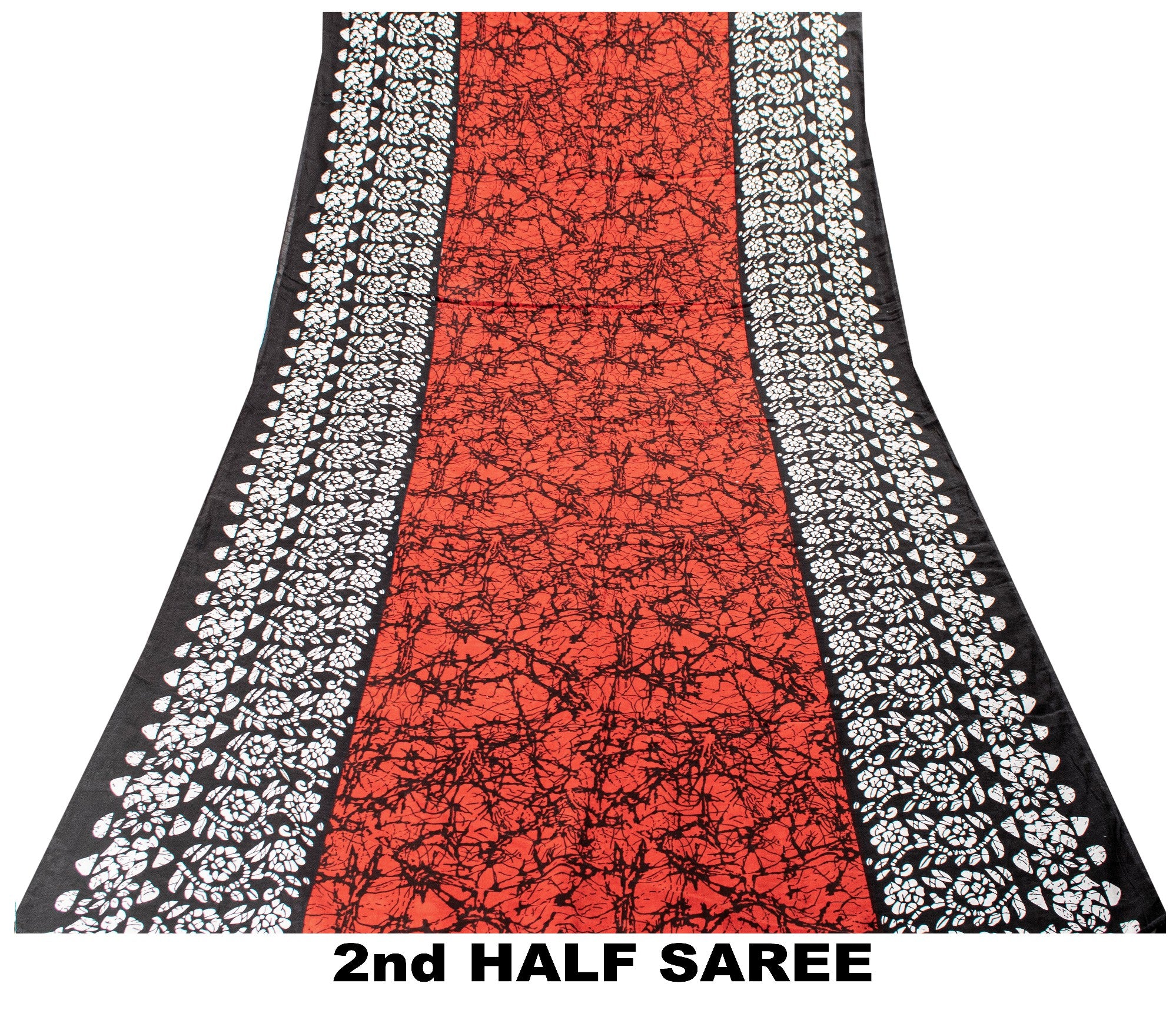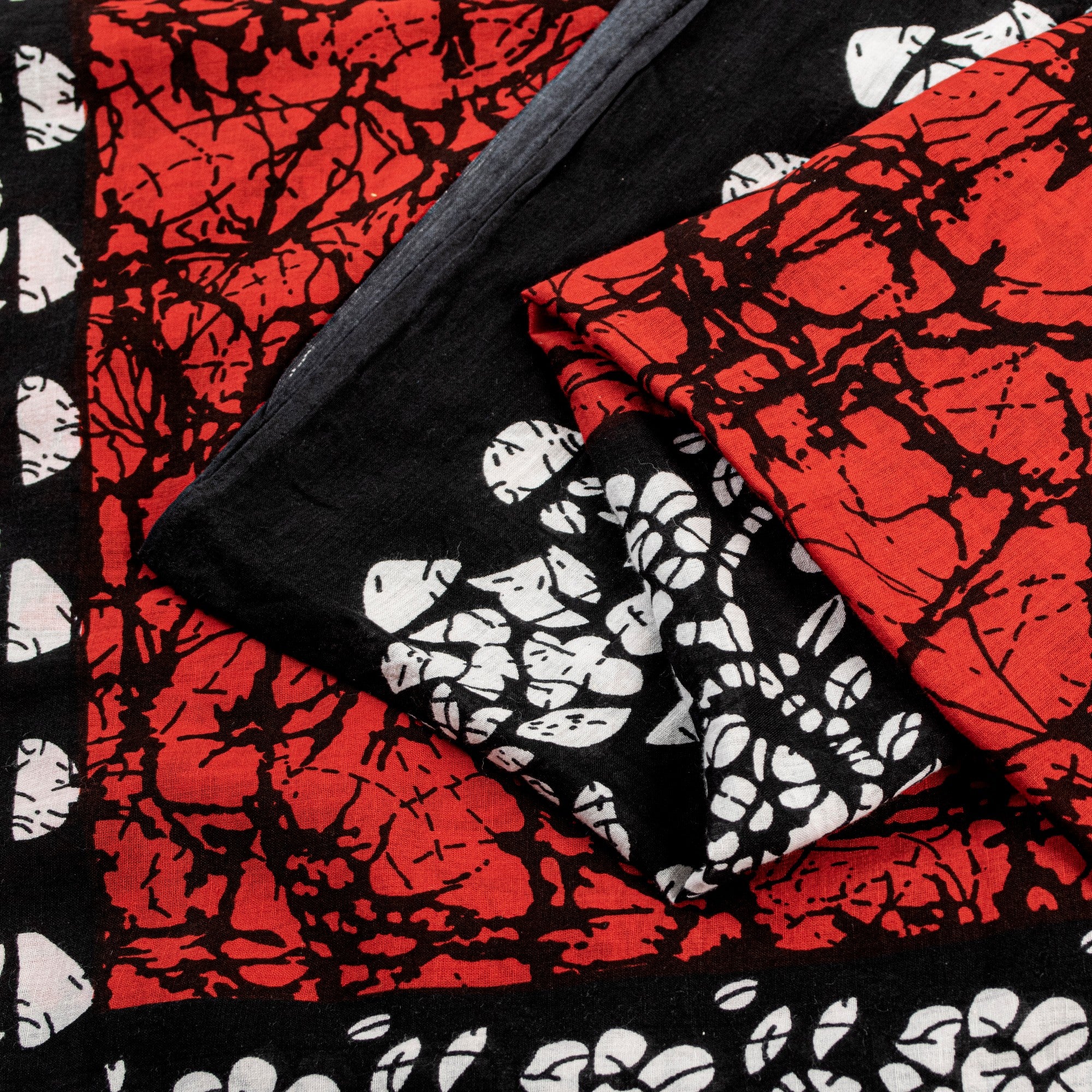 Beautiful red & black colored pure cotton batik printed saree with floral design on pallu, border, & abstract design in center part. Versatile Uses-Crafting, Repurpose, Breathable fabric, Creative Sewing Project, Dressmaking, Kaftans, Use It As A Sari, Window Dressing, Upcycling, Sarongs, Throw,Table Linen,Decorative Fabric, Sustainable Indian Fabric. THE ITEM COLOR OR SHADE MAY BE DARKER OR LIGHTER THAN THE PICTURE.' International buyers please note: Import duties, taxes, and charges are not included in the item price or postage cost. Buyer will pay custom duty/tax,VAT, and any applicable charges at the time of delivery. PCS-7473