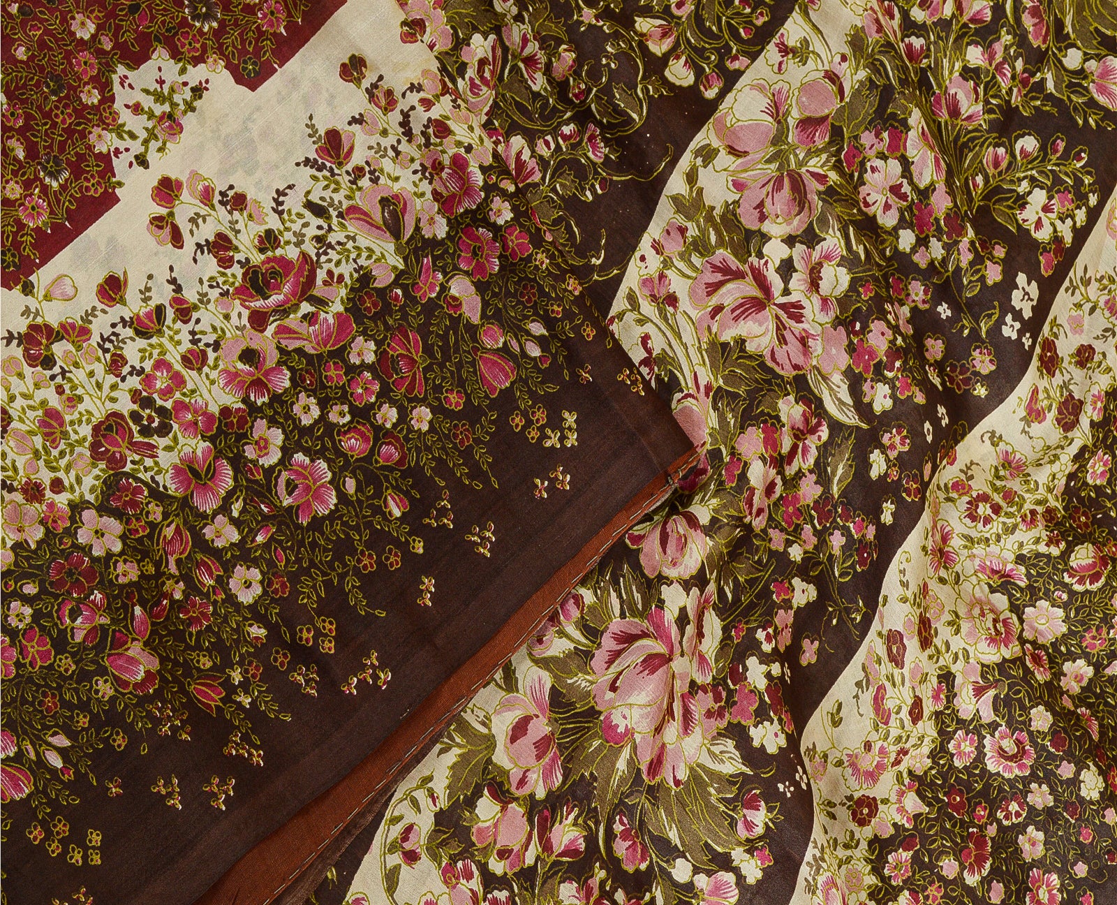 Sanskriti Vintage Sarees Red & Brown Pure Silk Floral Printed 6+YDSari Fabric