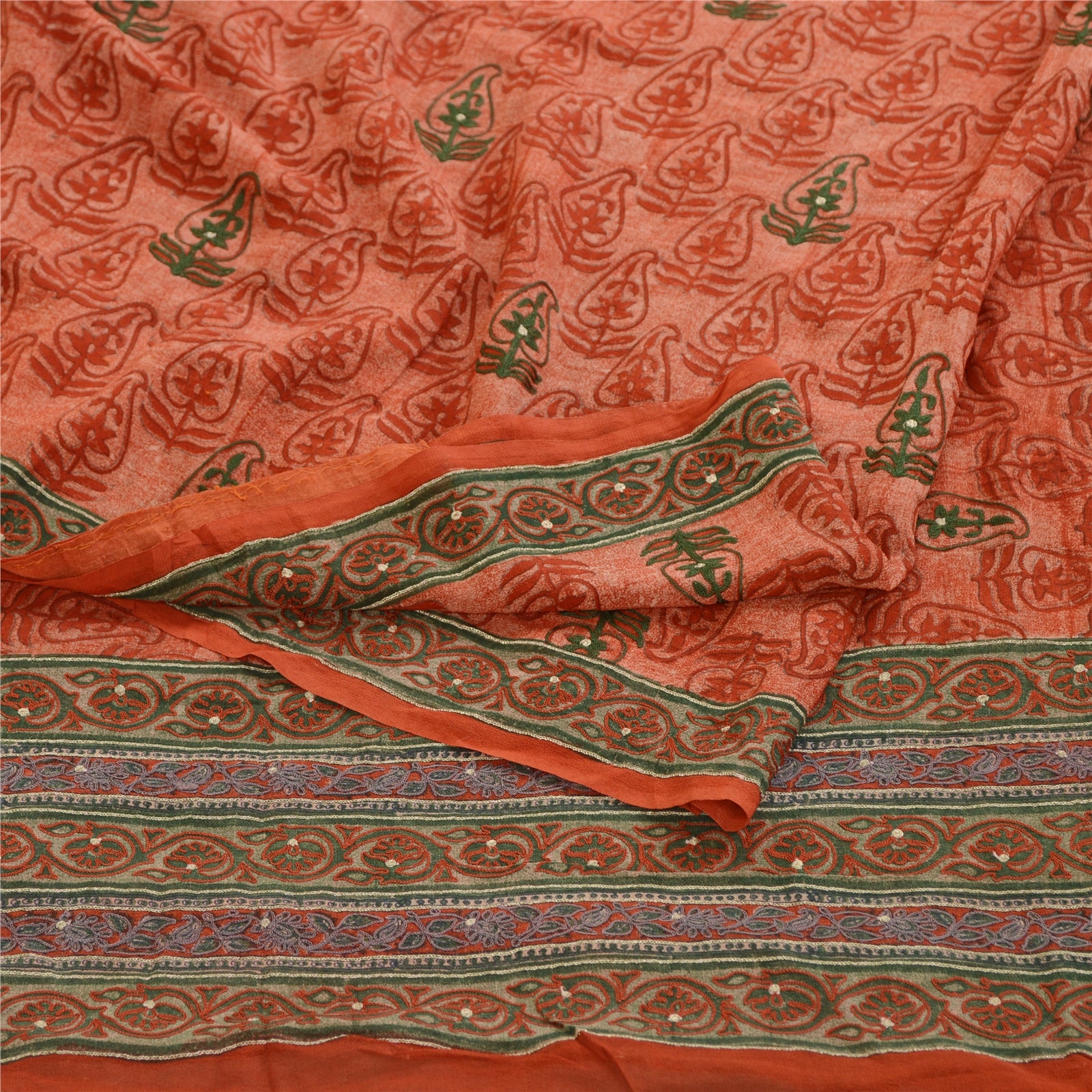 Санскритские винтажные сари, красные вышитые, чистый шелк, геогет, напечатанное сари, устойчивая ткань