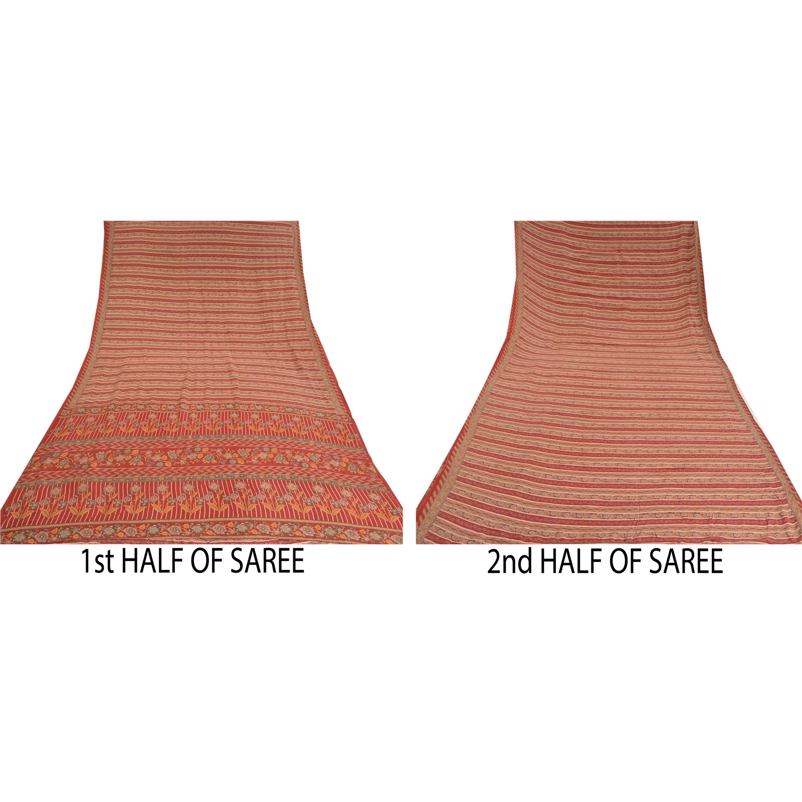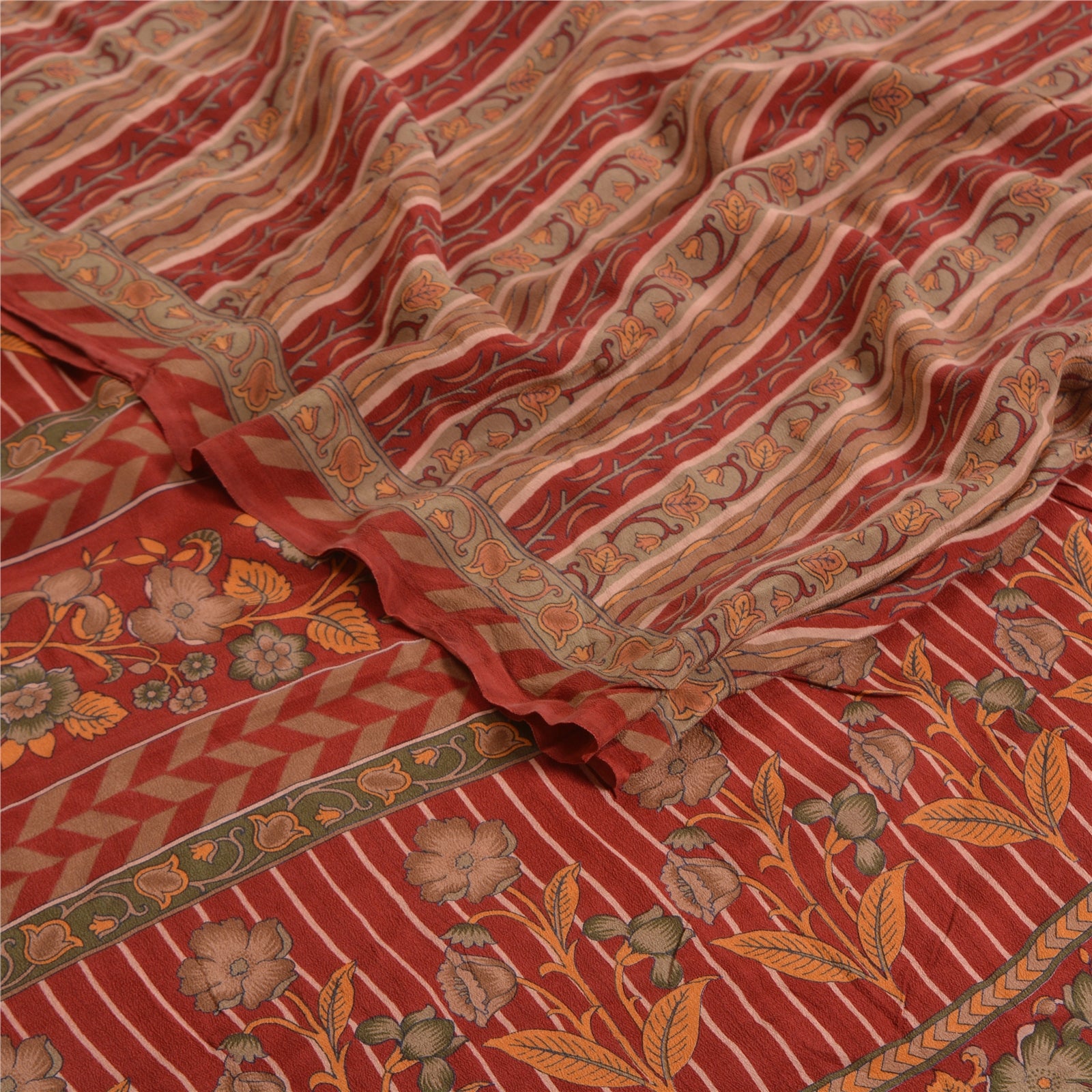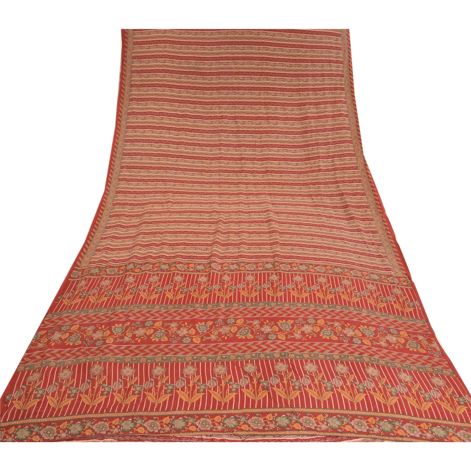 Санскритские винтажные сари из красного индийского принта, чистого крепированного шелка, сари, ремесло, устойчивая ткань