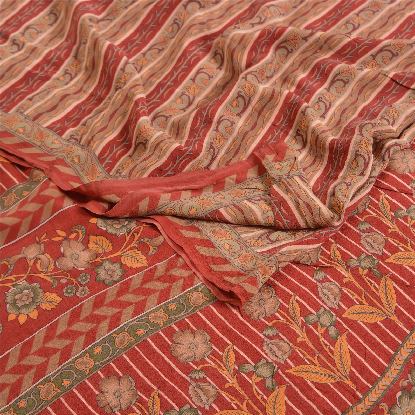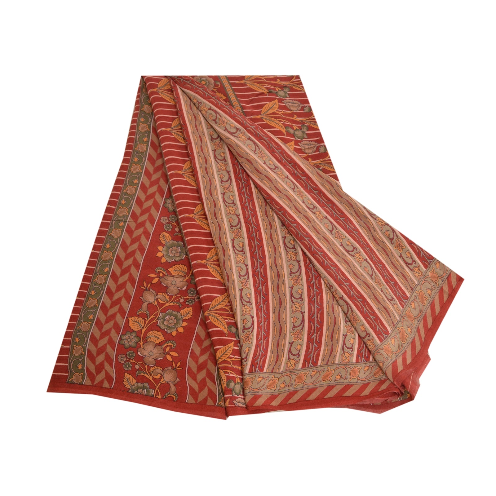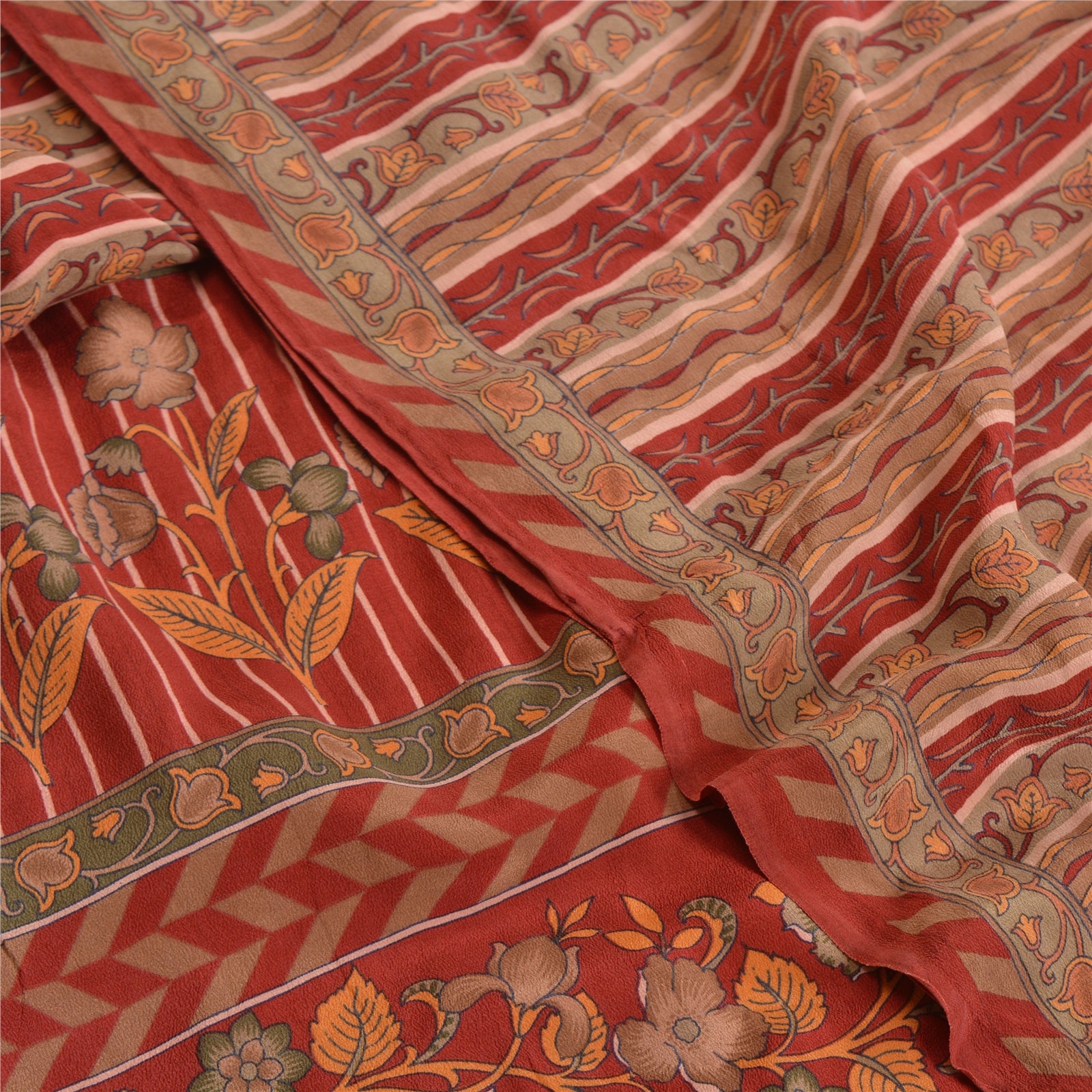 Санскритские винтажные сари из красного индийского принта, чистого крепированного шелка, сари, ремесло, устойчивая ткань
