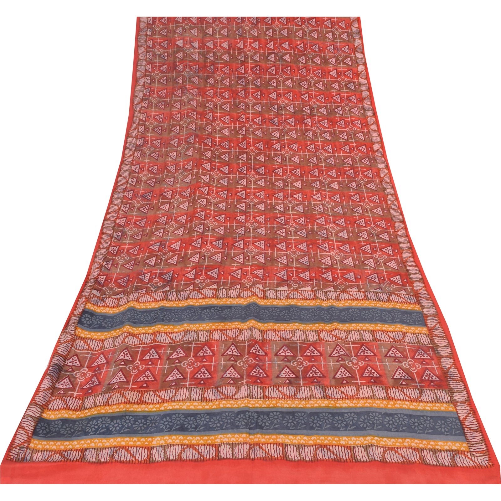 Санскритские винтажные сари из красного индийского чистого крепированного шелка с принтом 5 ярдов ремесленная устойчивая ткань