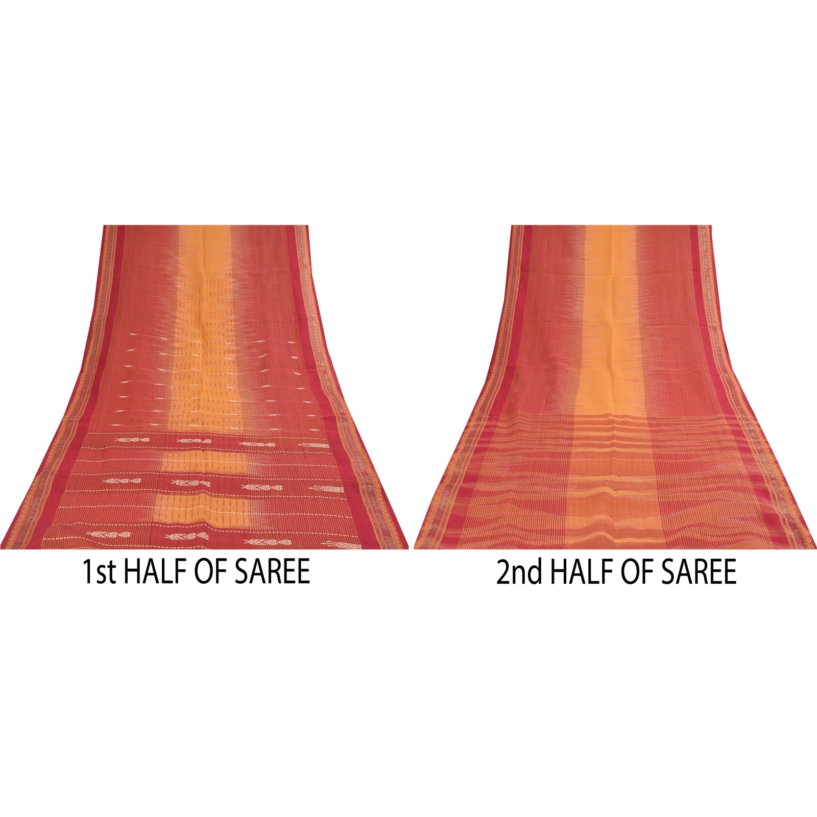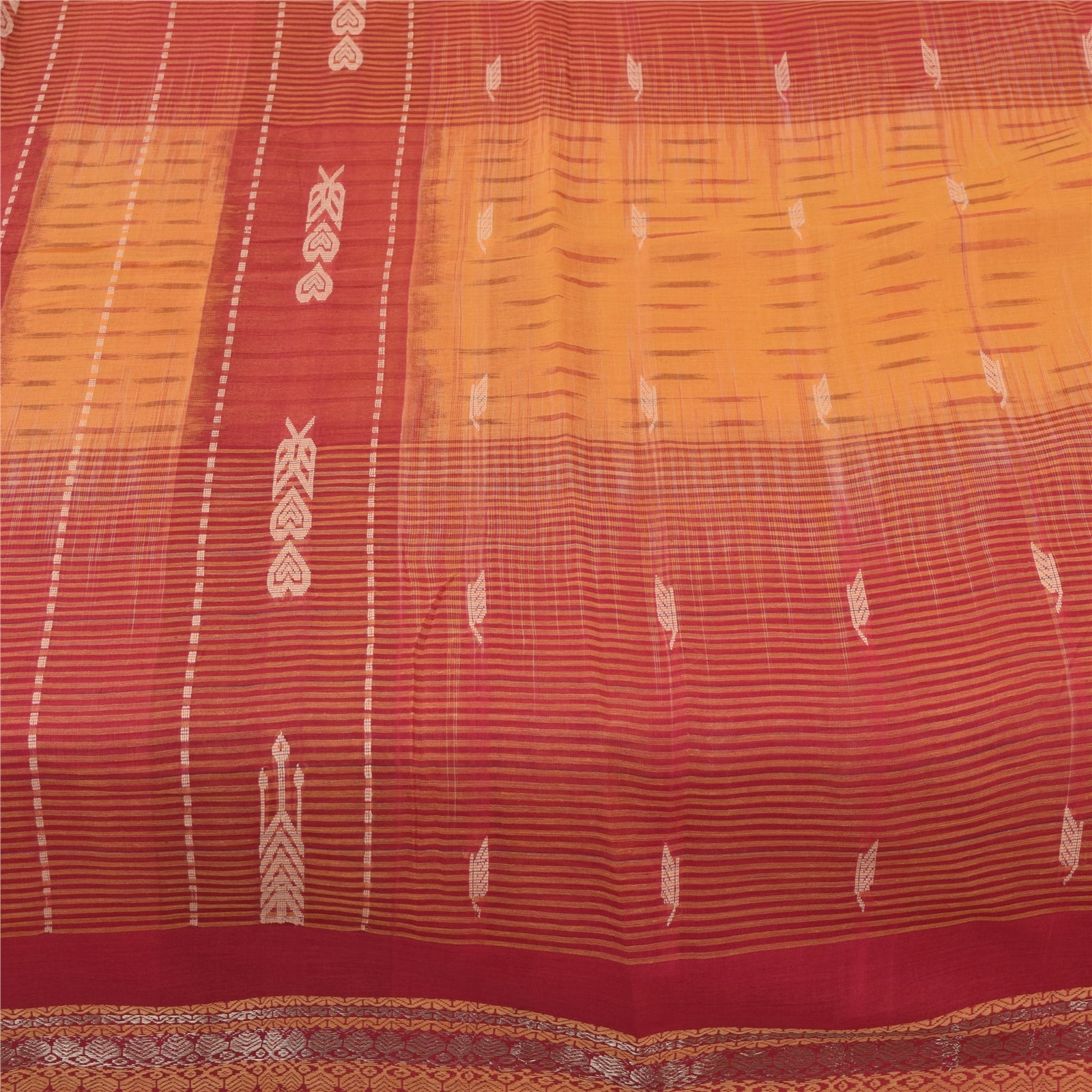 Sanskriti Vintage Sarees Red & Yellow Beghampuri Woven Pure Cotton Sari Fabric