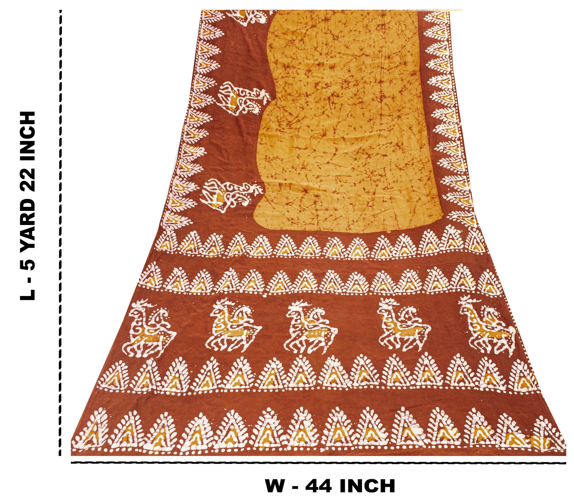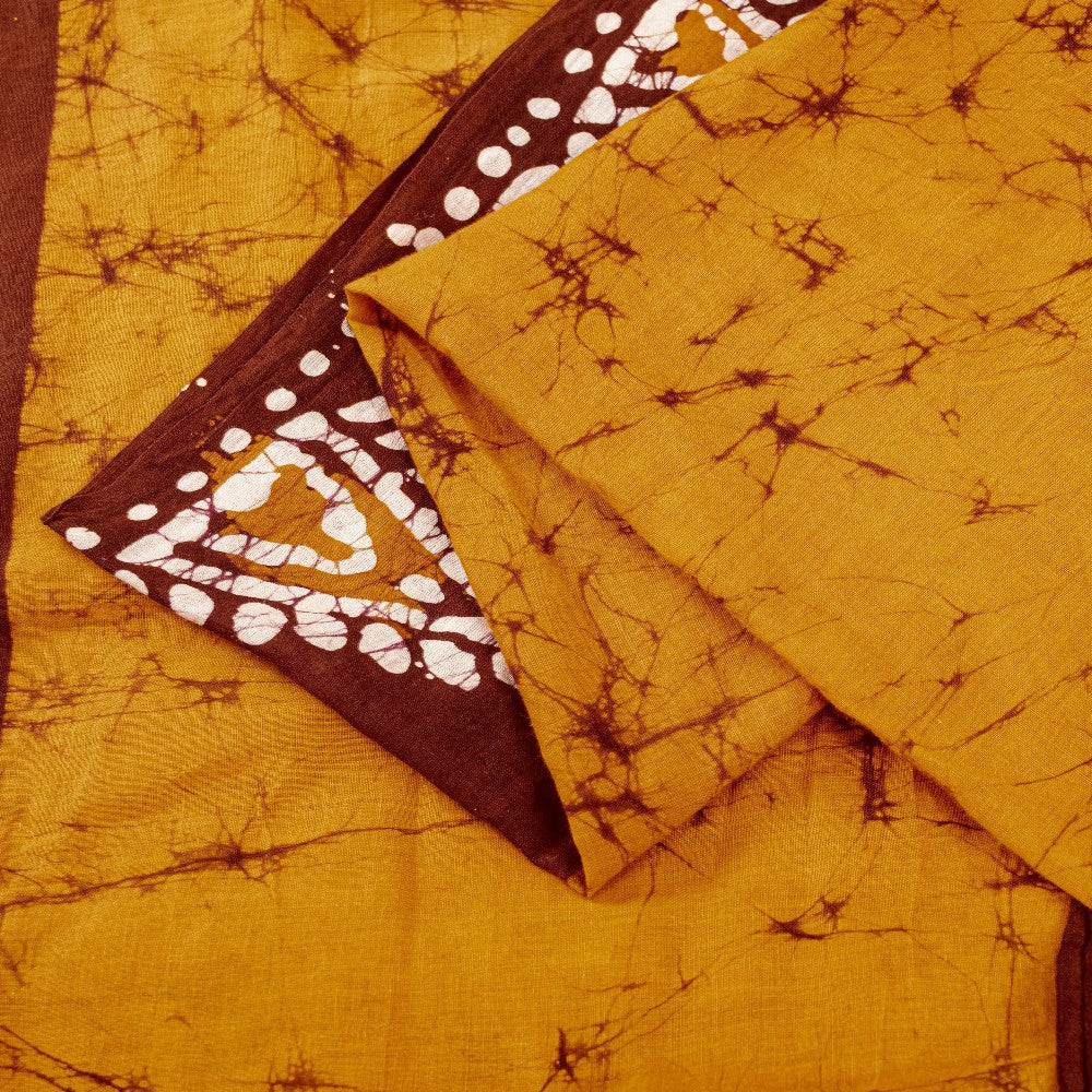 Beautiful saffron & brown colored pure cotton batik work saree with triangle, animal, paisley design on pallu, border, & abstract design in center part. Versatile Uses-Crafting, Repurpose, Breathable fabric, Creative Sewing Project, Dressmaking, Kaftans, Use It As A Sari, Window Dressing, Upcycling, Sarongs, Throw,Table Linen,Decorative Fabric, Sustainable Indian Fabric. THE ITEM COLOR OR SHADE MAY BE DARKER OR LIGHTER THAN THE PICTURE.' International buyers please note: Import duties, taxes, and charges are not included in the item price or postage cost. Buyer will pay custom duty/tax,VAT, and any applicable charges at the time of delivery. PCS-7482