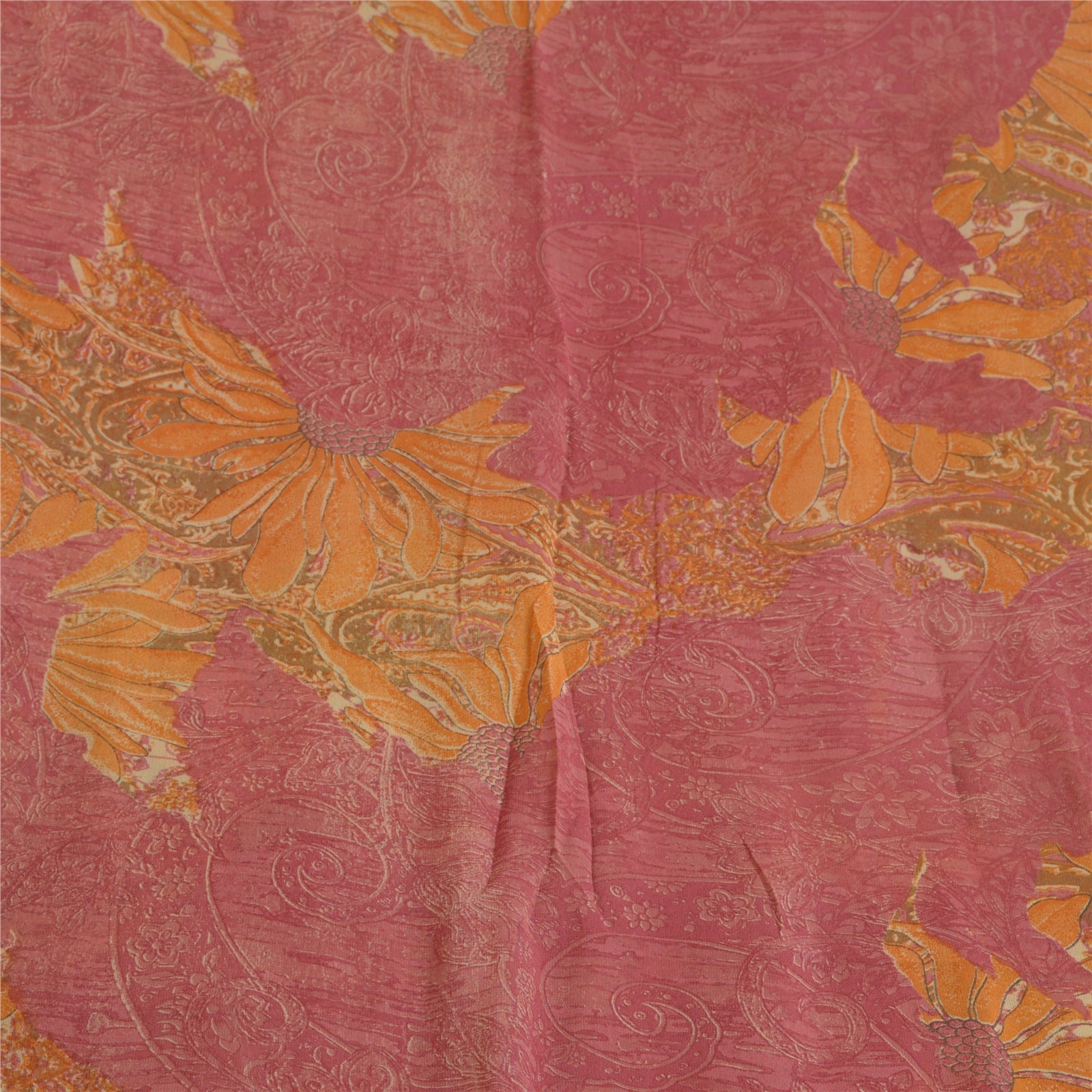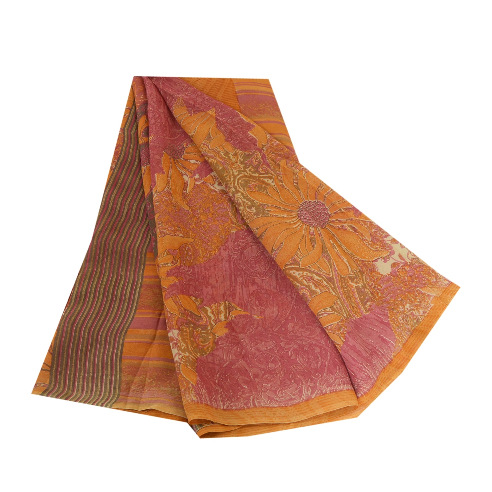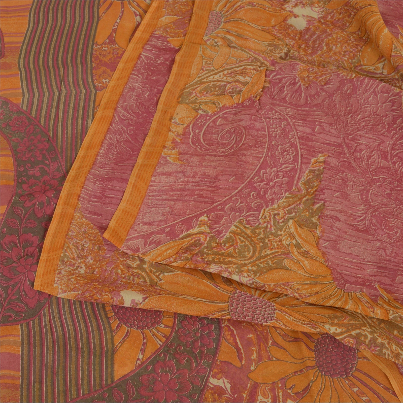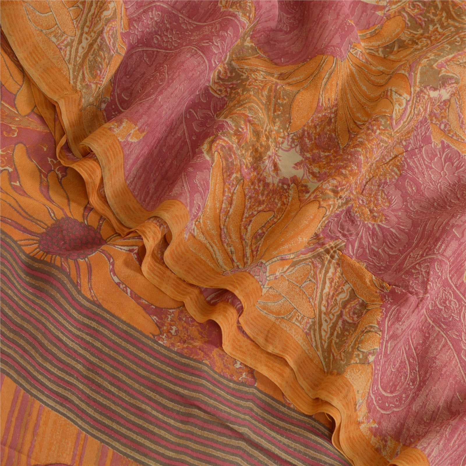 Сари Санскрити Винтаж Шафран/Розовый Чистый Жоржет Шелк Печатный Сари Экологичная Ткань