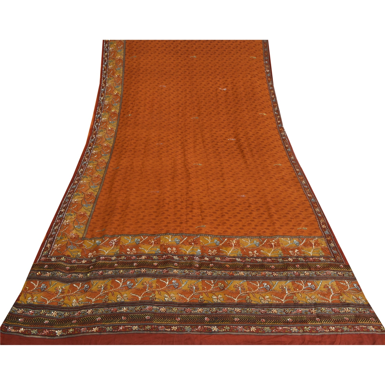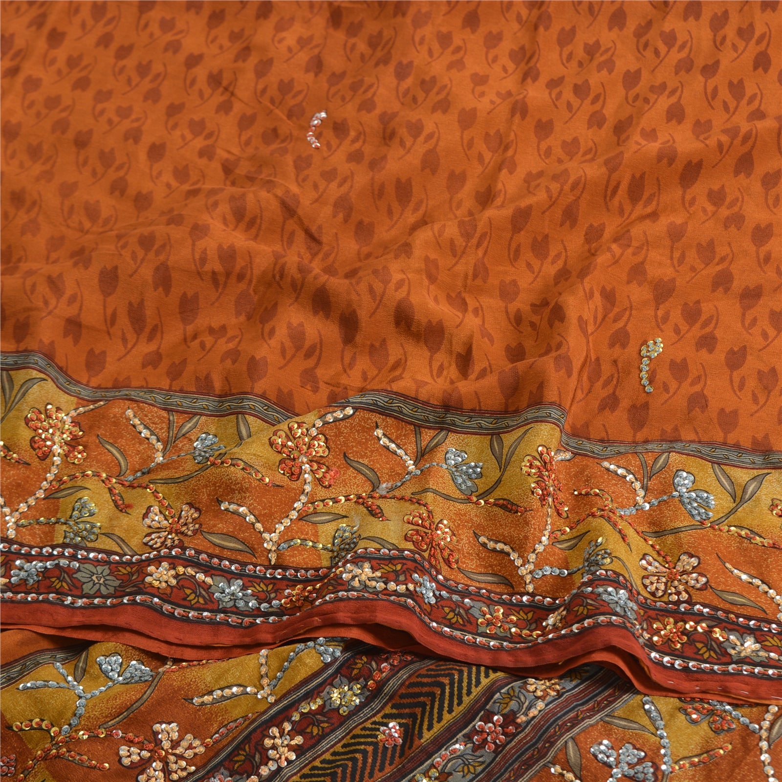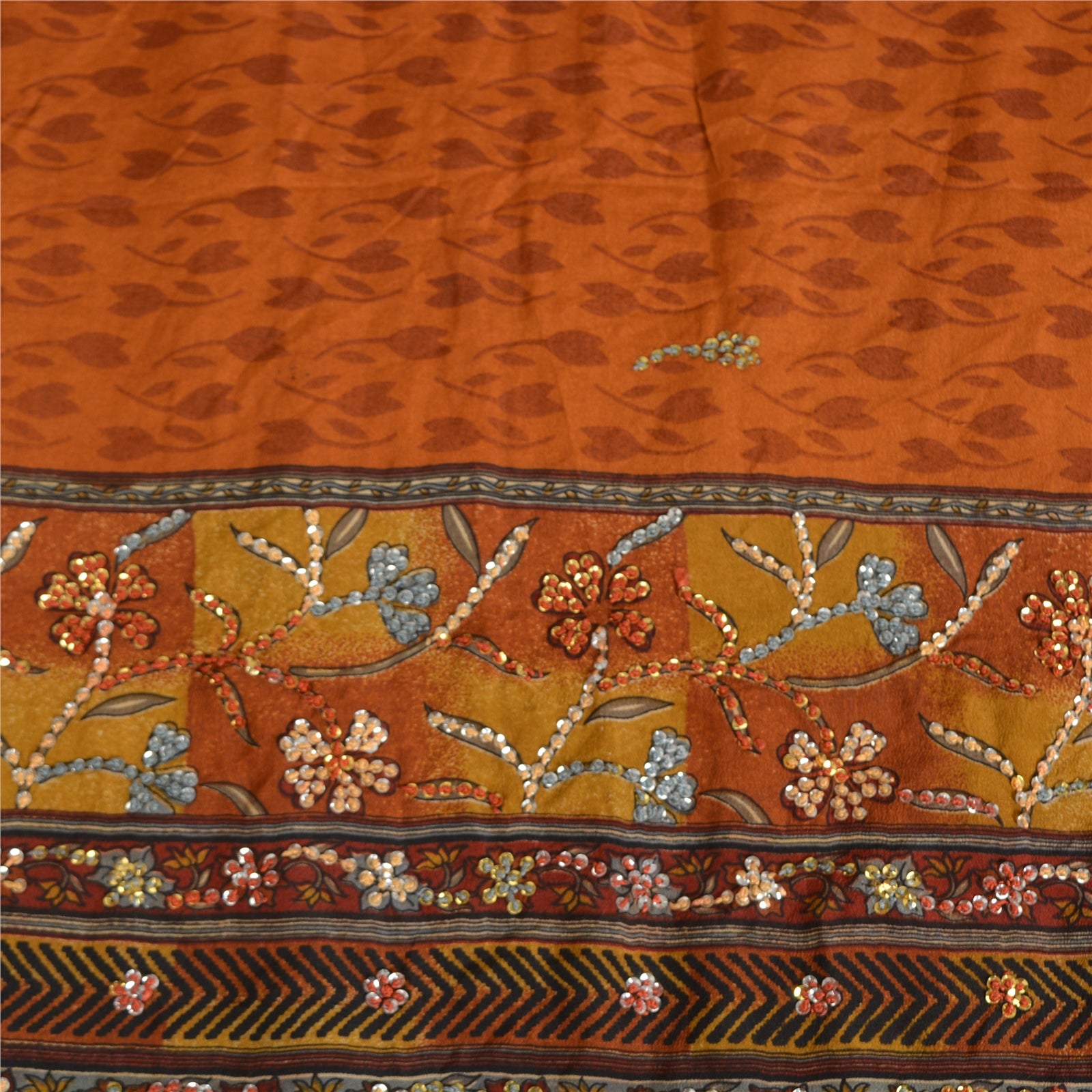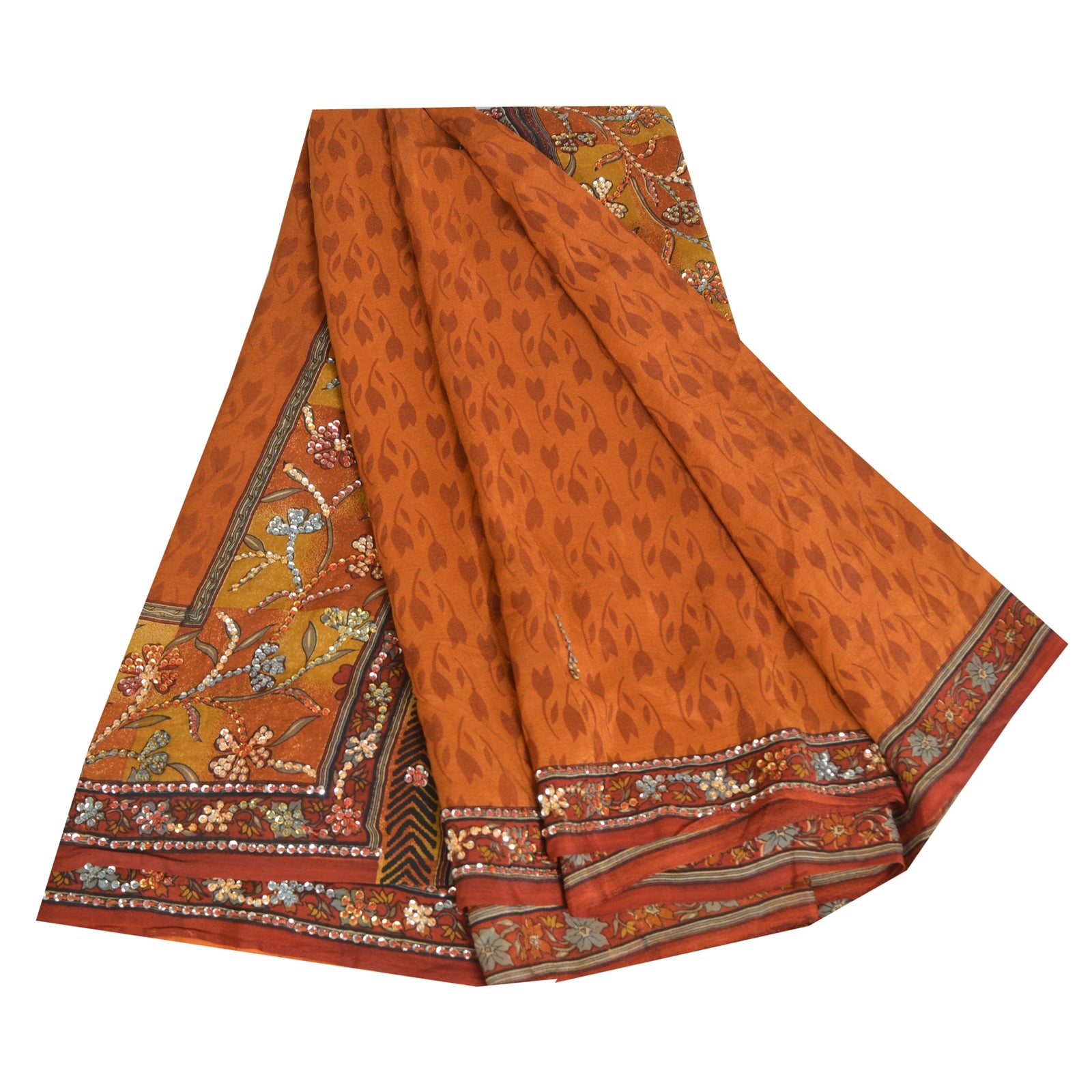 Санскритские винтажные сари шафрановый чистый креп с ручной вышивкой напечатанное сари устойчивая ткань