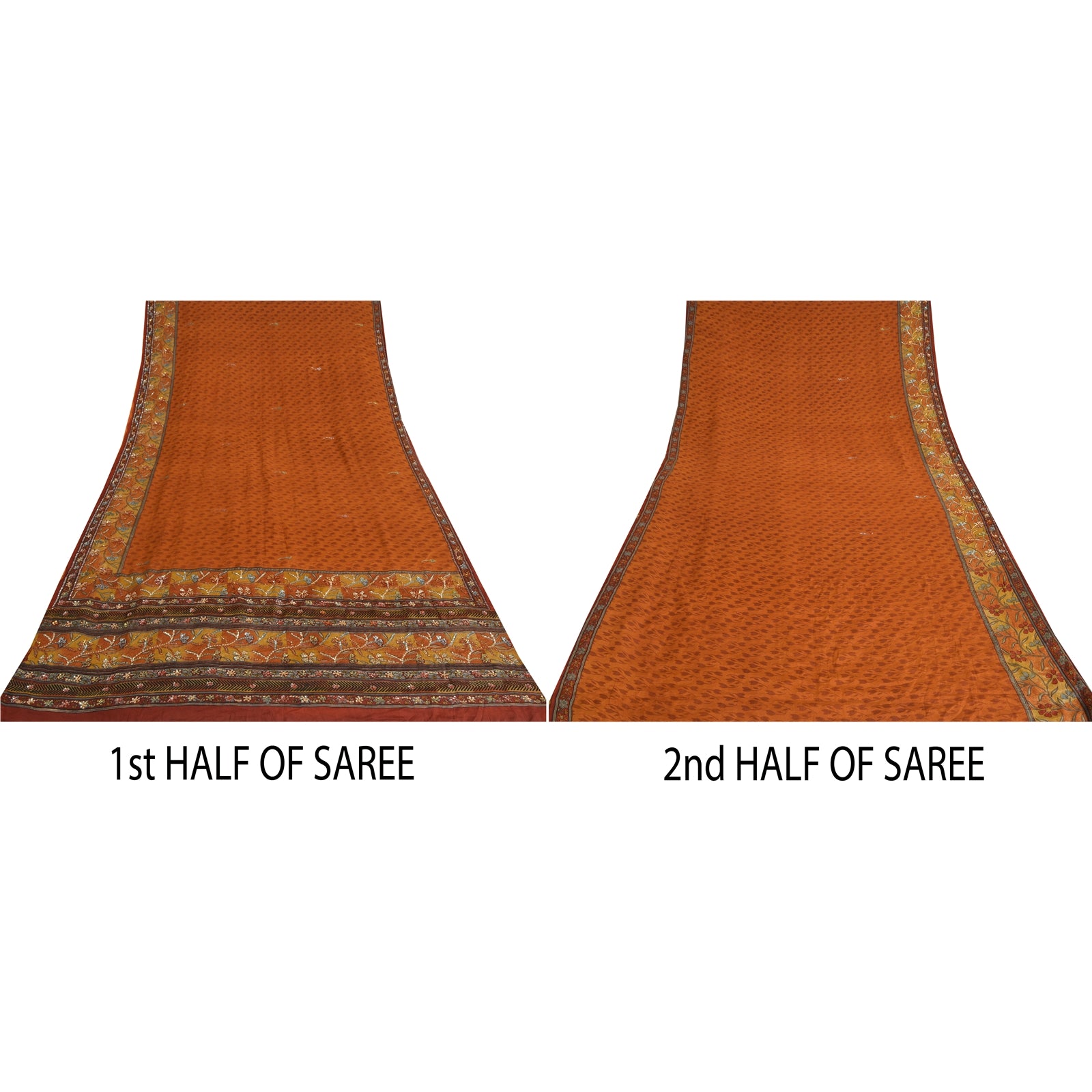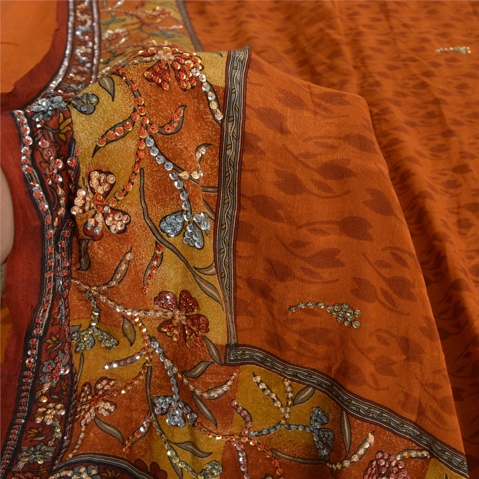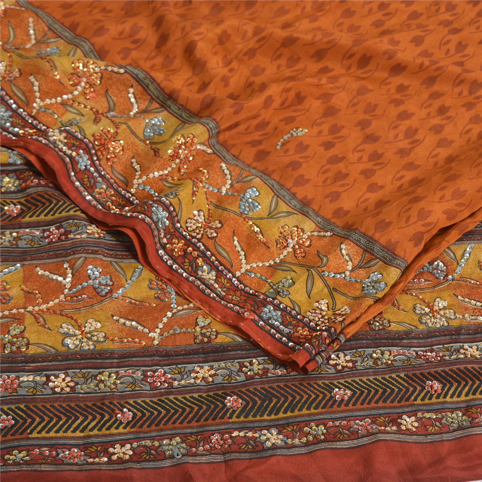 Санскритские винтажные сари шафрановый чистый креп с ручной вышивкой напечатанное сари устойчивая ткань