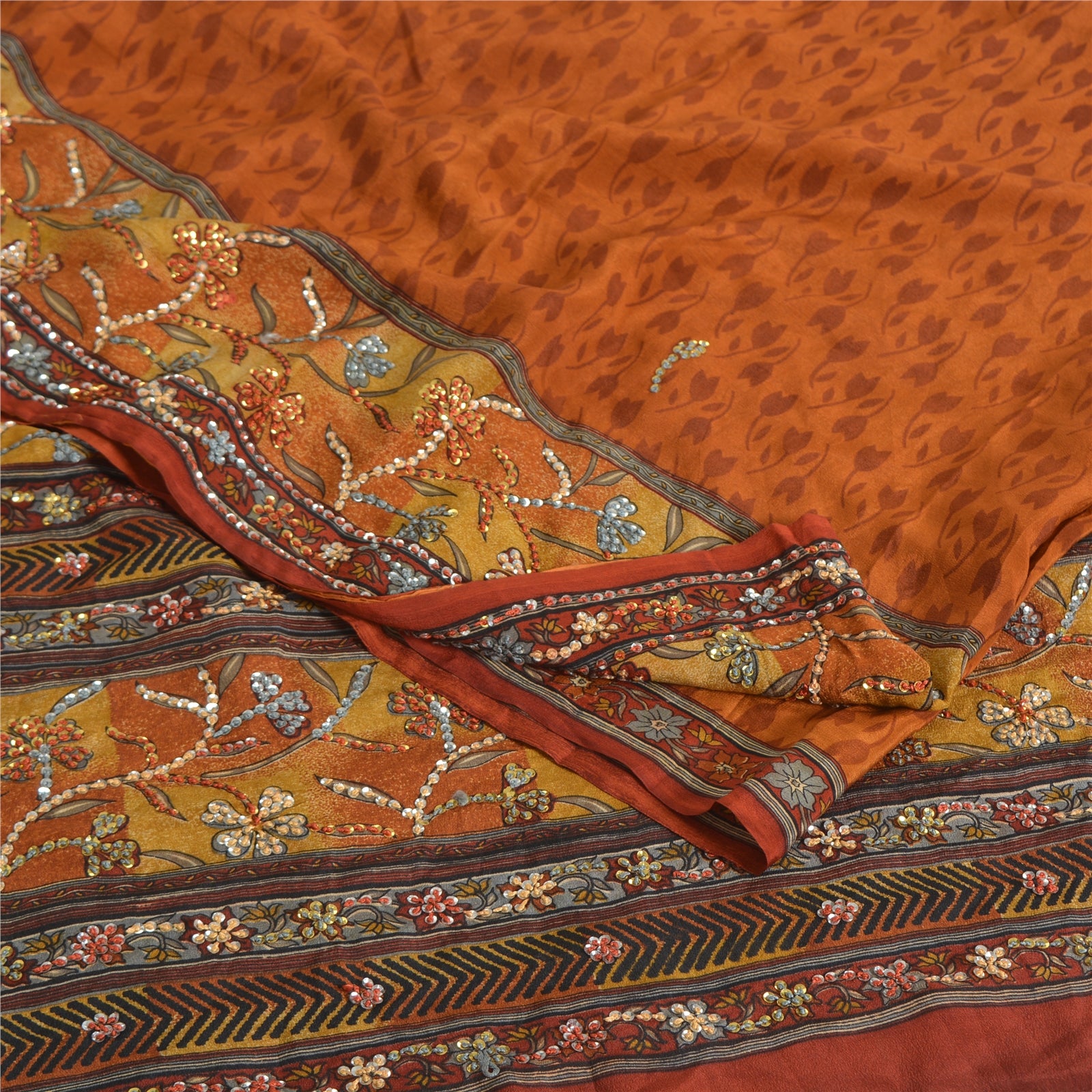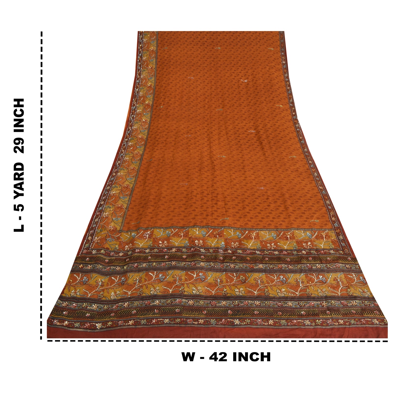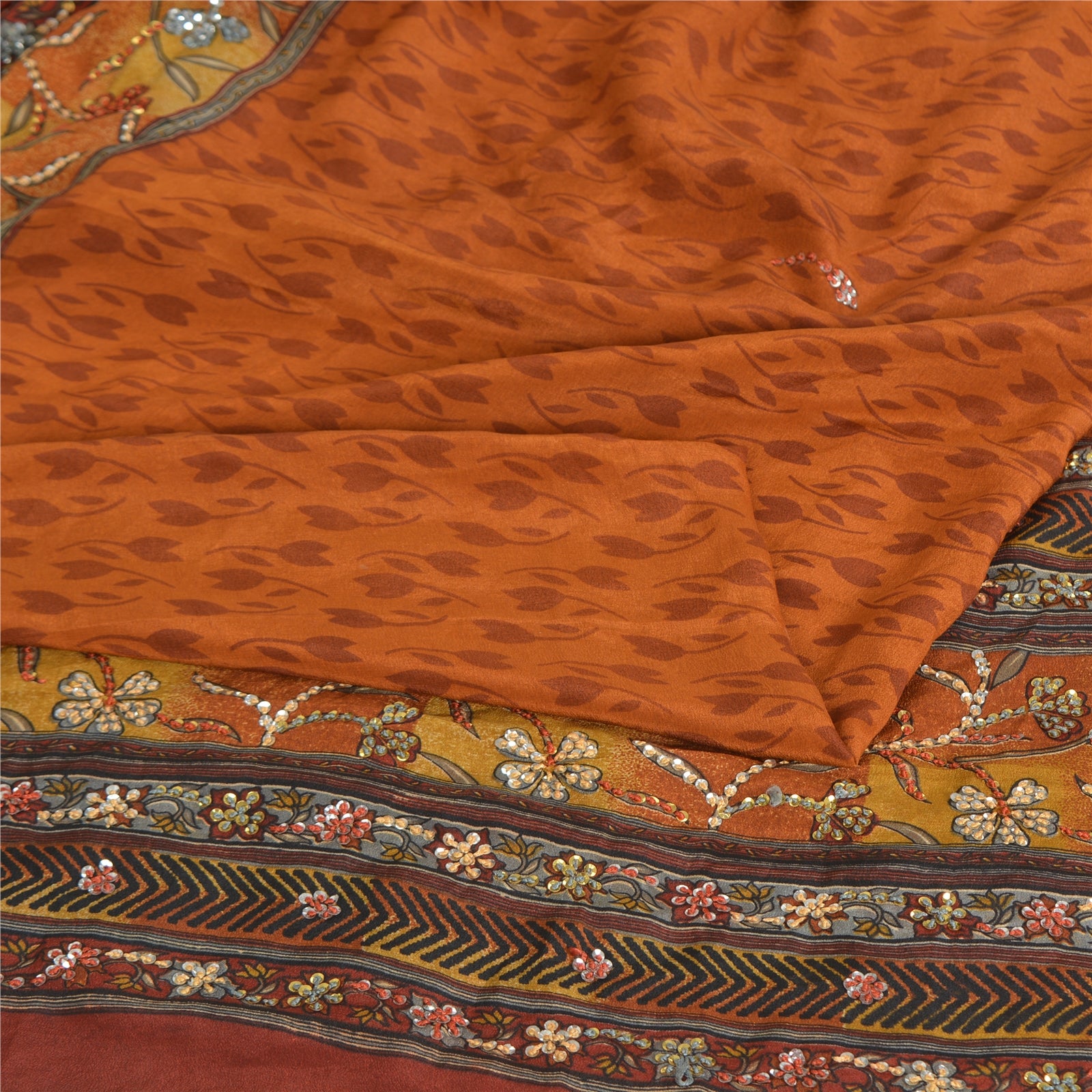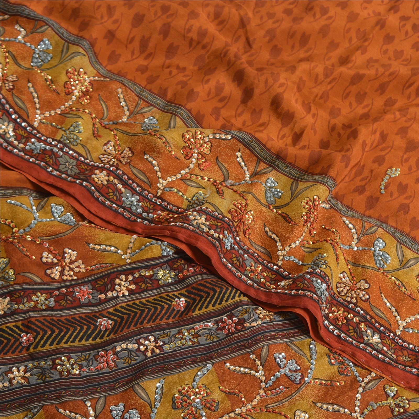 Санскритские винтажные сари шафрановый чистый креп с ручной вышивкой напечатанное сари устойчивая ткань