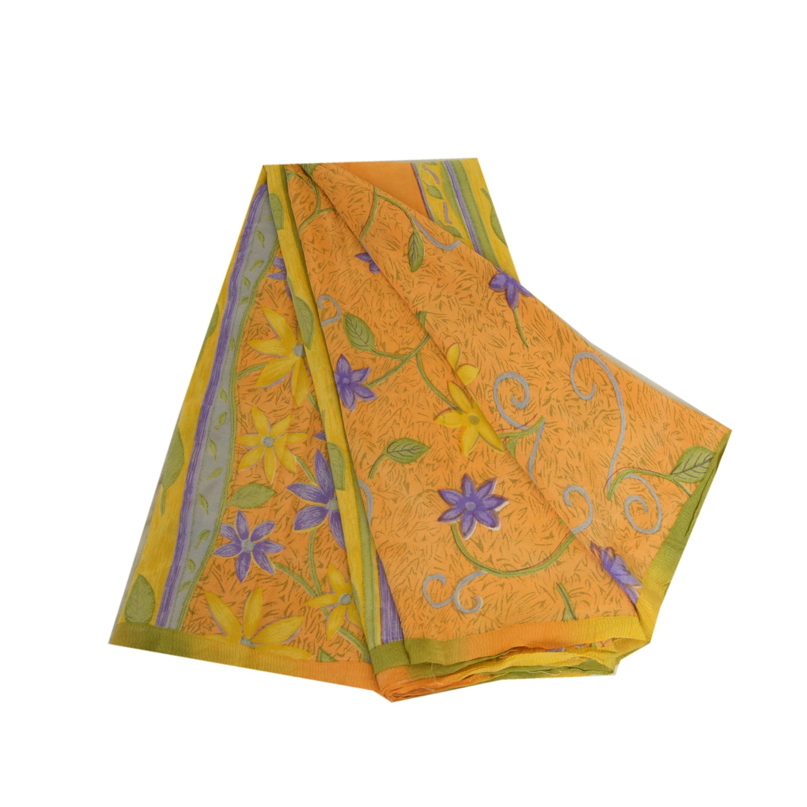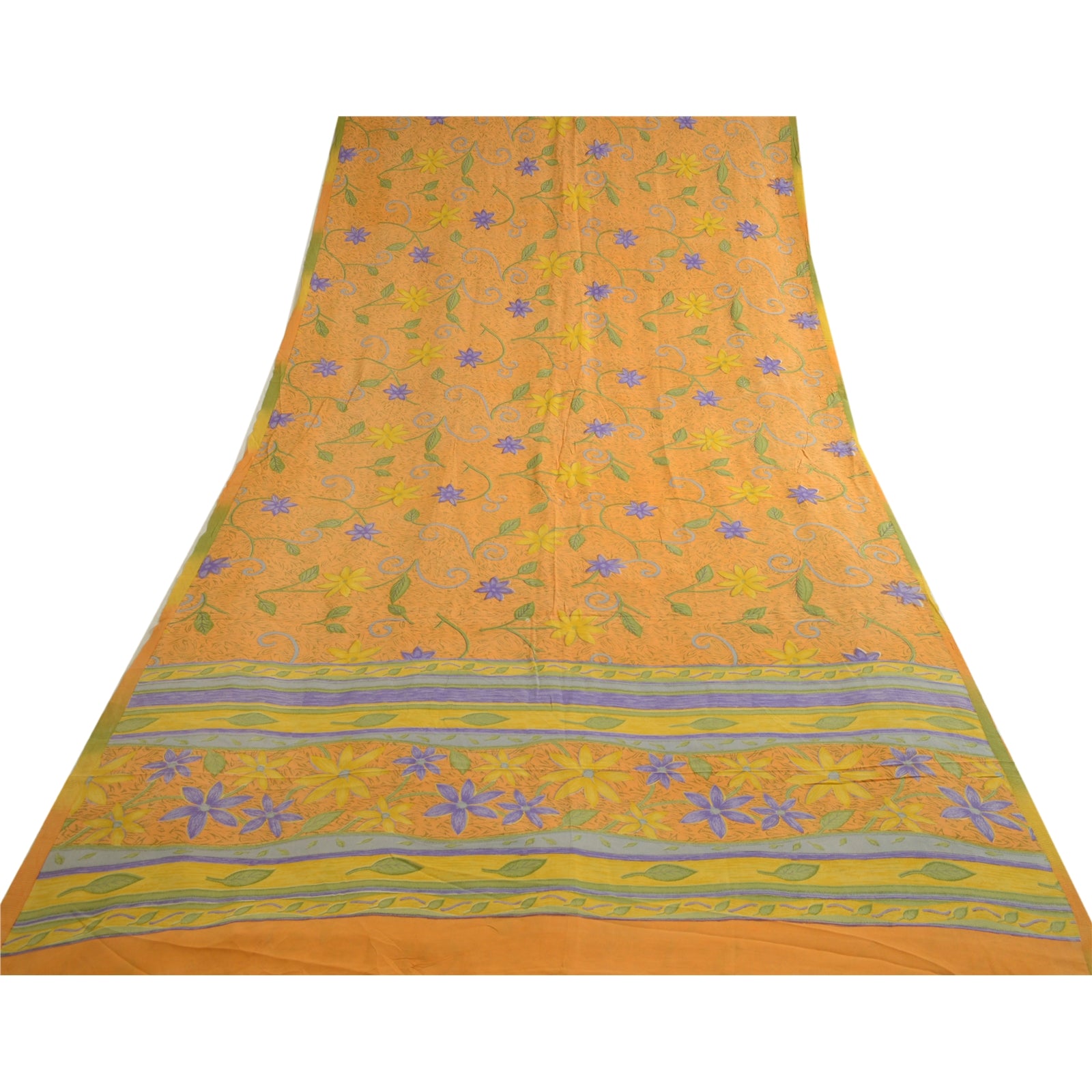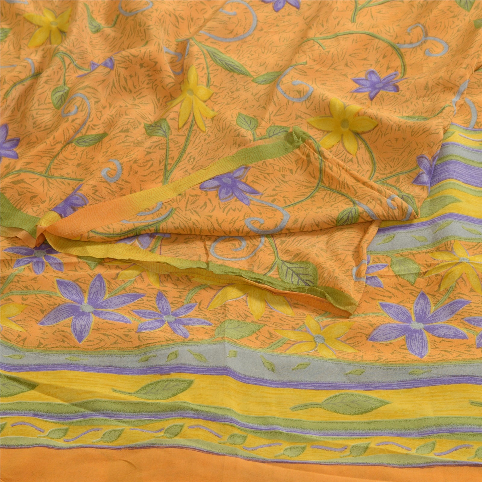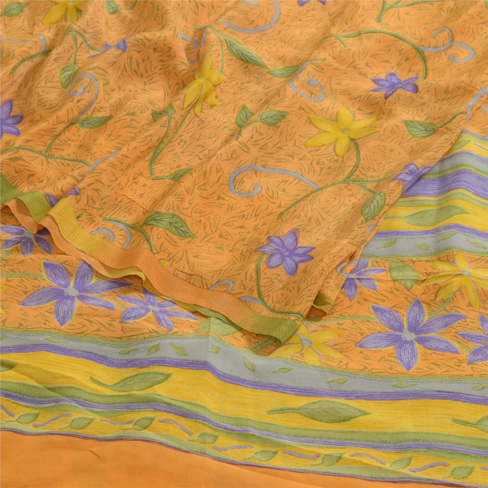 Сари из санскрита, винтажные, шафрановый, чистый креп-шелк, напечатанное сари, мягкая, рукодельная, устойчивая ткань