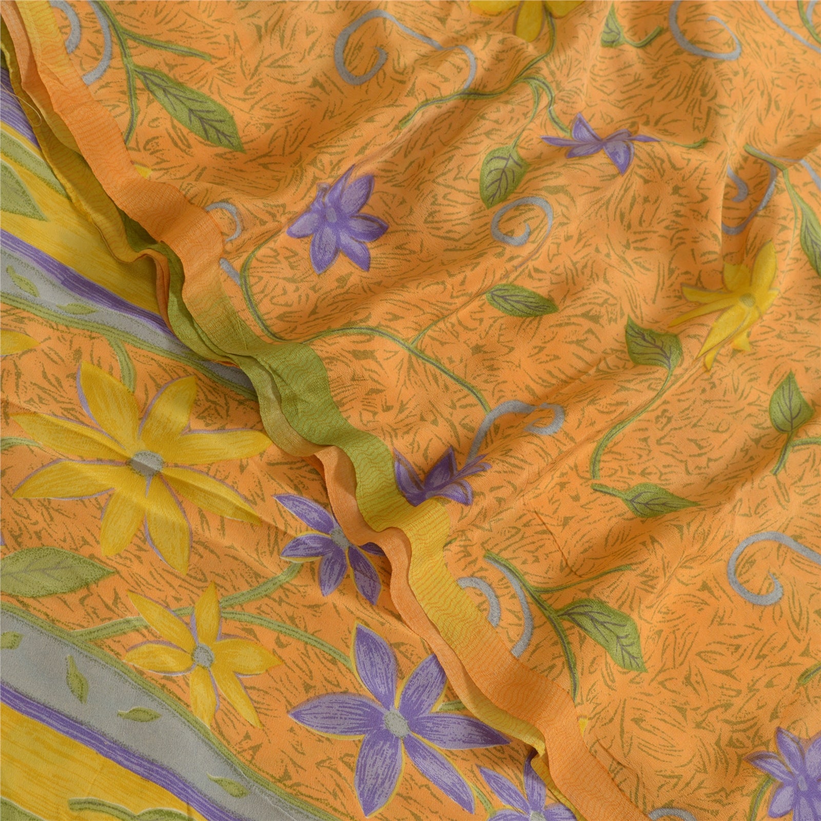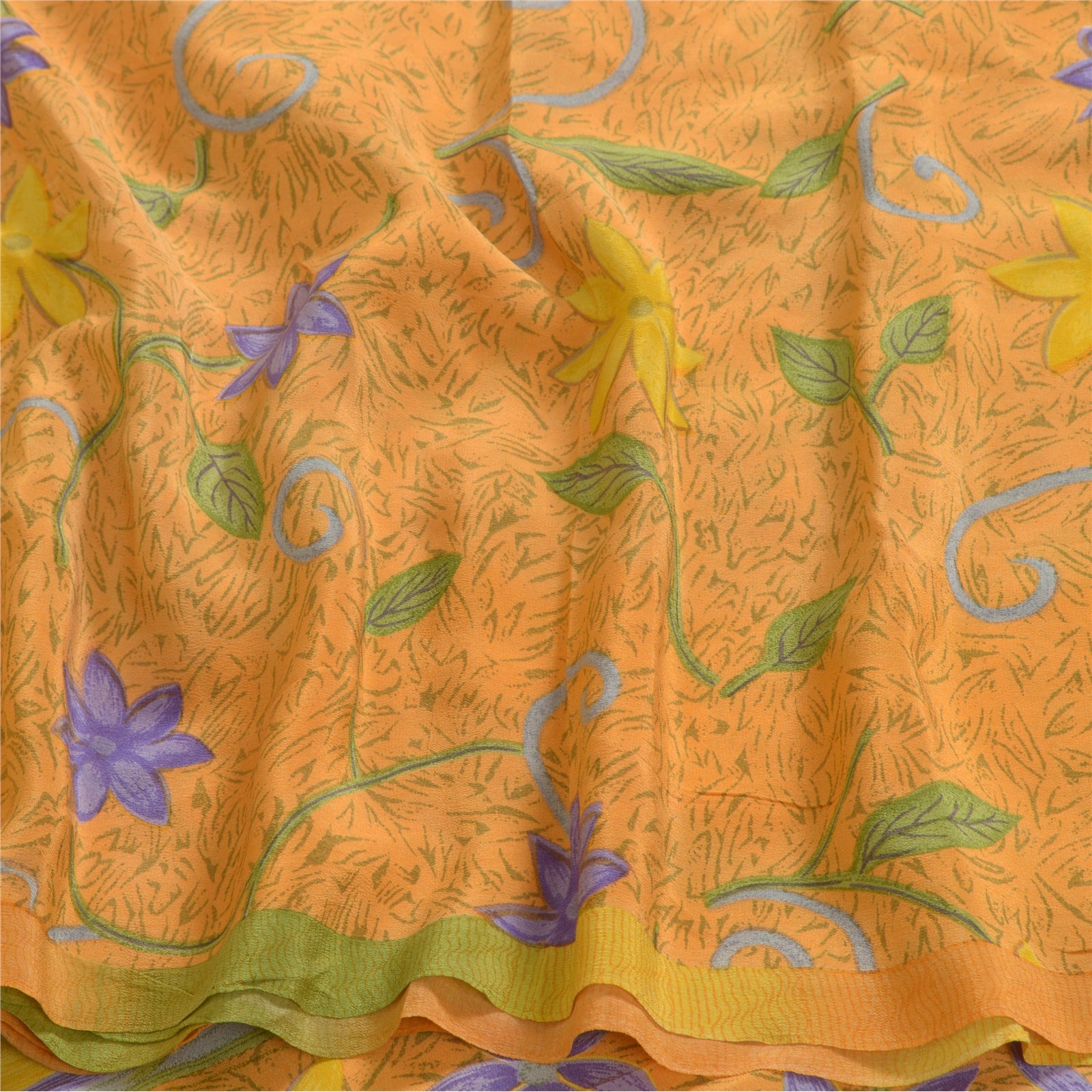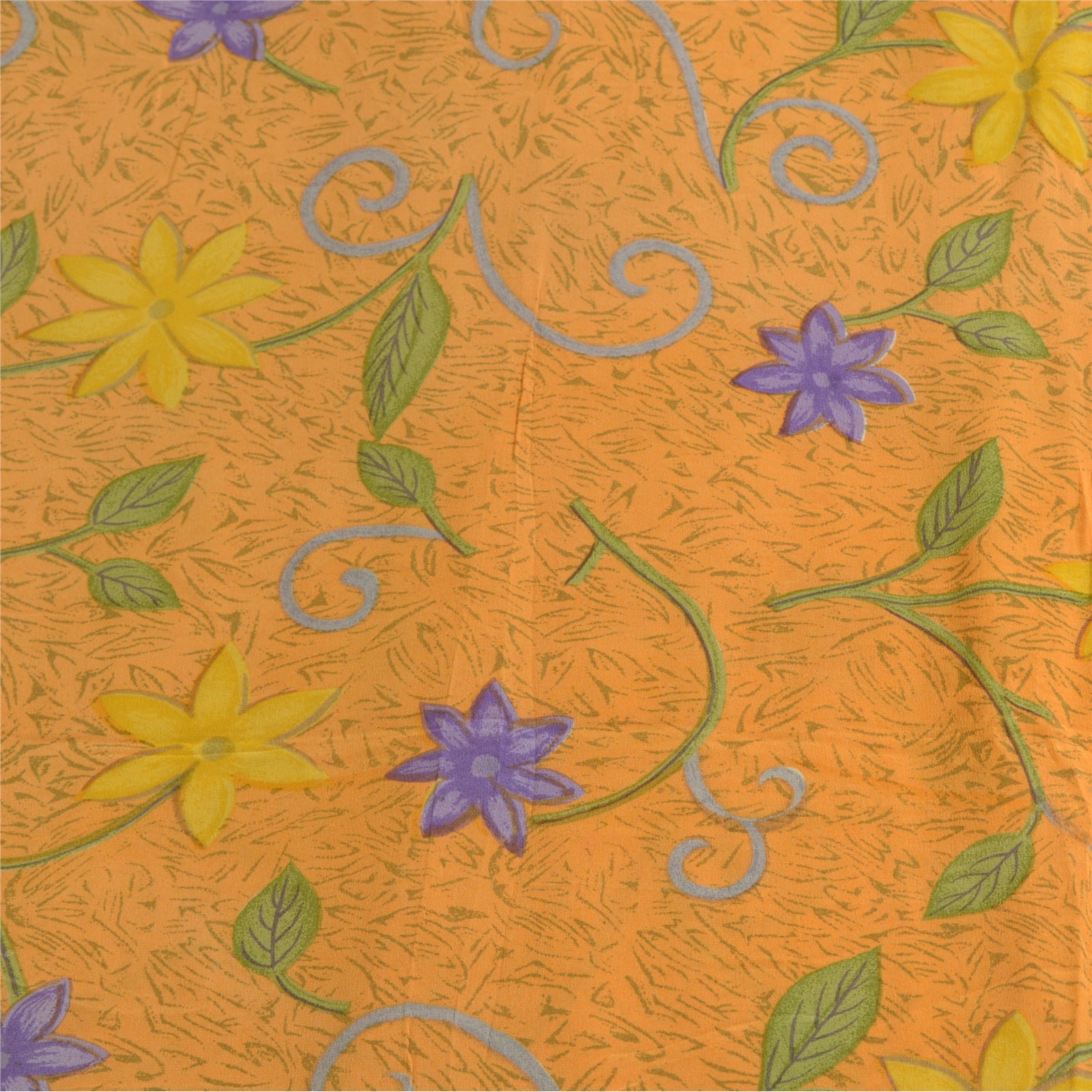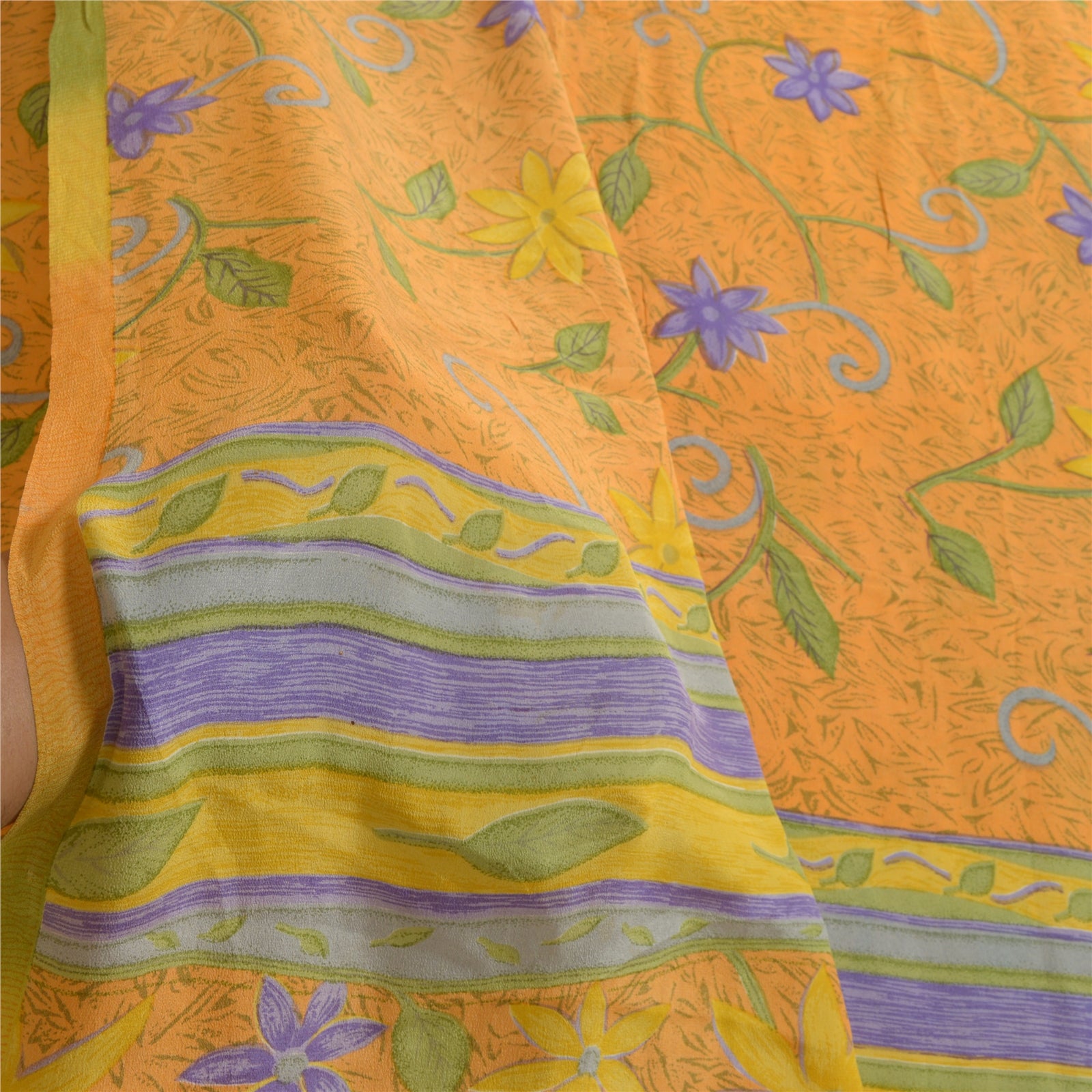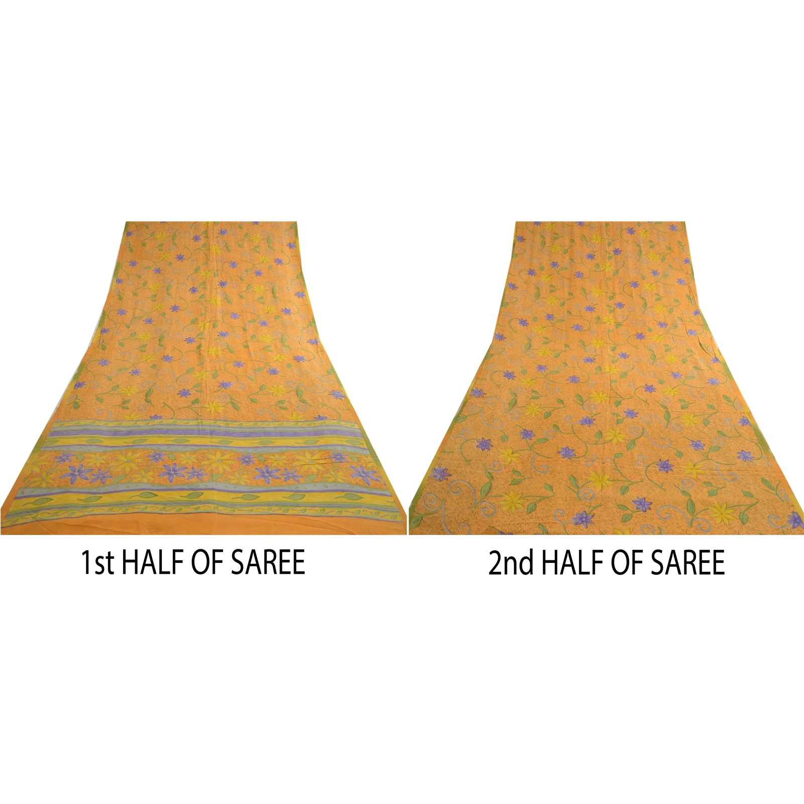 Сари из санскрита, винтажные, шафрановый, чистый креп-шелк, напечатанное сари, мягкая, рукодельная, устойчивая ткань