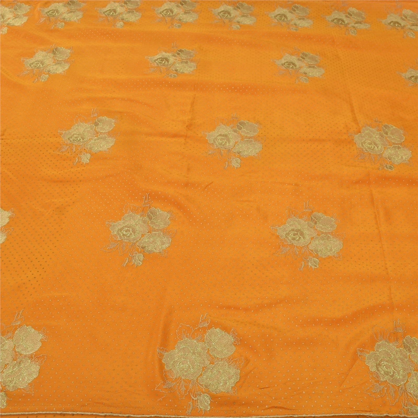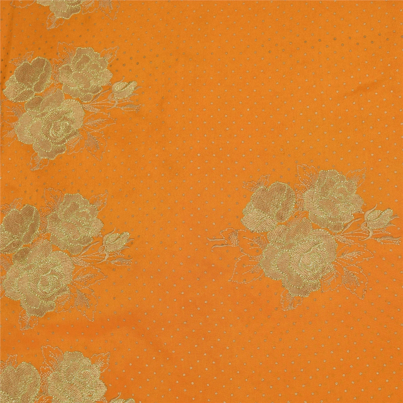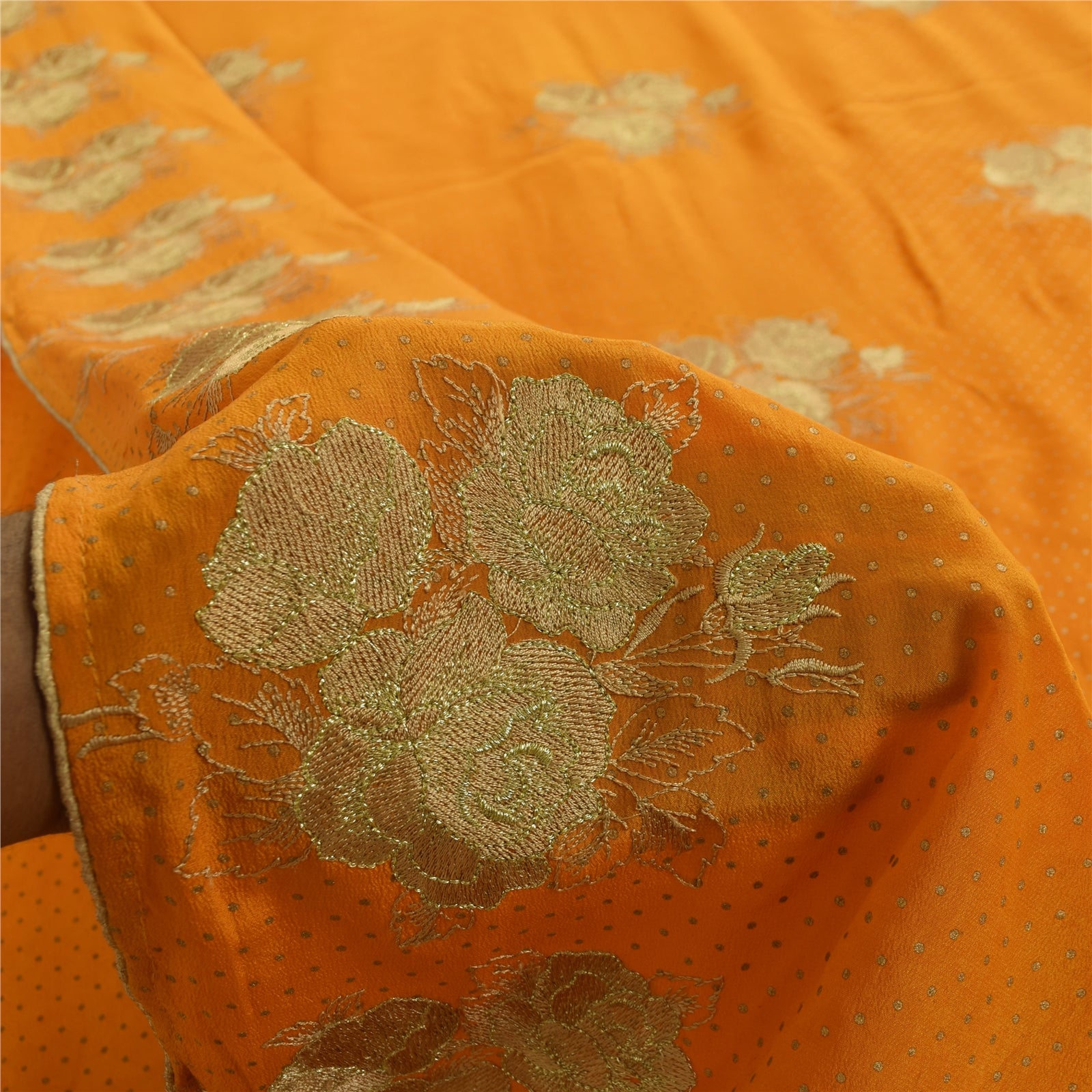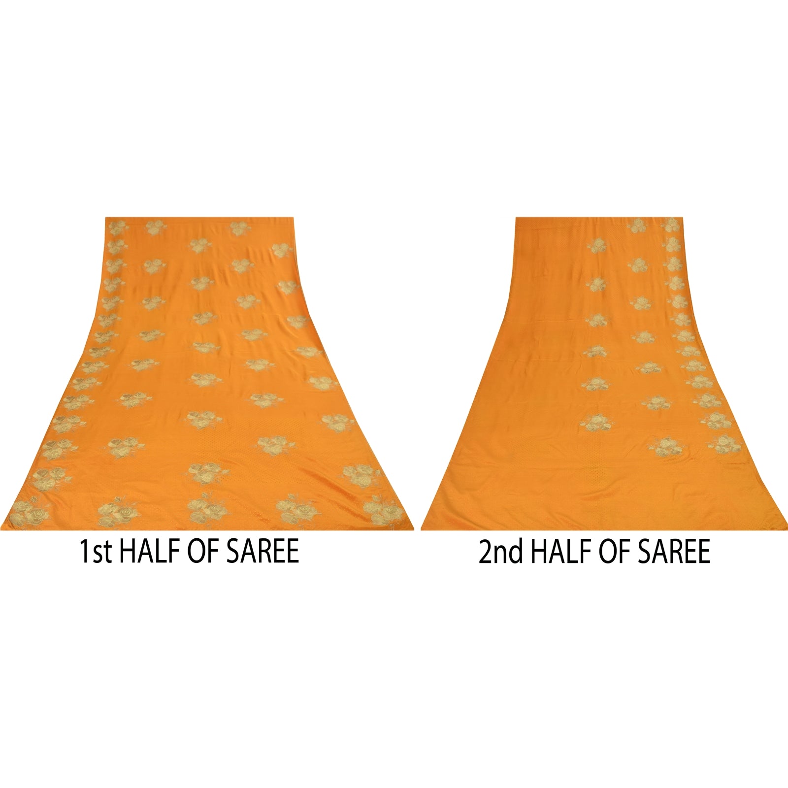 Sanskriti Vintage Sarees Yellow Embroidered & Painted Pure Silk Sari 6yd Fabric
