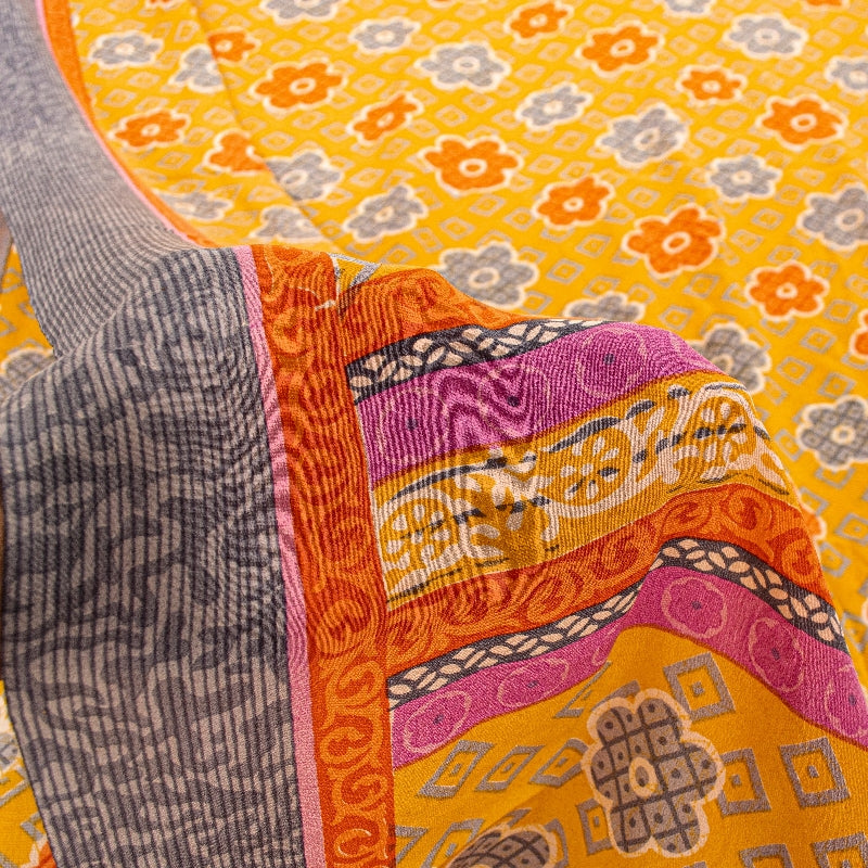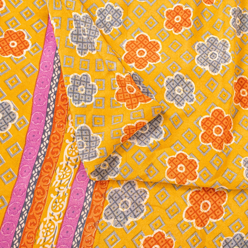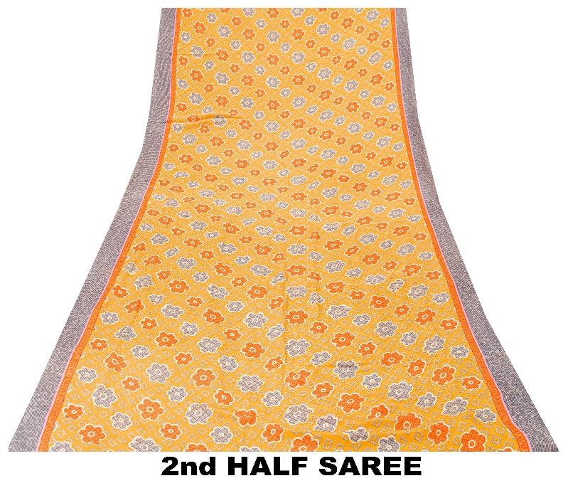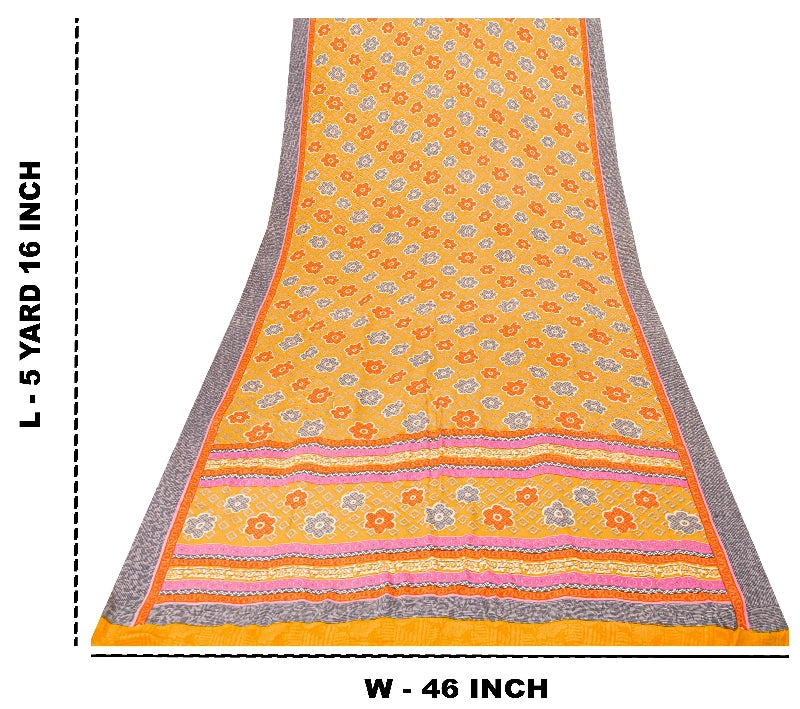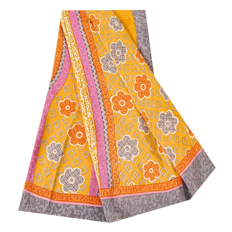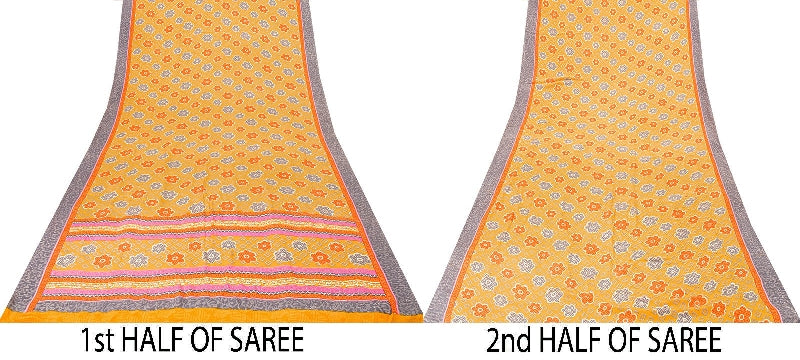 Санскритские винтажные сари из желтого индийского чистого крепированного шелка с принтом для сари из экологически чистой ткани