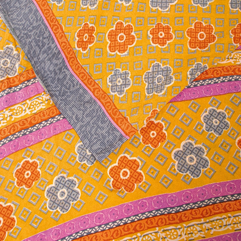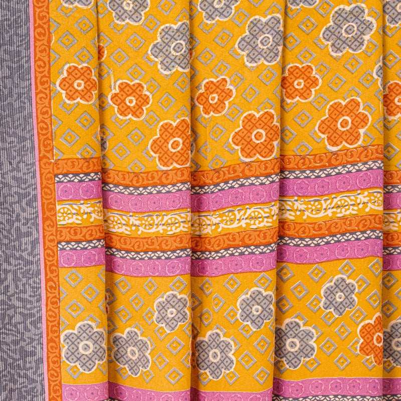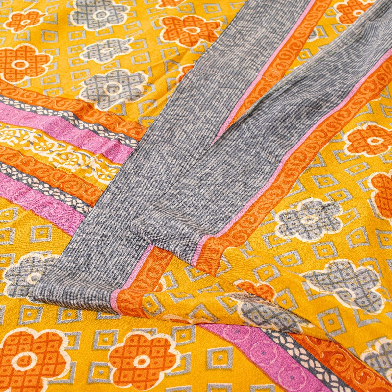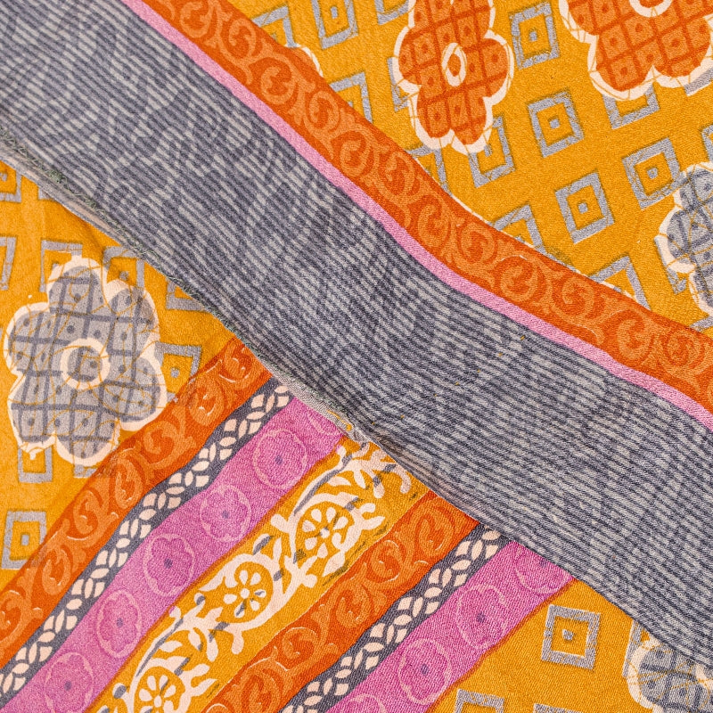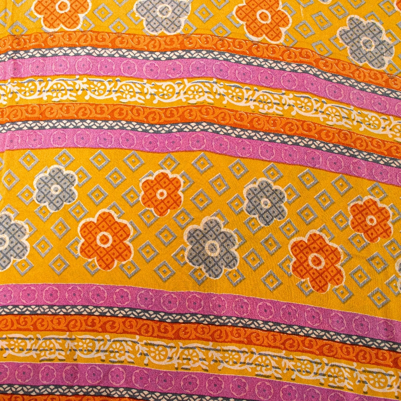 Санскритские винтажные сари из желтого индийского чистого крепированного шелка с принтом для сари из экологически чистой ткани