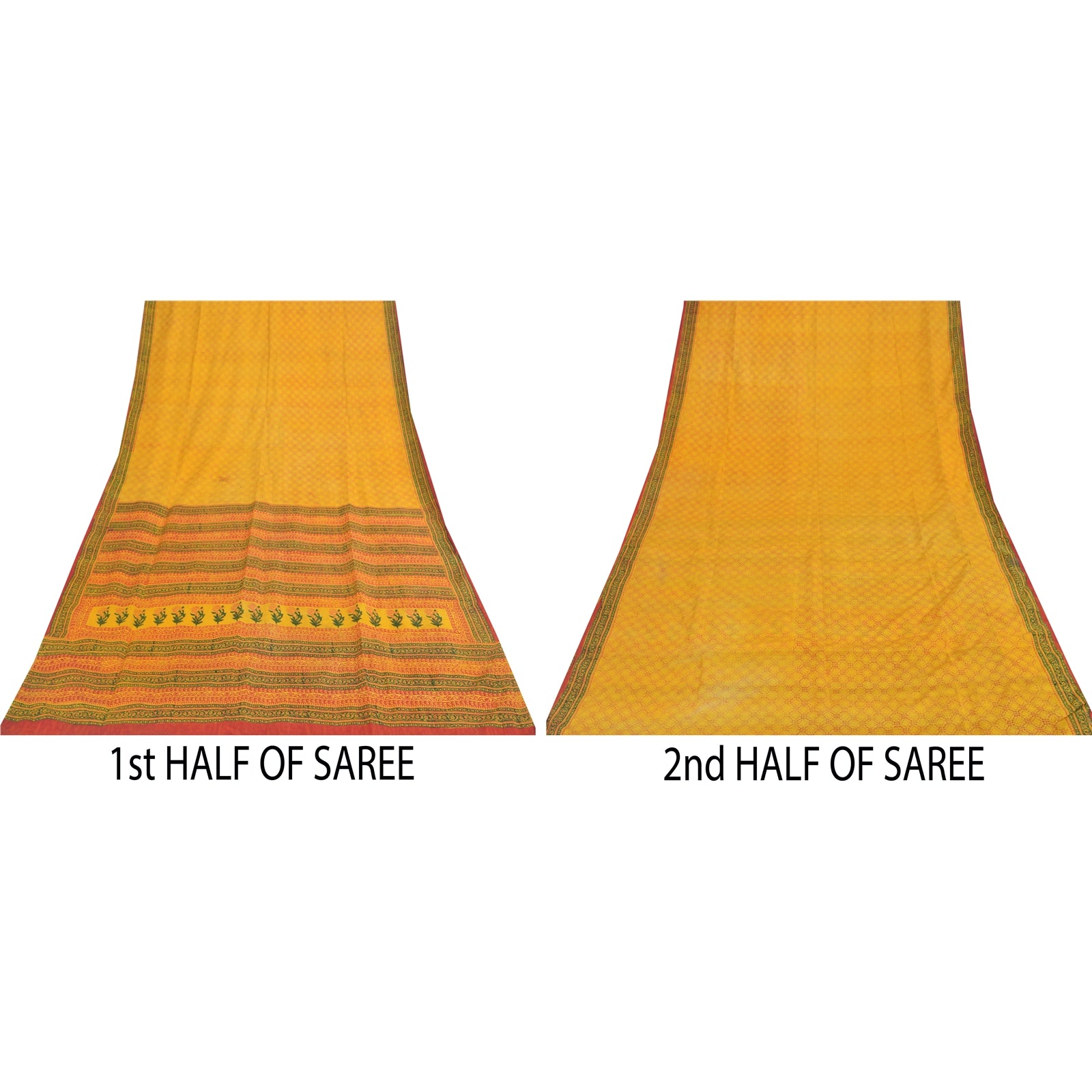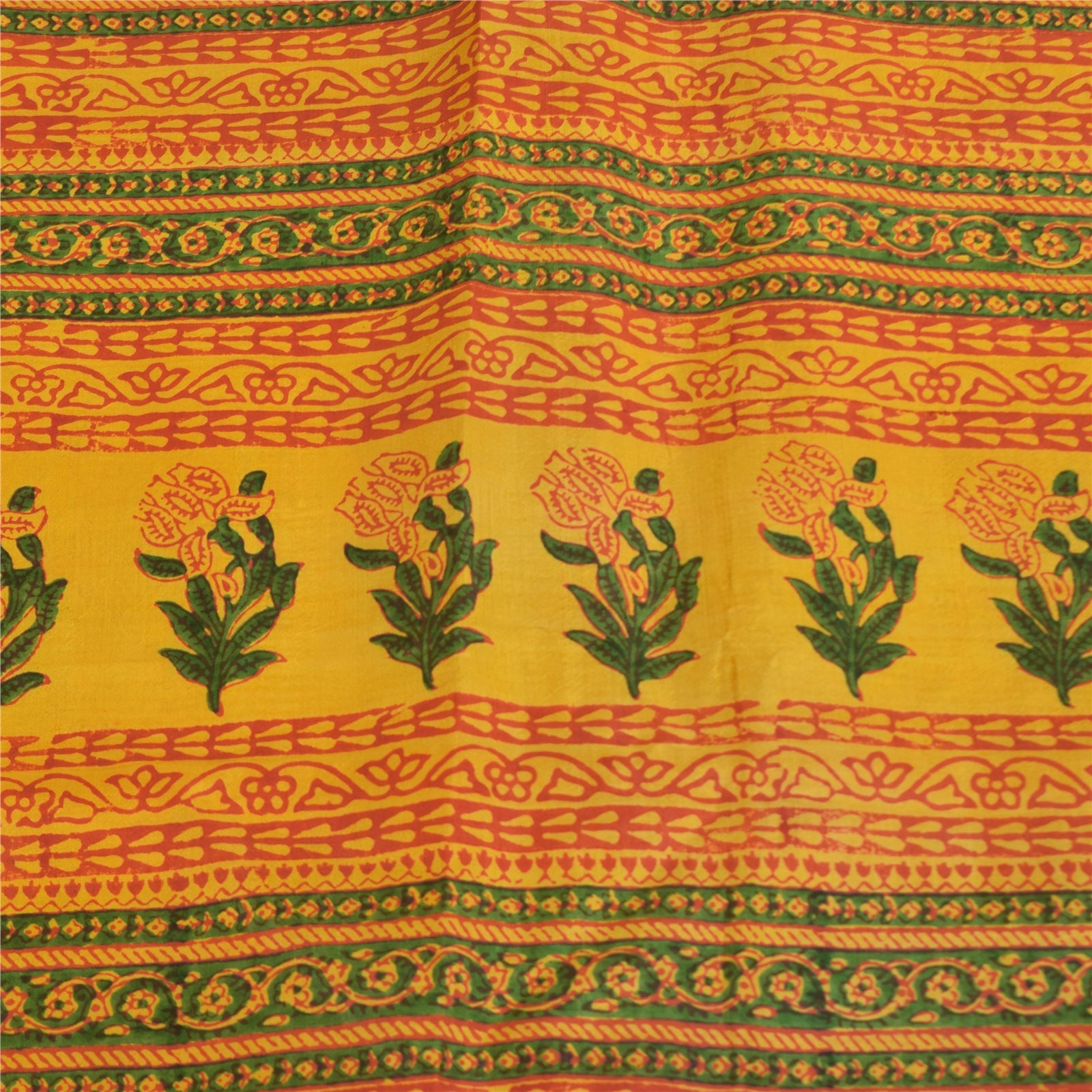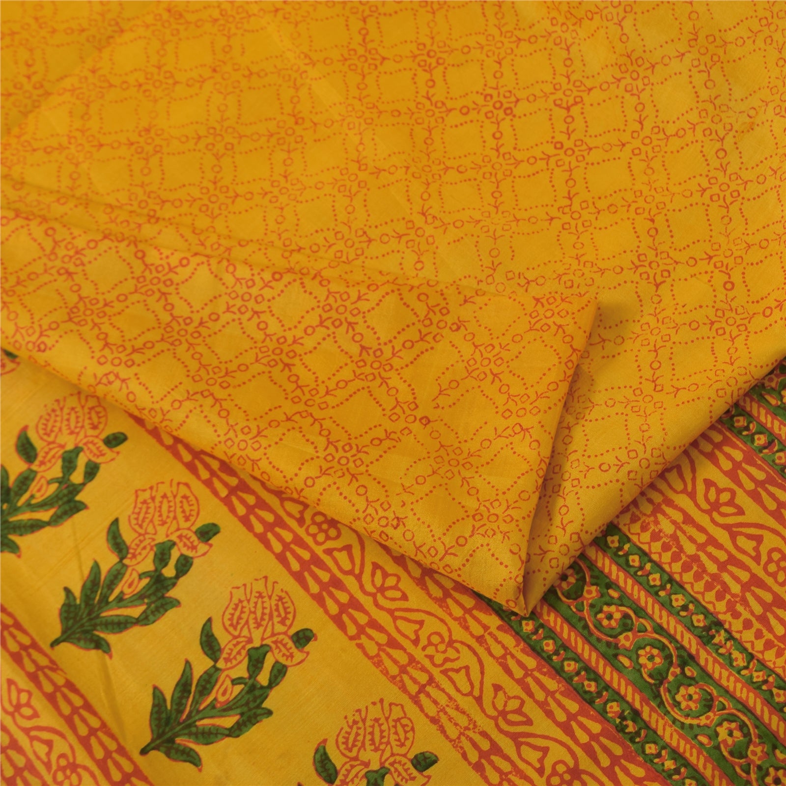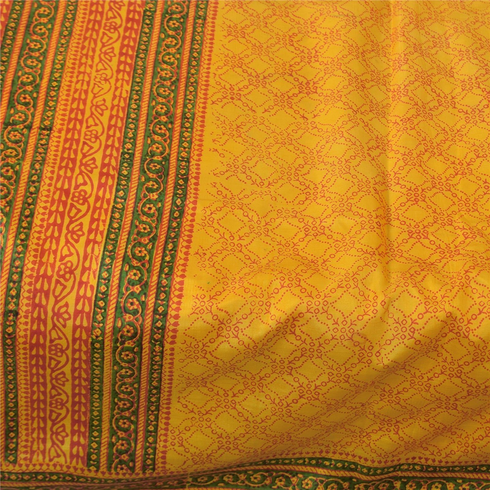 Санскритские винтажные сари желтое индийское чистое шелковое сари с принтом 5+ ярдов ткань для рукоделия