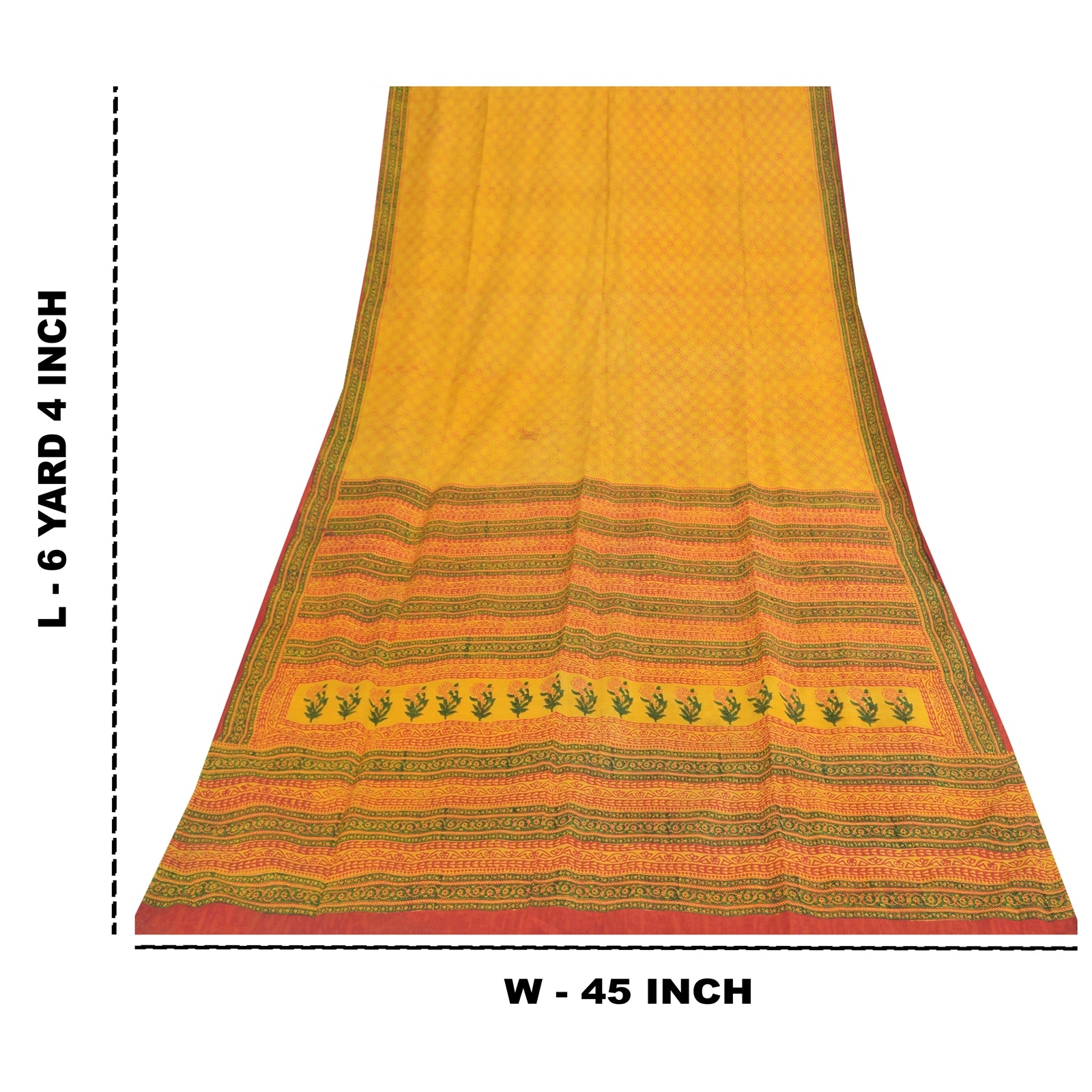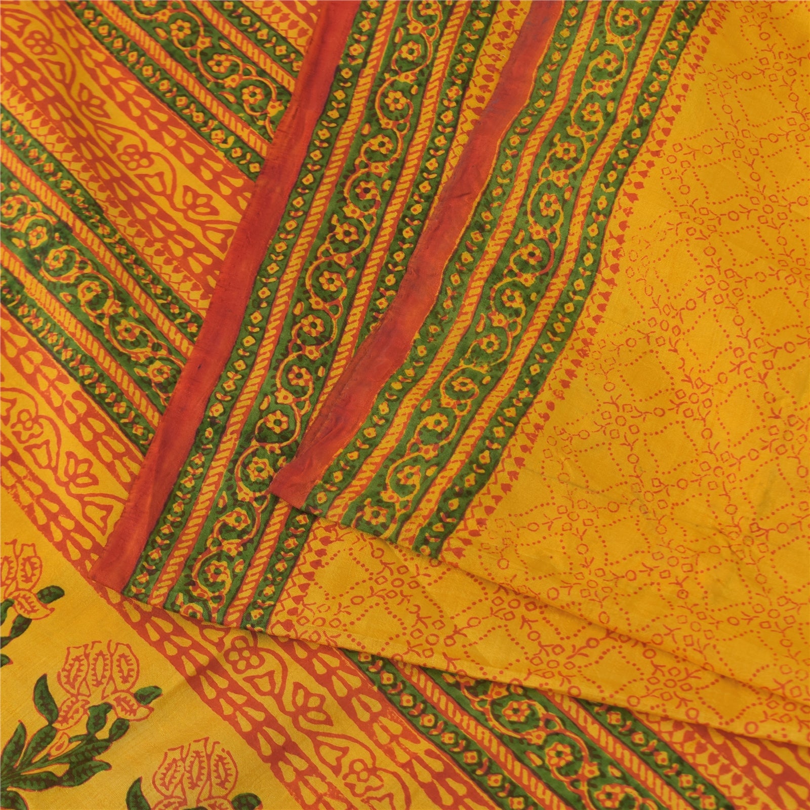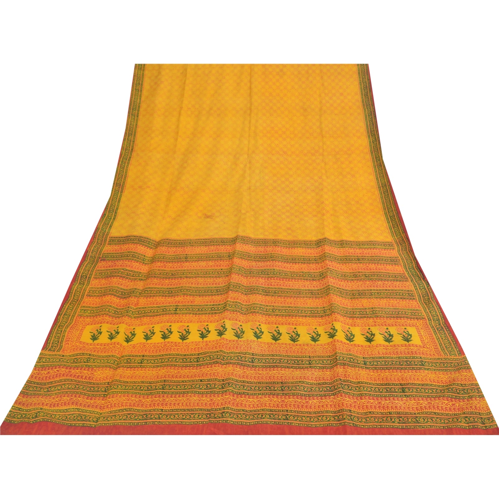 Санскритские винтажные сари желтое индийское чистое шелковое сари с принтом 5+ ярдов ткань для рукоделия