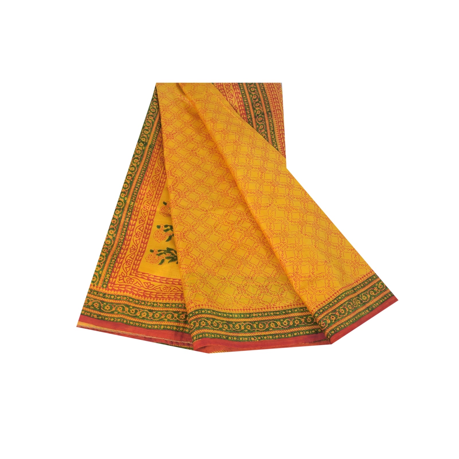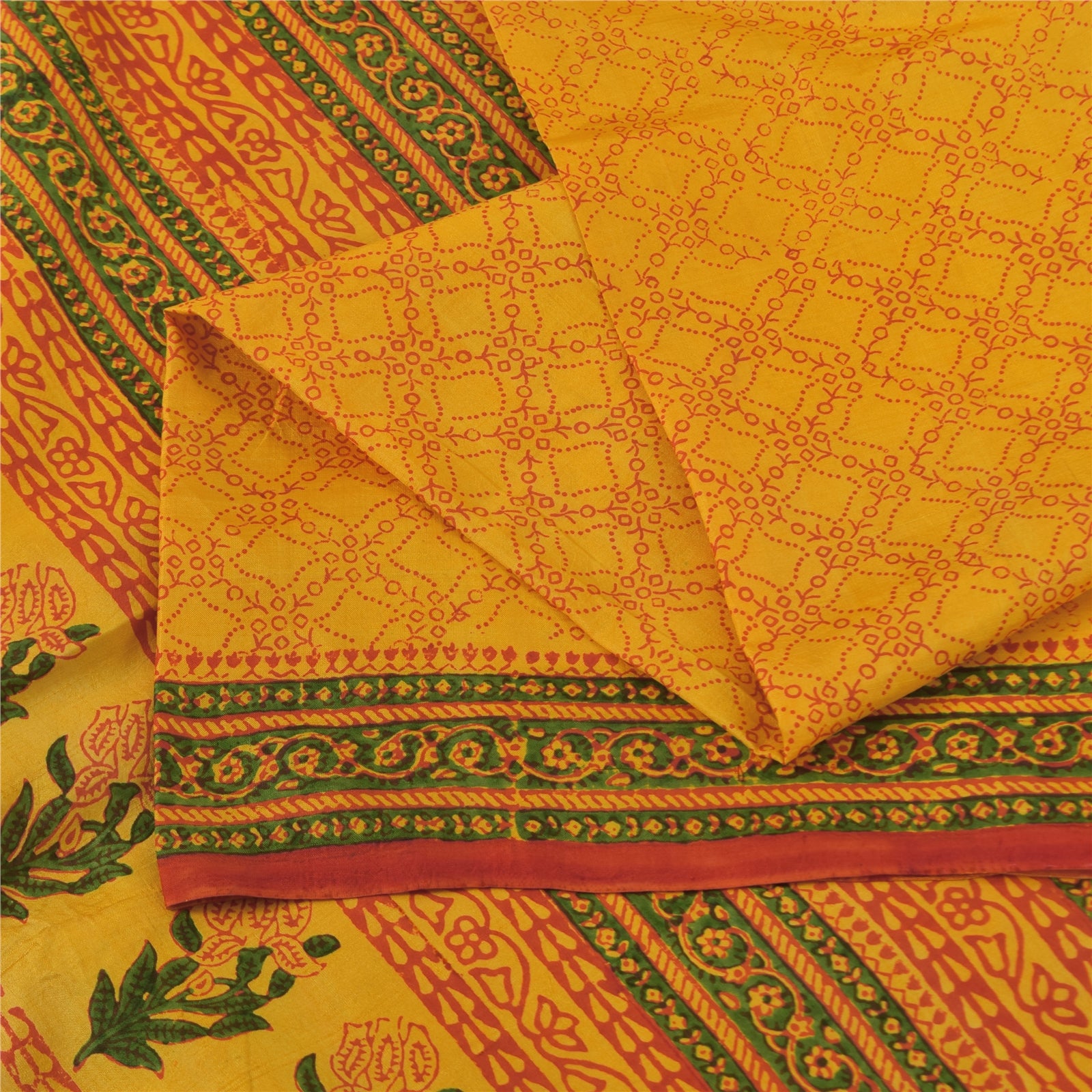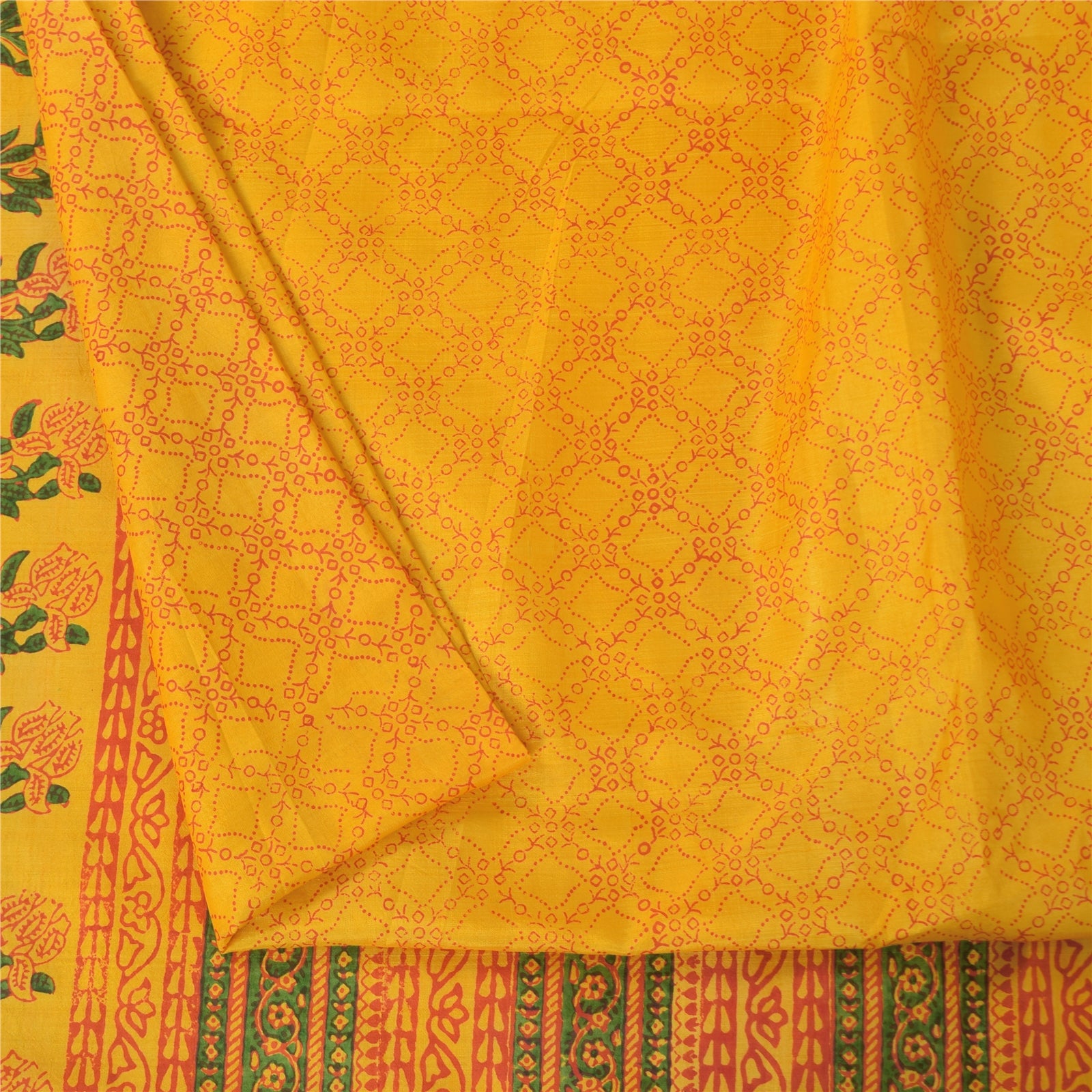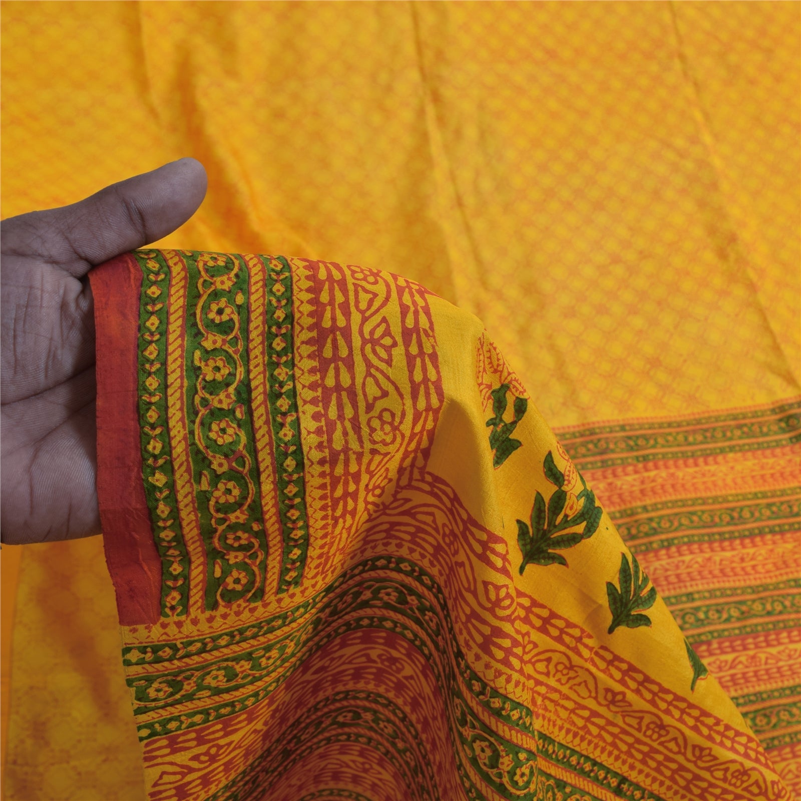 Санскритские винтажные сари желтое индийское чистое шелковое сари с принтом 5+ ярдов ткань для рукоделия