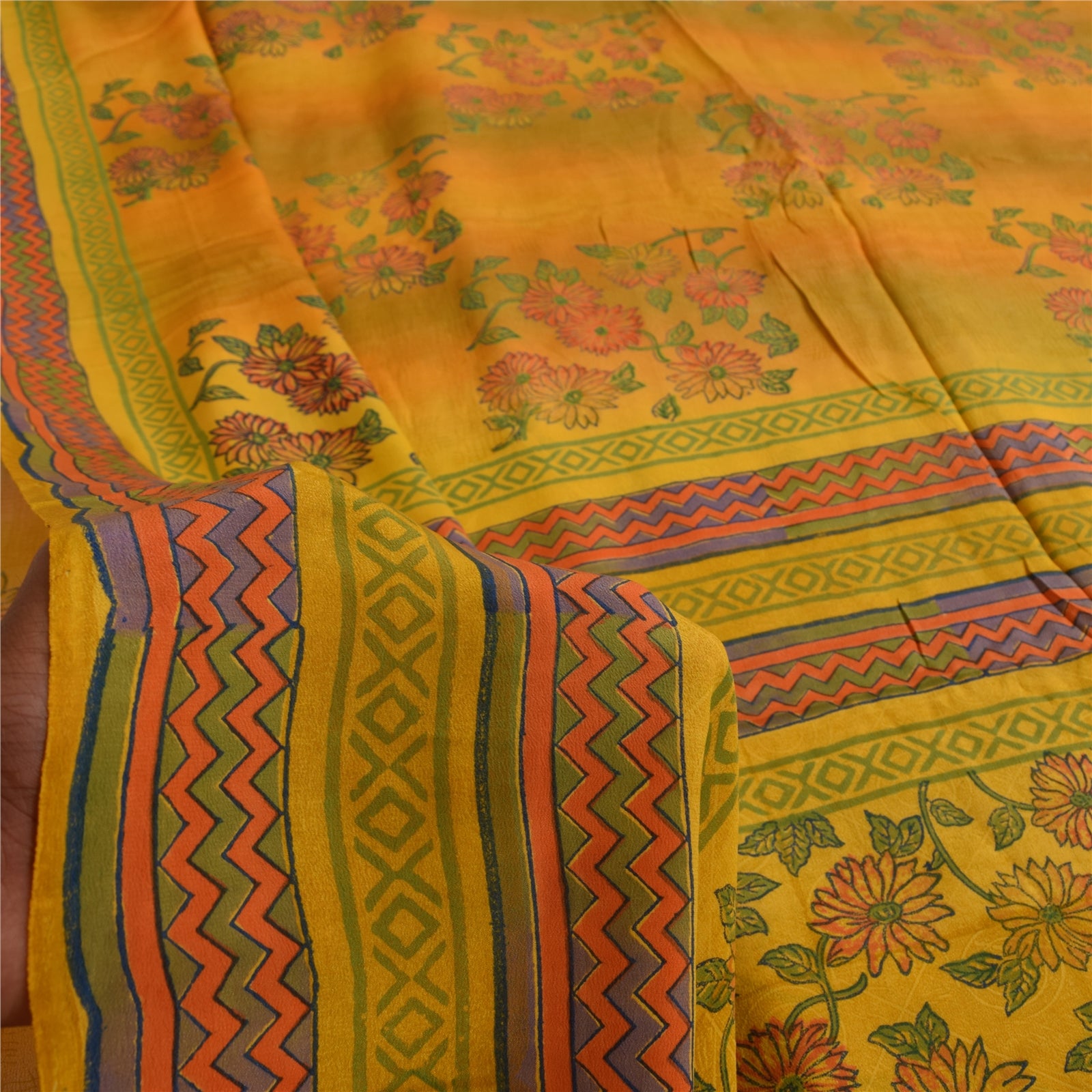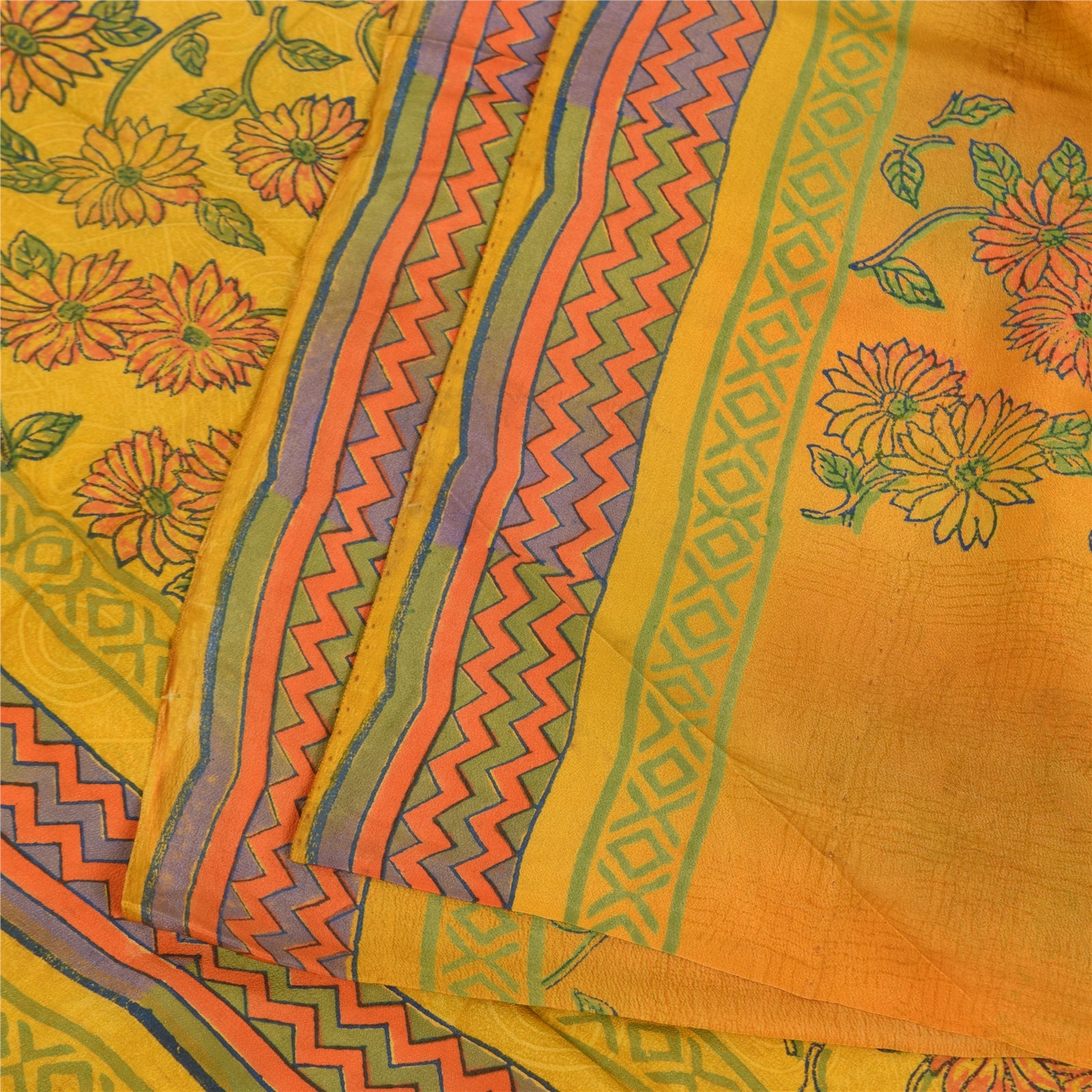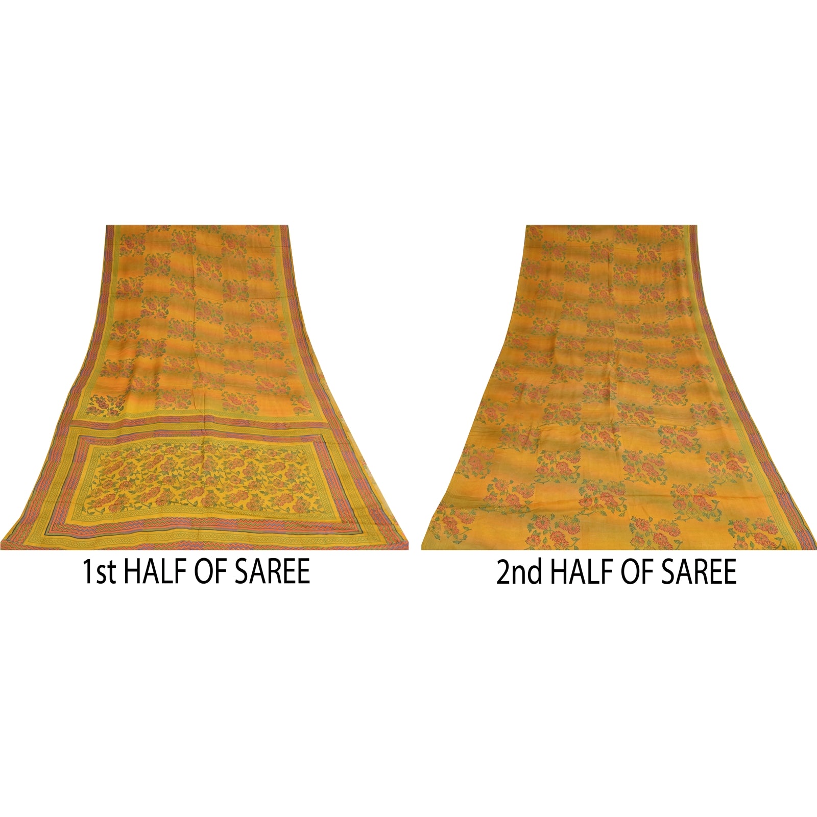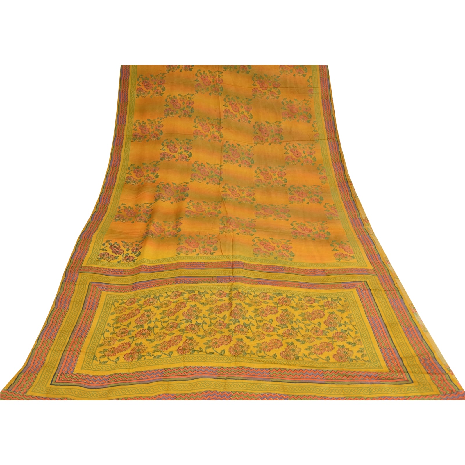 Санскритские винтажные сари из чистого желтого крепированного шелка с принтом, 5+ ярдов, ремесленная устойчивая ткань