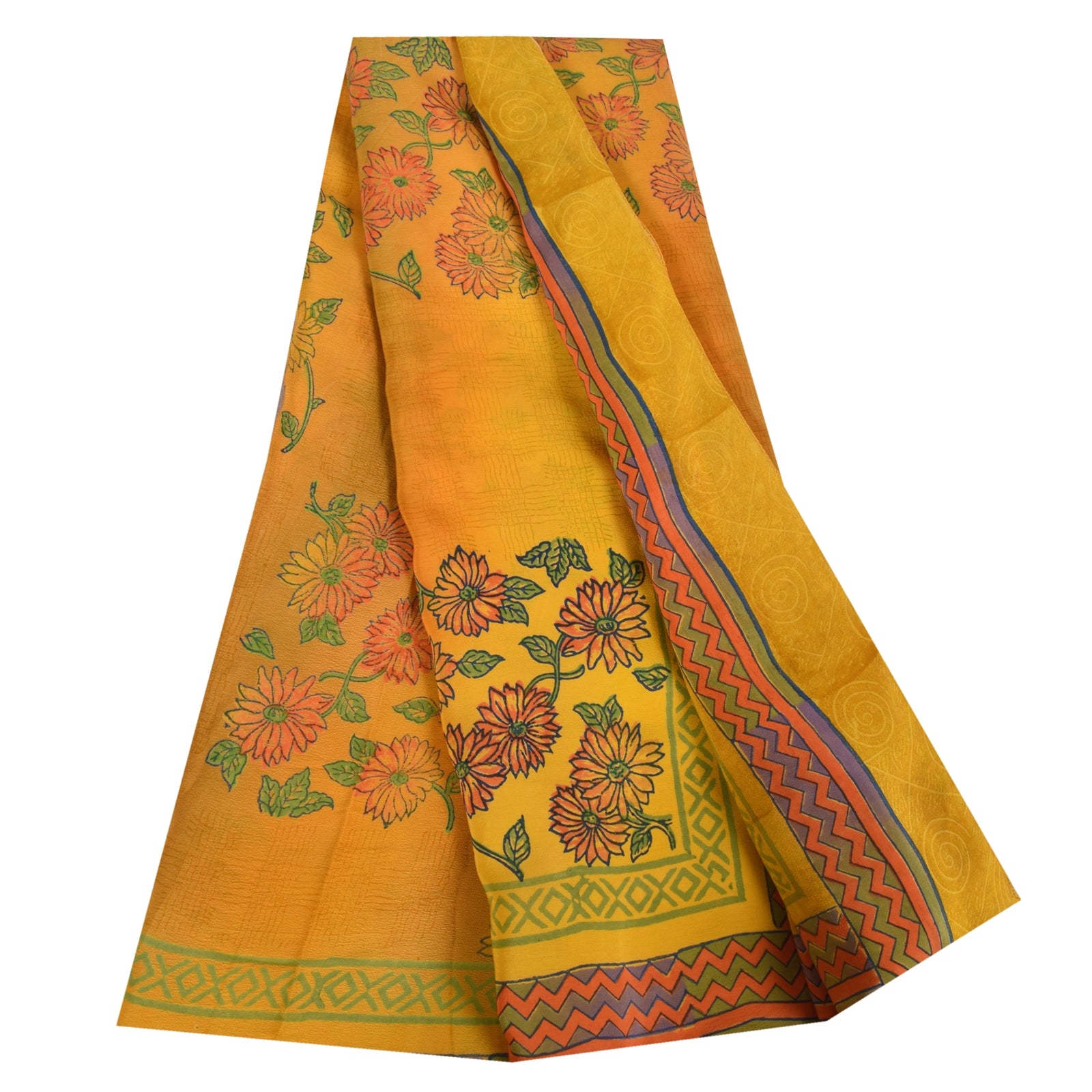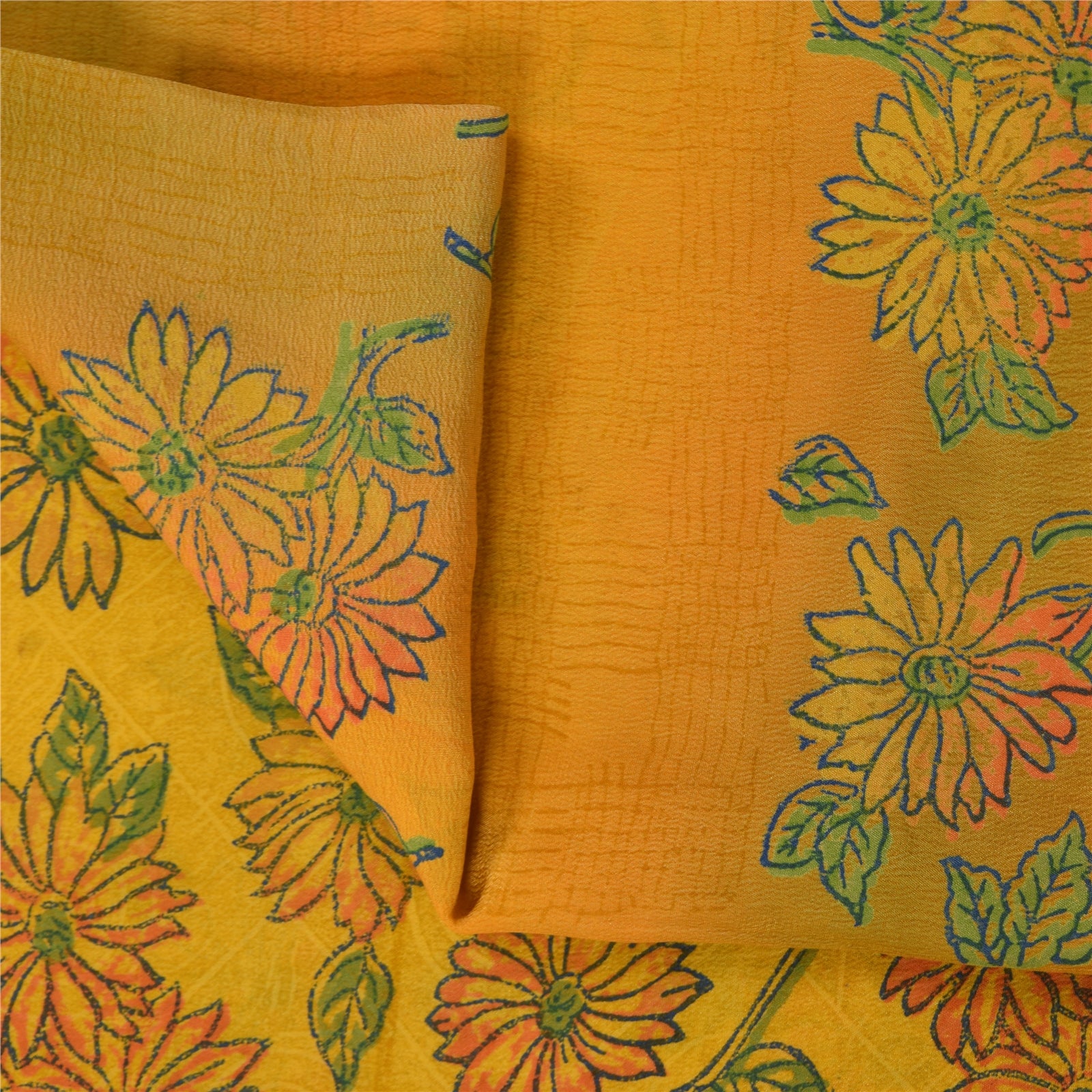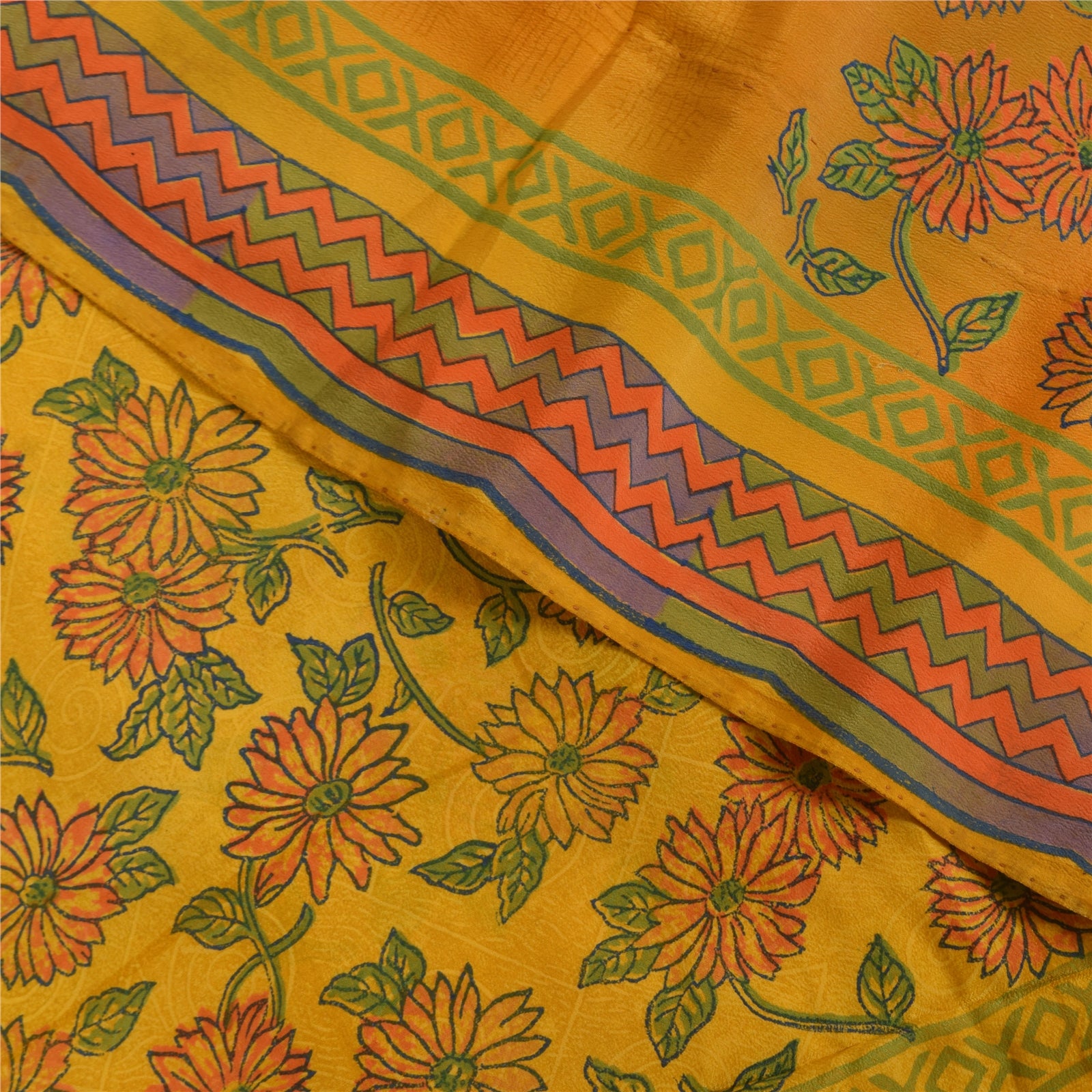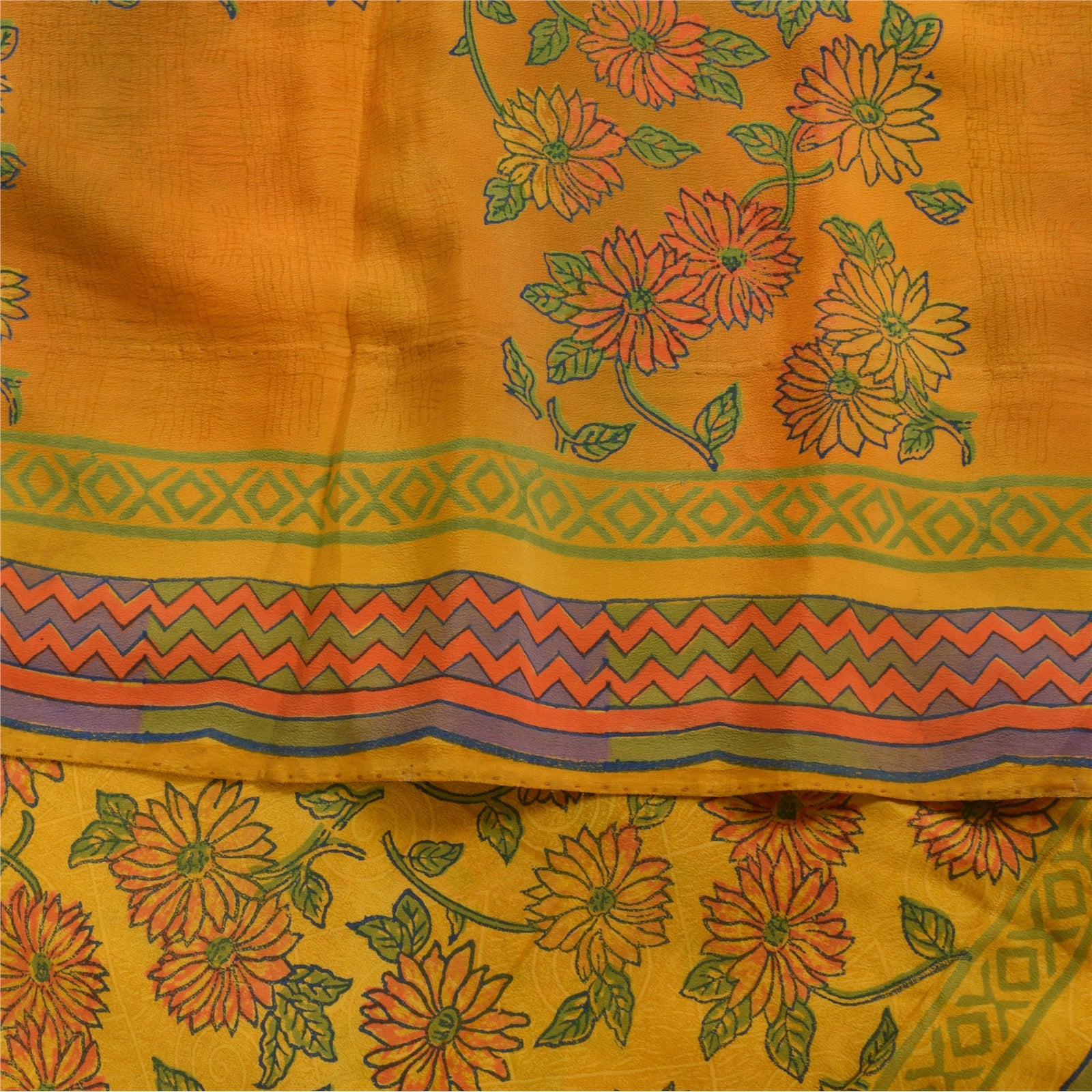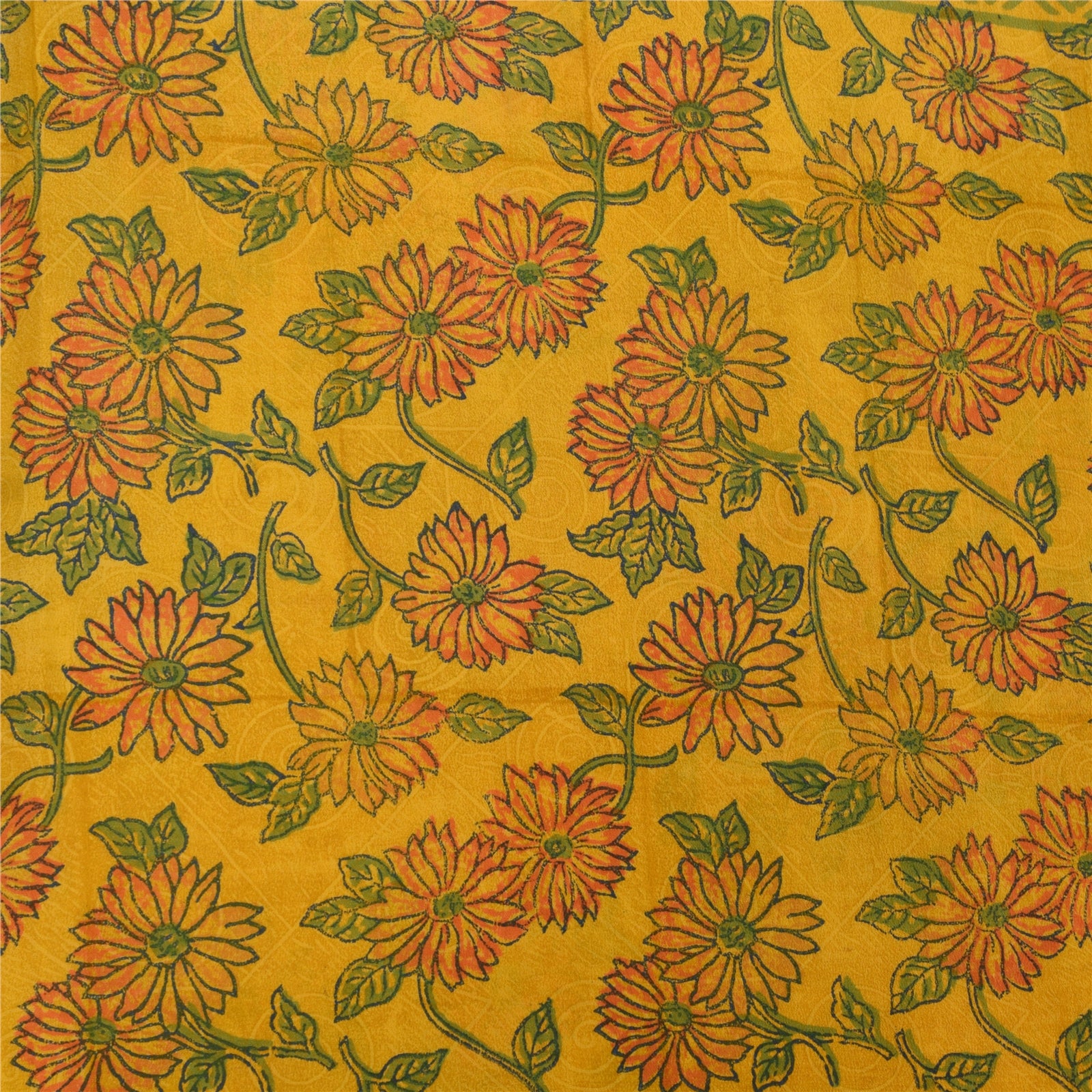 Санскритские винтажные сари из чистого желтого крепированного шелка с принтом, 5+ ярдов, ремесленная устойчивая ткань