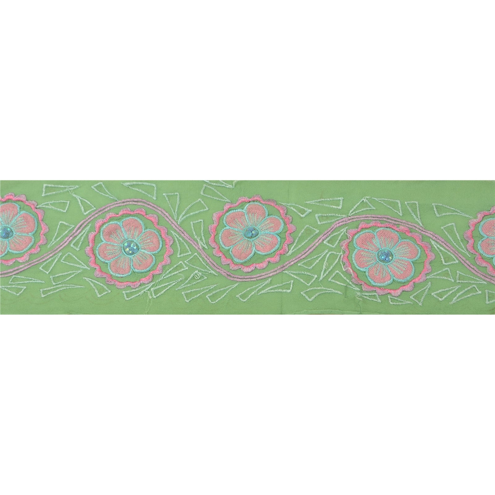 Sanskriti Vintage Sari Border Embroidered 1 YD Trim Sewing Green Craft Deco Lace