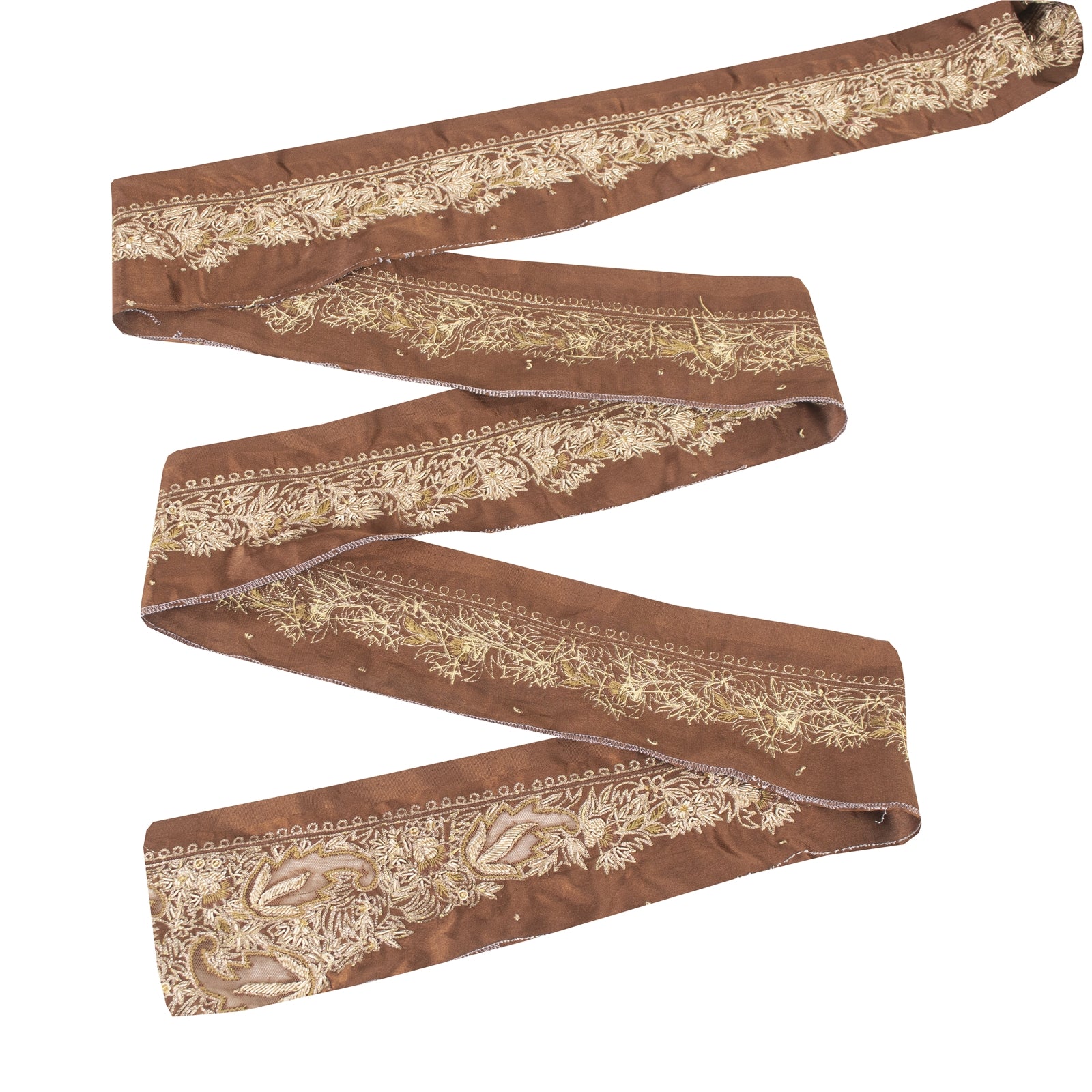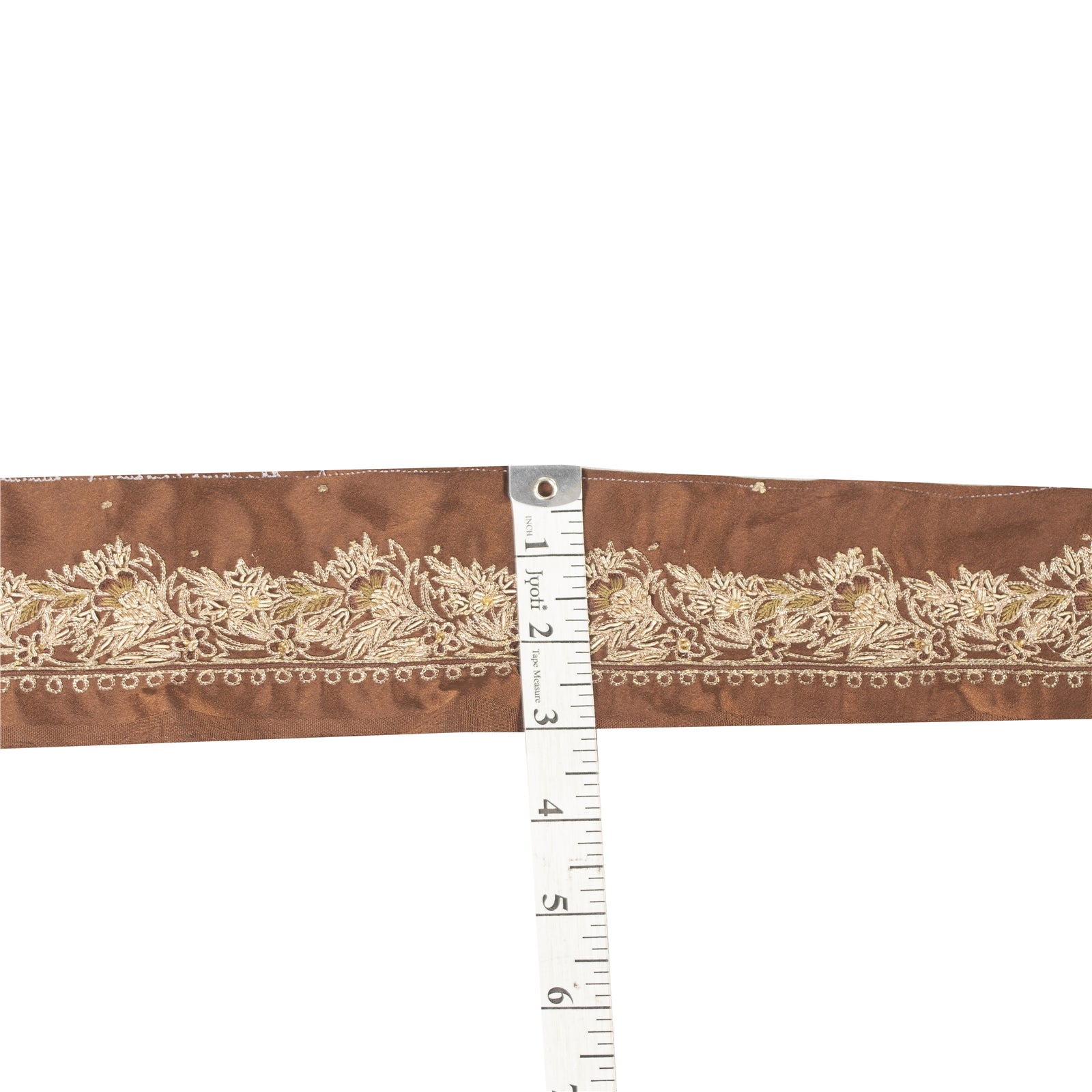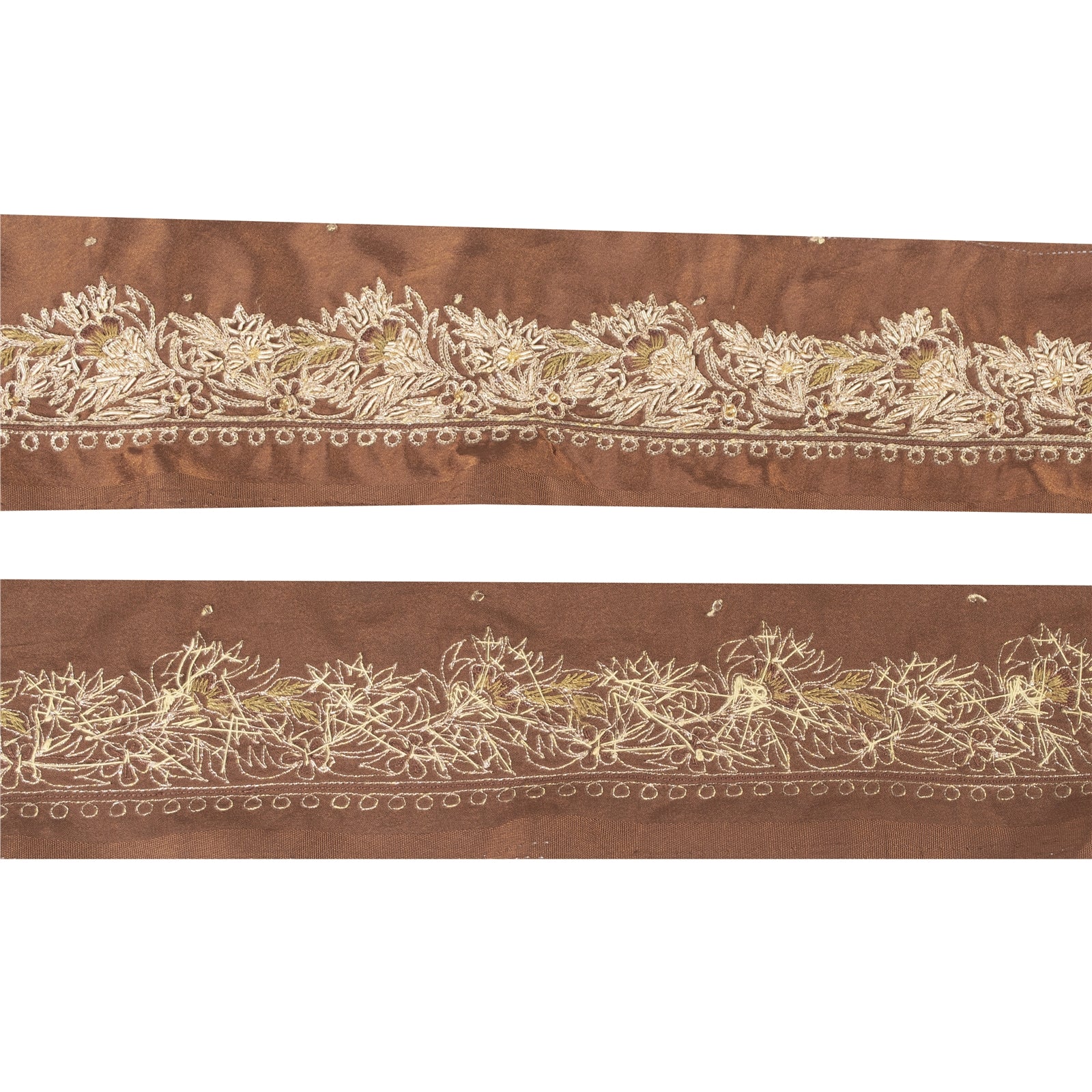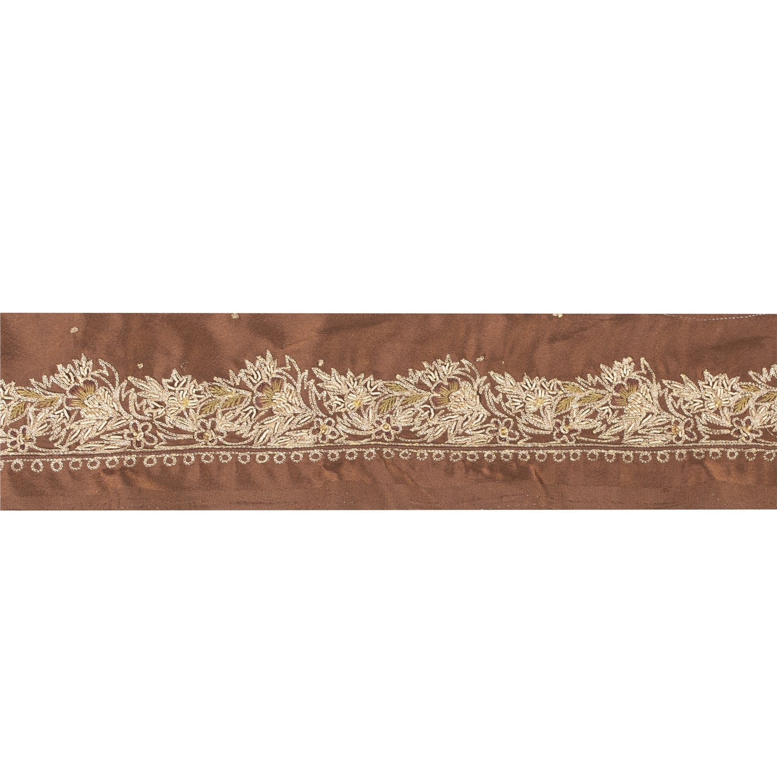 Sanskriti Vintage Sari Border Hand Embroidered Craft 1YD Trims Ribbon Brown 3 W