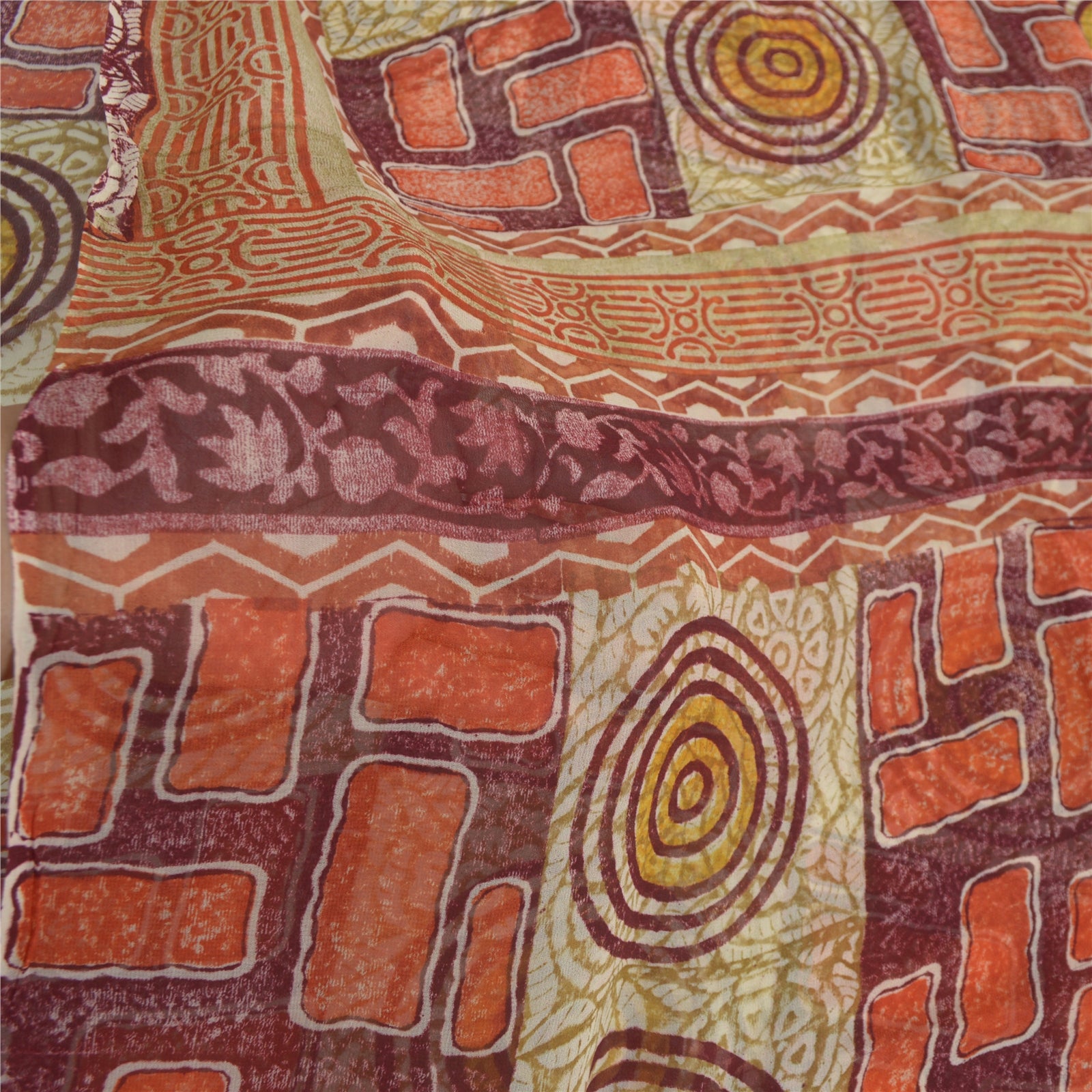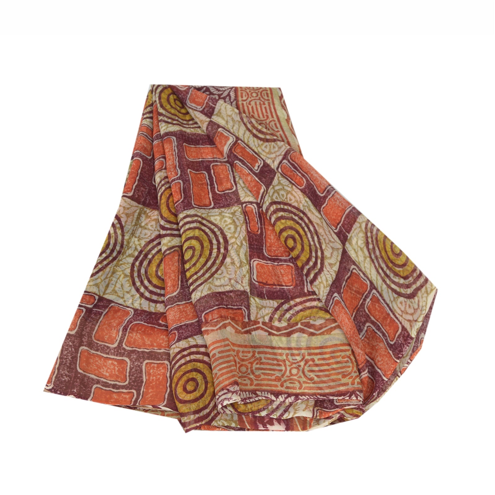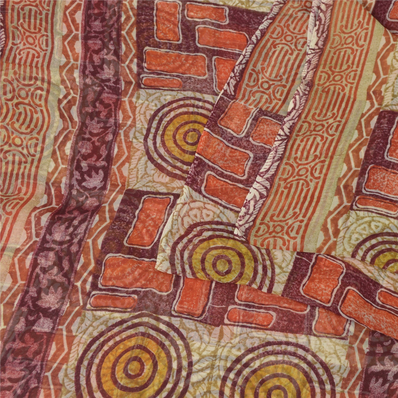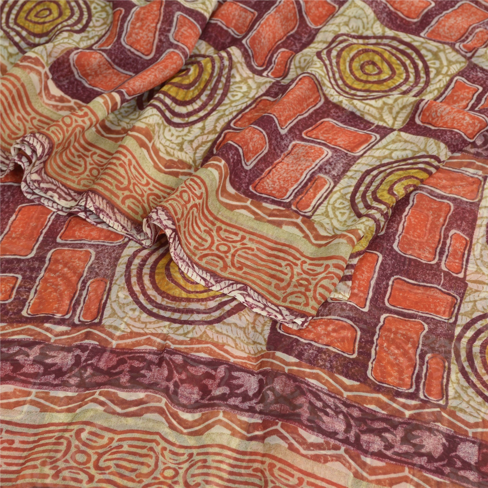 'THE ITEM COLOR OR SHADE MAY BE DARKER OR LIGHTER THAN THE PICTURE.' • Beautiful dark red colored printed pure georgette silk saree . • Pallu has printed geometric & abstract design . • Similar design in center part of sari . This unique vintage saree can be used for various crafting ideas even if you don't want to use it as a sari. Design a dress, use it as a throw, as window dressing, beachwear, sarongs, table linen and much more. Let your creative juices flow and use this decorated fabric in multiple fashion. 'International buyers please note: Import duties, taxes, and charges are not included in the item price or postage cost. These charges are the buyer's responsibility. Please check with your country's customs office to determine what these additional costs will be prior to bidding or buying. Buyer will pay custom duty/tax. It is calculated and charged differently by every country. As a seller I do not have any control over it. VAT or sales tax is calculated by the platform at the time of checkout. Customs charge is payable at the time of delivery.' PRG-2672