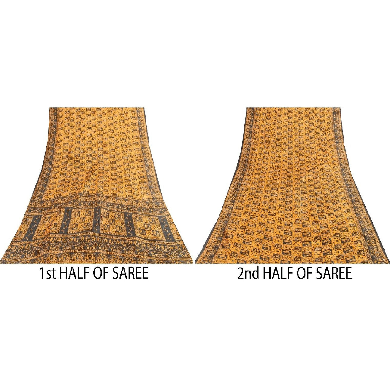 • Beautiful yellow & black colored printed art (artificial) silk saree . • Pallu has printed floral, human, horse & peacock design .Similar design in center part of sari . Versatile Uses-Crafting, Repurpose, Creative Sewing Project, Dressmaking, Kaftans, Use It As A Sari, Window Dressing, Upcycling, Sarongs, Throw,Table Linen,Decorative Fabric, Sustainable Indian Fabric. THE ITEM COLOR OR SHADE MAY BE DARKER OR LIGHTER THAN THE PICTURE.' International buyers please note: Import duties, taxes, and charges are not included in the item price or postage cost. Buyer will pay custom duty/tax,VAT, and any applicable charges at the time of delivery. pr-32726