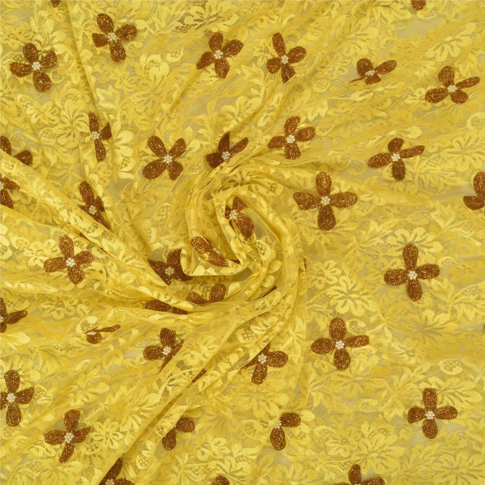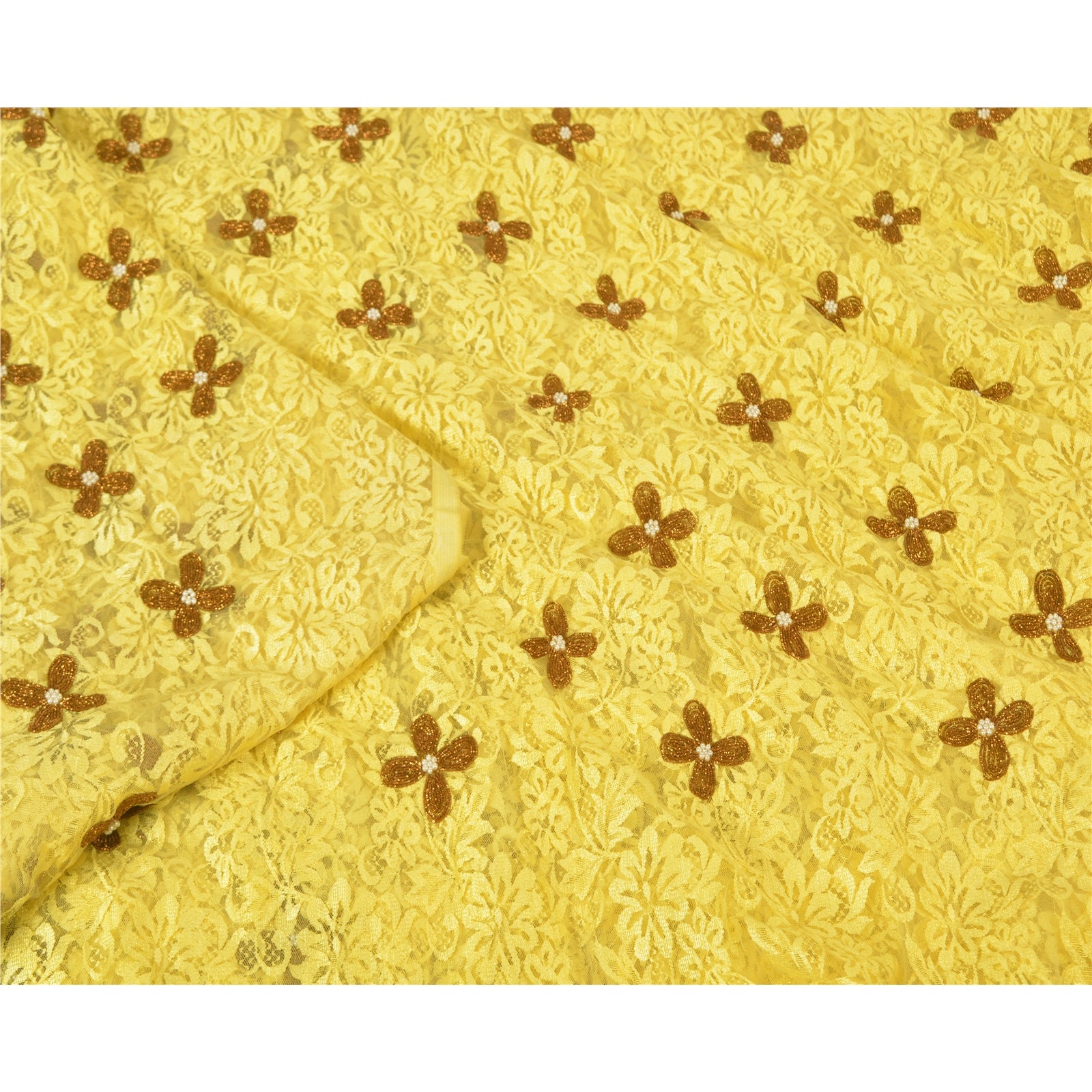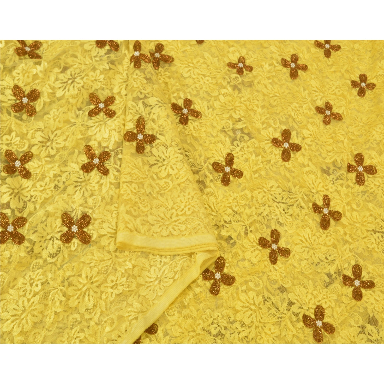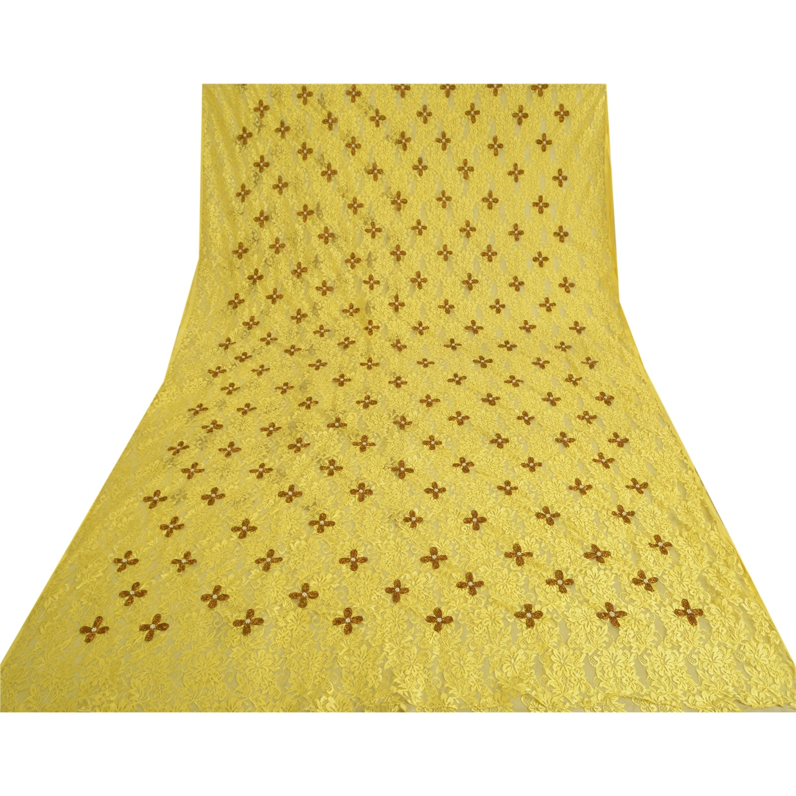 Санскрити Винтаж Желтый Тяжелые Сари Сетка Сетка Ручной Работы Бисером Сплетенная Сари Устойчивая Ткань