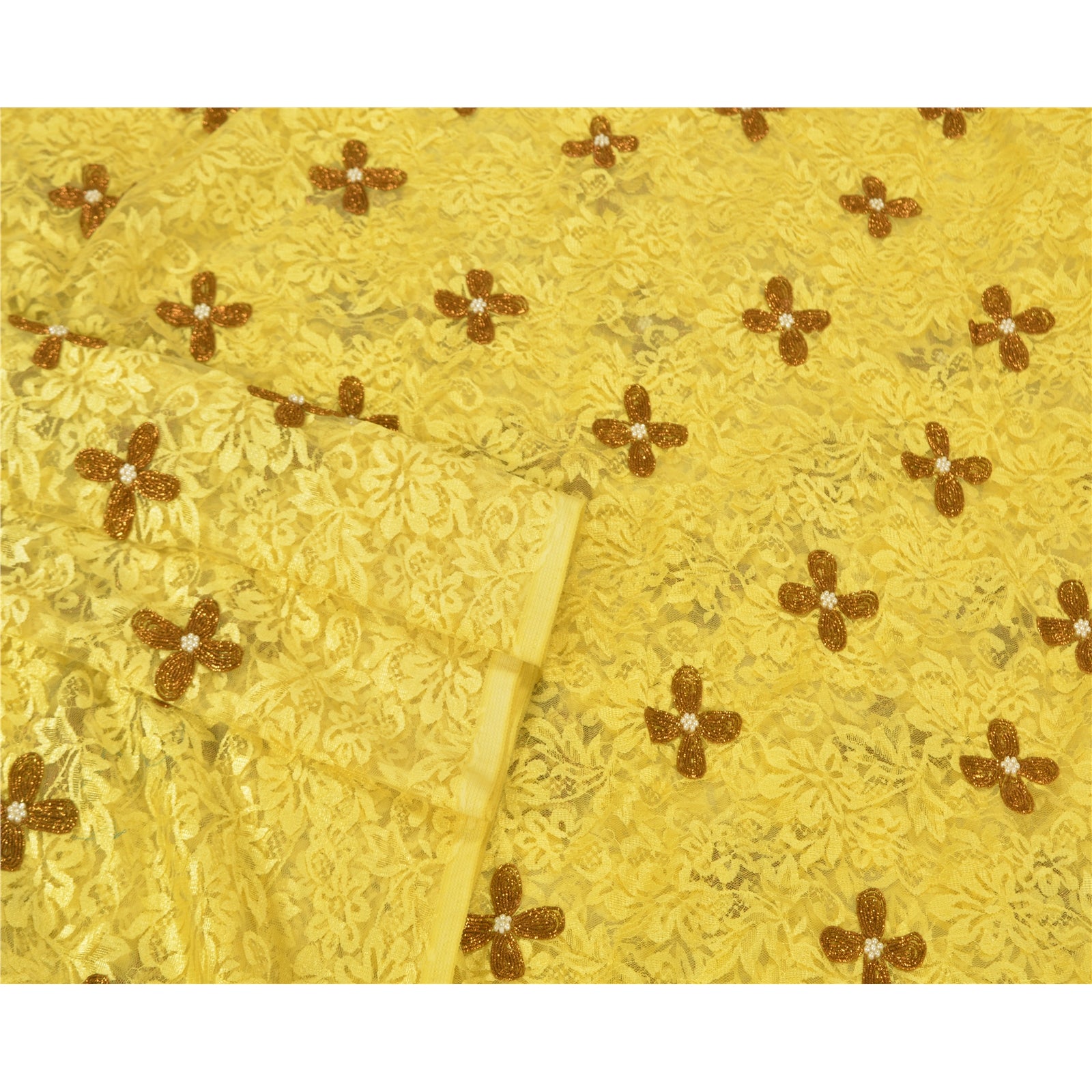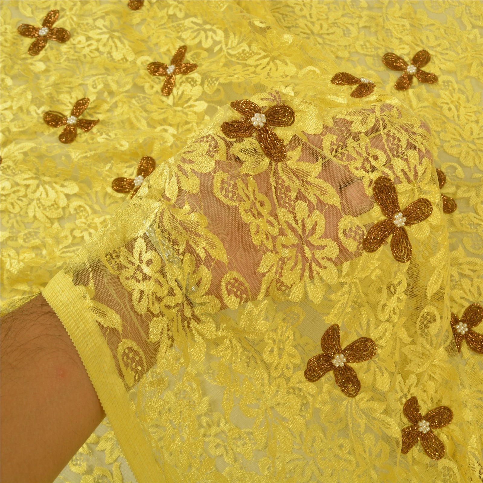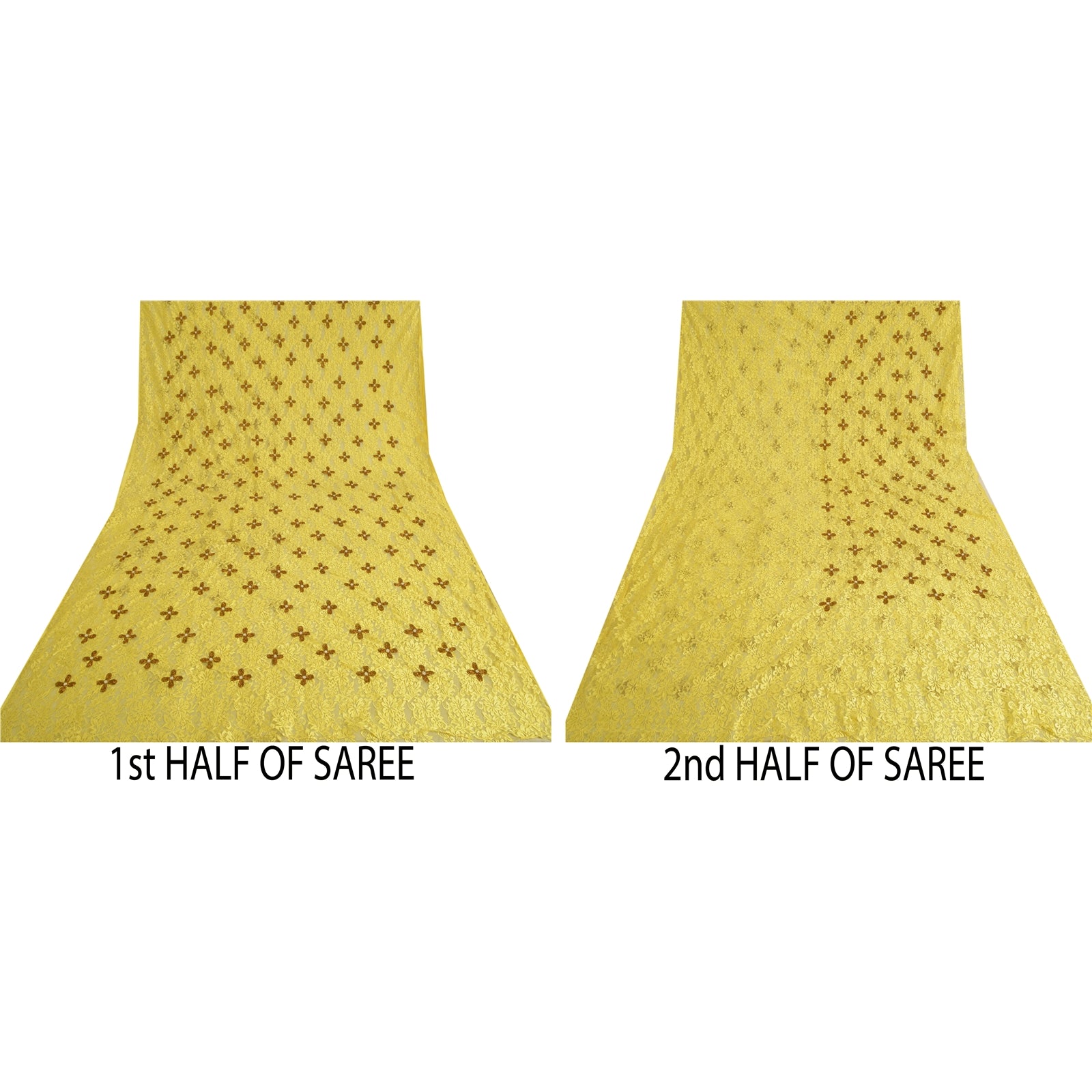Великолепное сари из желтой сетки, вышитое вручную, с тяжелым плетением. По всему сари идет желтый цветочный узор, украшенный металлизированной золотистой вышивкой дабка и кремовыми бусинами, напоминающими жемчуг. Это тяжелое сари можно использовать и для различных идей по рукоделию. Используйте его для дизайна одежды, в качестве пледа, для оформления окон, обивки, столового белья и многого другого. Дайте волю своим творческим сокам! «Международные покупатели, обратите внимание: Импортные пошлины, налоги и сборы не включены в цену товара или стоимость почтовых расходов. Эти сборы оплачивает покупатель. Пожалуйста, свяжитесь с таможней вашей страны, чтобы определить, какими будут эти дополнительные расходы, до торгов или покупки. Покупатель оплачивает таможенную пошлину/налог. Она рассчитывается и взимается по-разному в каждой стране. Как продавец, я не имею никакого контроля над ней. НДС или налог с продаж рассчитывается платформой во время оформления заказа. Таможенный сбор оплачивается во время доставки.