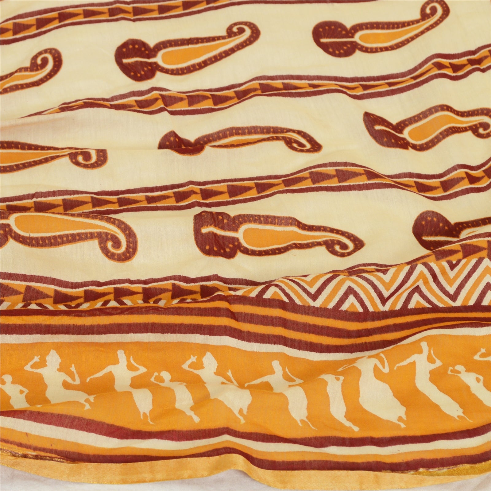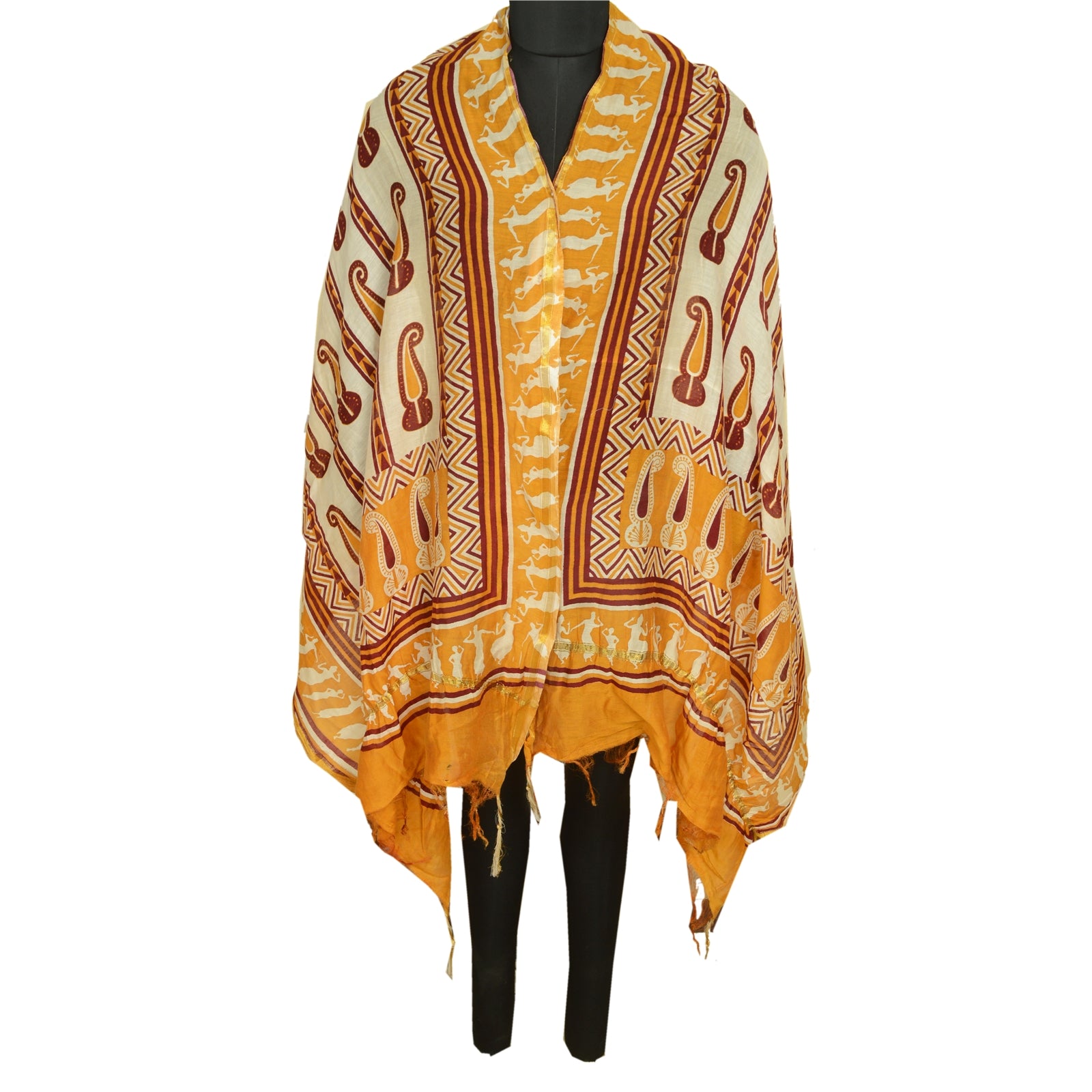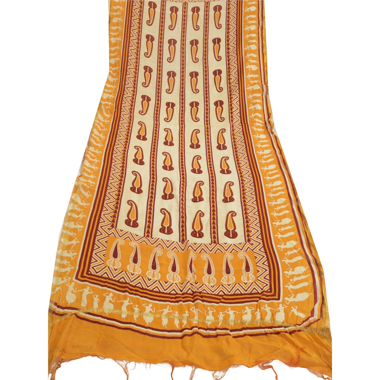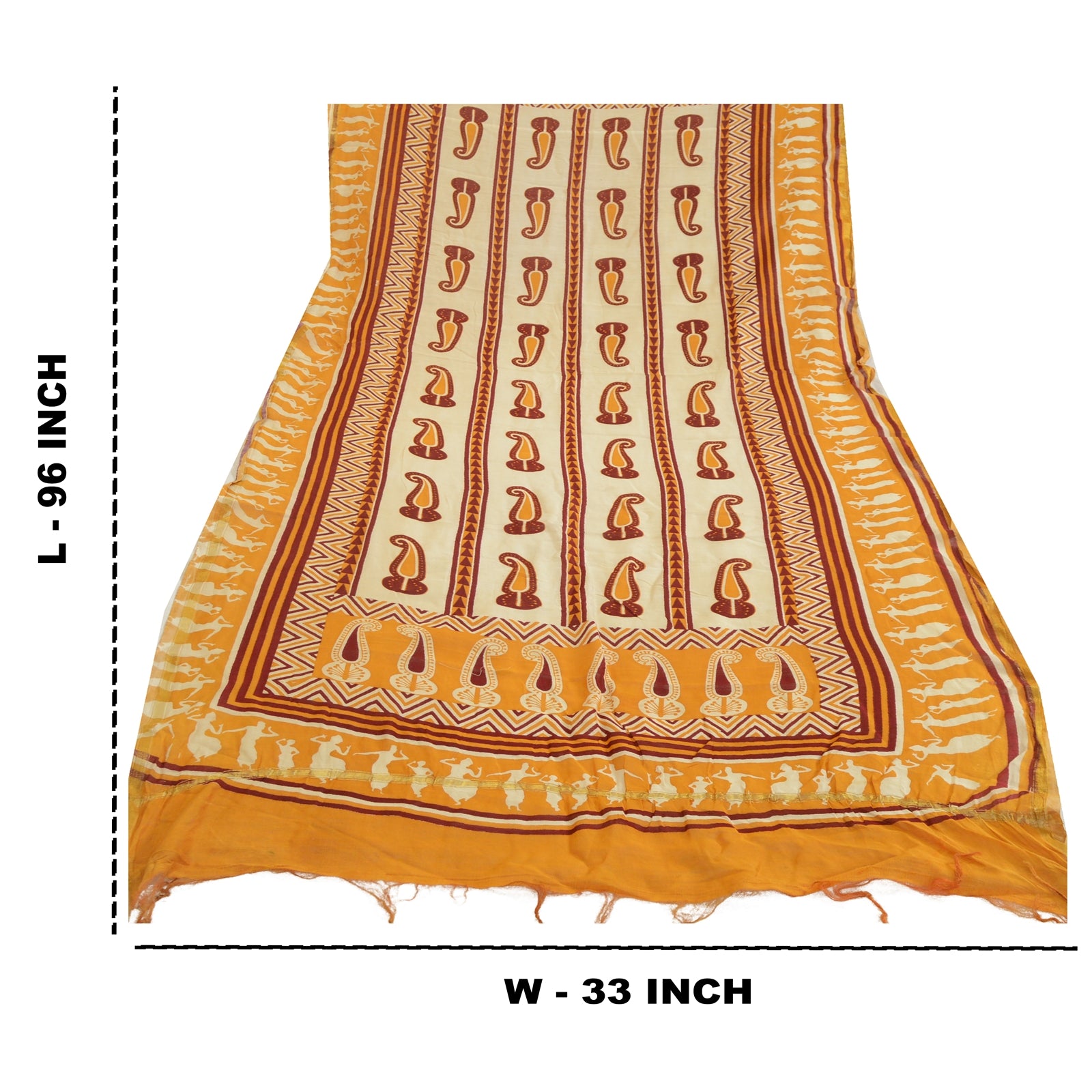 «ЦВЕТ ИЛИ ОТТЕНОК ИЗДЕЛИЯ МОЖЕТ БЫТЬ ТЕМНЕЕ ИЛИ СВЕТЛЕЕ, ЧЕМ НА ИЗОБРАЖЕНИИ». Красивый длинный шарф/дупатта из 100% чистого шелка желтого и цвета слоновой кости с принтом. Центральная часть блока дупатта с напечатанным узором пейсли. Край украшен зигзагообразным печатным рисунком, а также изображениями людей и цветов, что еще больше подчеркивает красоту дупатты/палантина. Дупатта имеет одинаковую бахрому по обоим концам каймы. Эту дупатту/палантин можно использовать для различных идей по рукоделию. Используйте ее для дизайна платьев, в качестве пледа, для оформления окон, обивки, столового белья и многого другого. Дайте волю своим творческим сокам. Обратите внимание, что зарубежные покупатели: Импортные пошлины, налоги и сборы не включены в цену товара или стоимость почтовых расходов. Эти сборы оплачивает покупатель. Пожалуйста, свяжитесь с таможней вашей страны, чтобы определить, какими будут эти дополнительные расходы, до торгов или покупки. Покупатель оплачивает таможенную пошлину/налог. Она рассчитывается и взимается по-разному в каждой стране. Как продавец, я не имею никакого контроля над ней. НДС или налог с продаж рассчитывается платформой во время оформления заказа. Таможенный сбор оплачивается во время доставки.