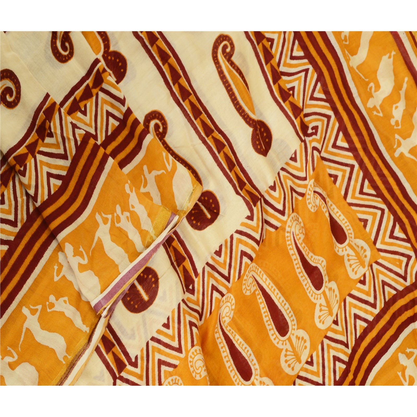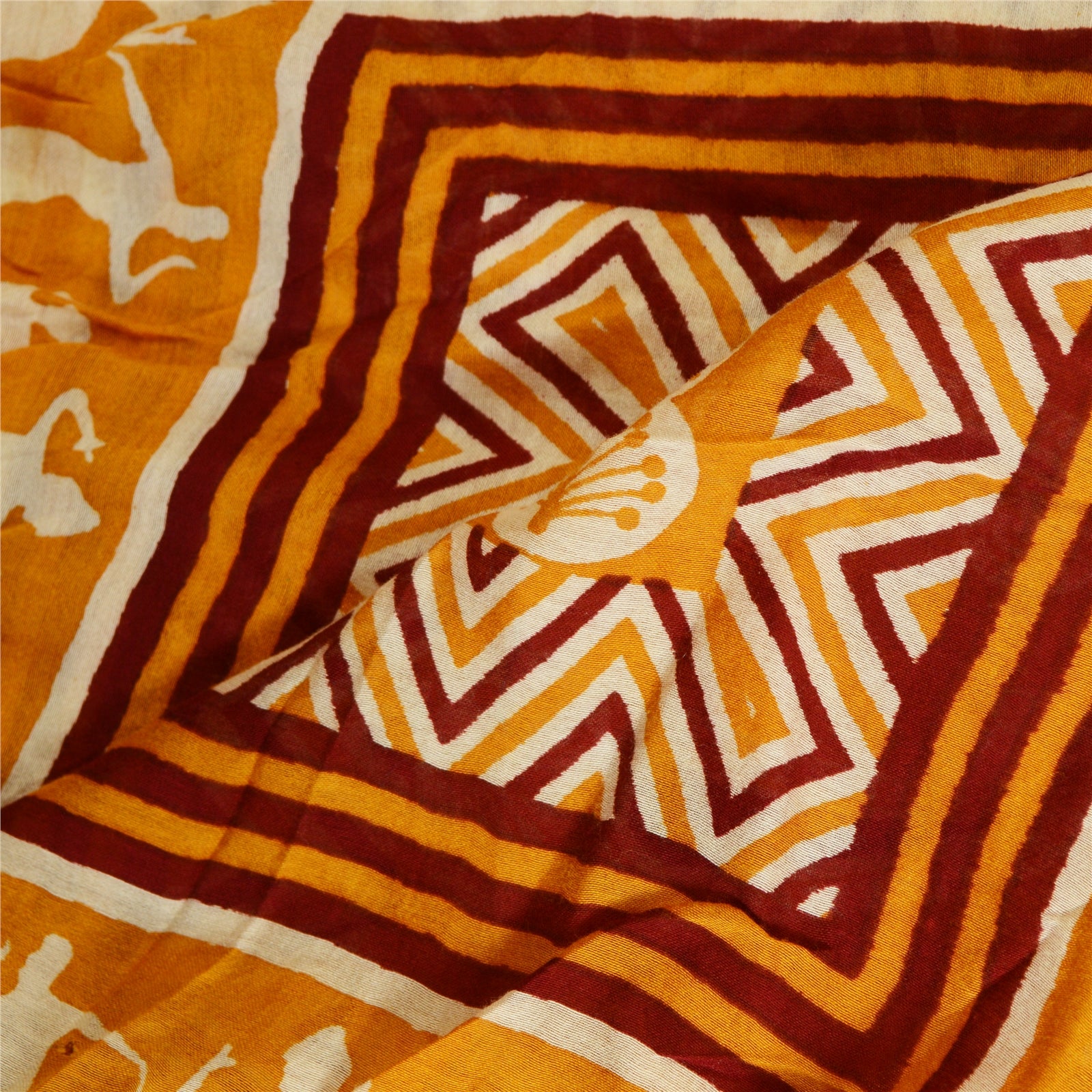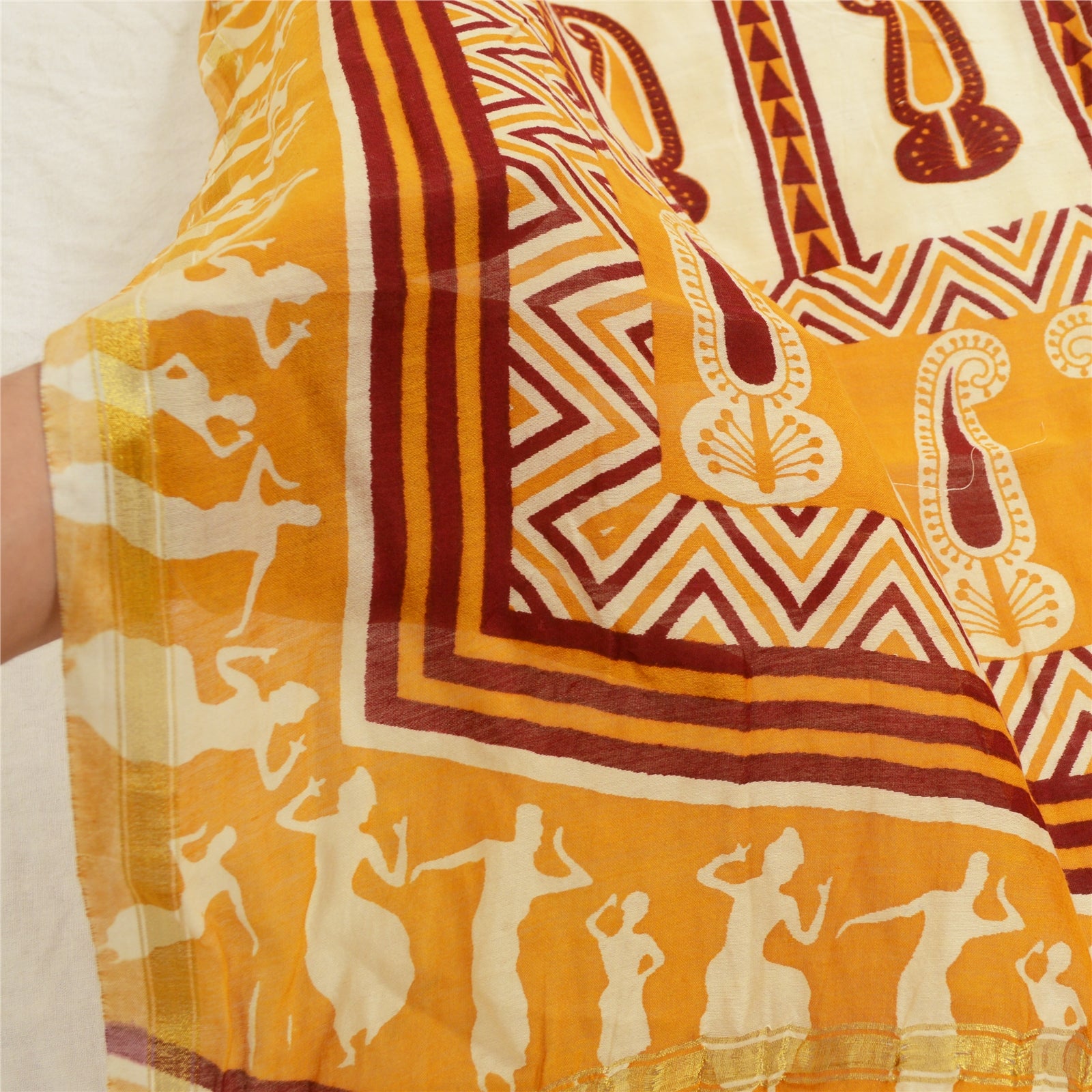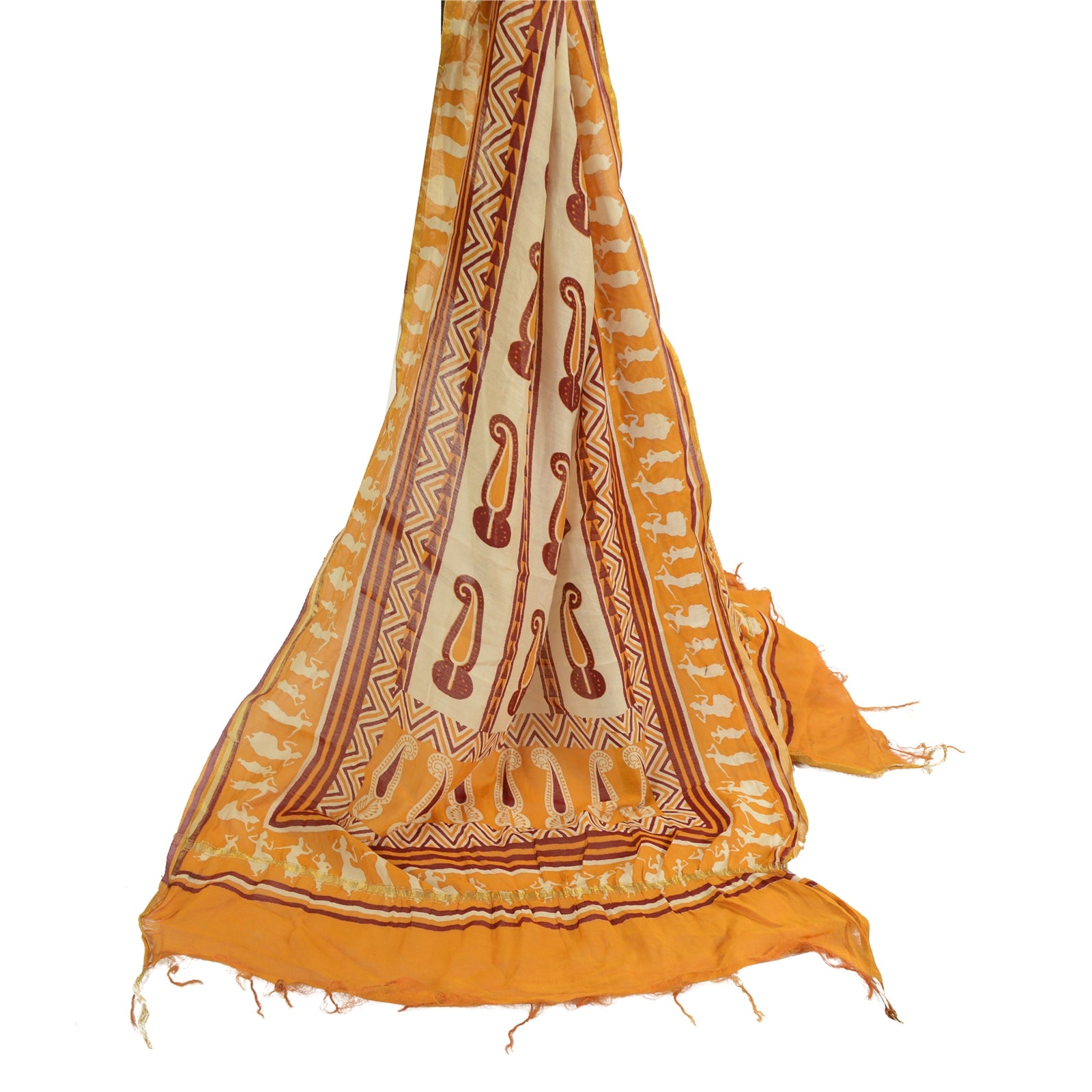 Санскрити Винтаж Желтый/цвета слоновой кости Чистый Шелк Дупатта Длинный Палантин Блок Печатный Хиджаб