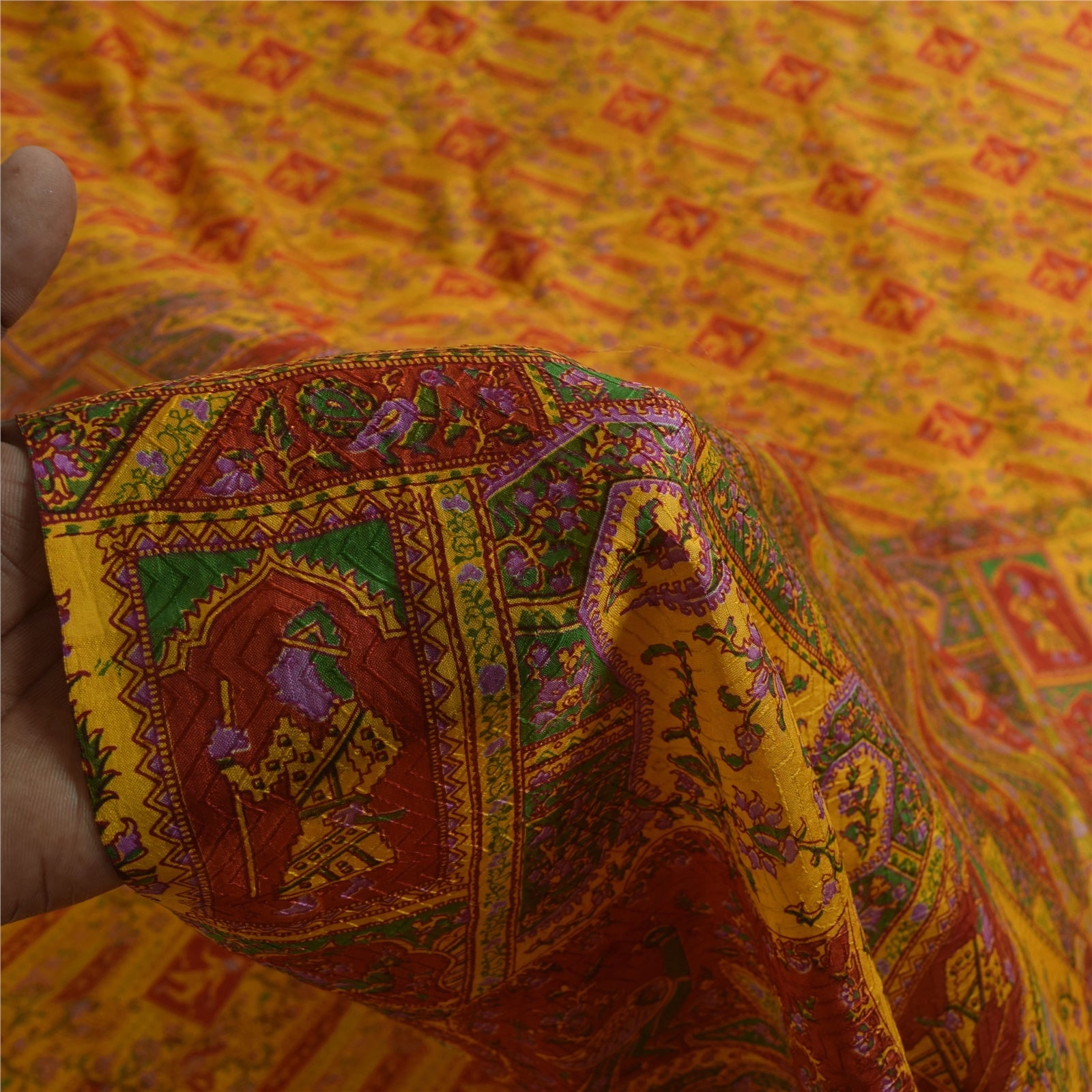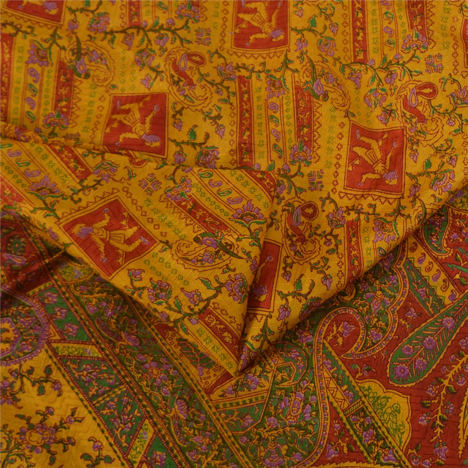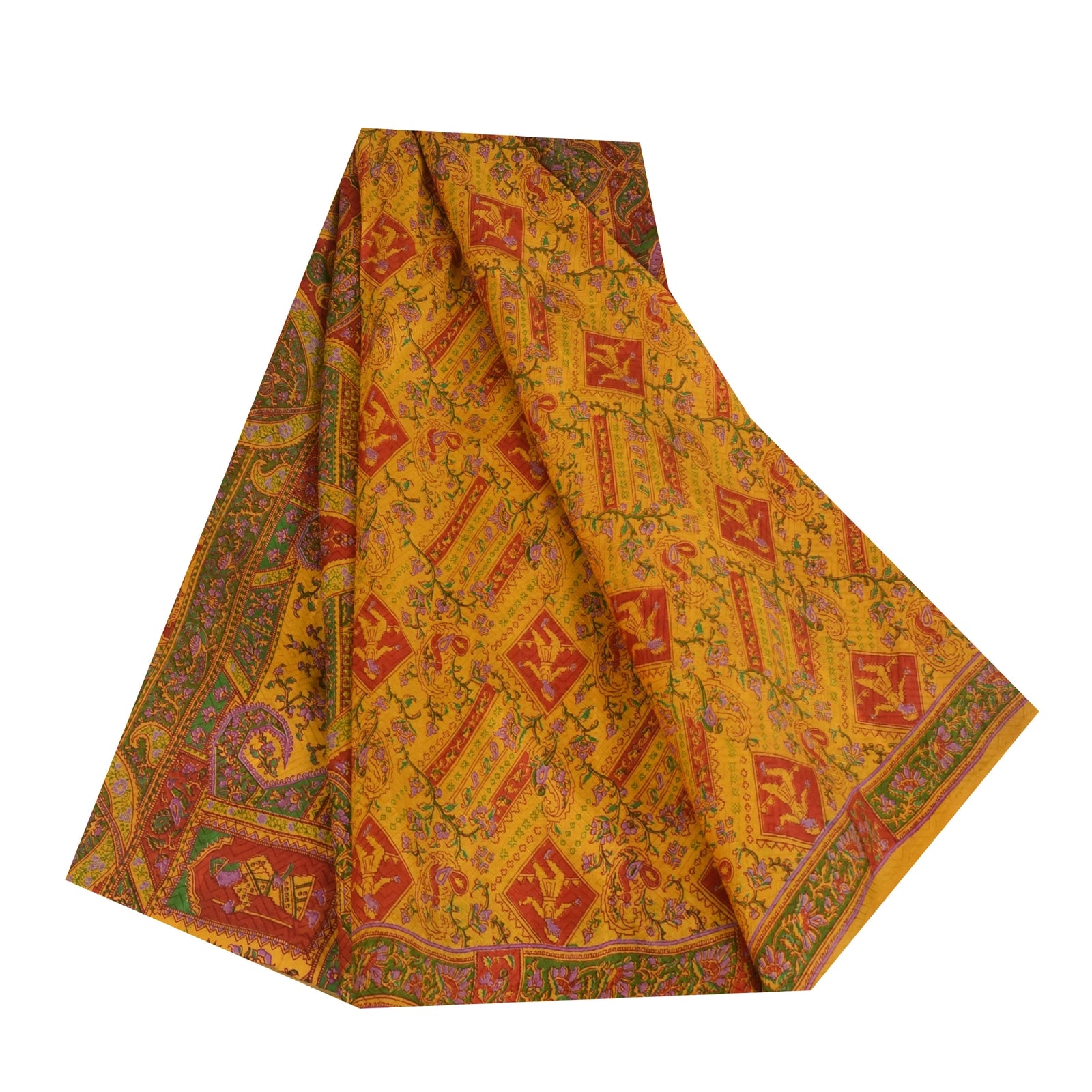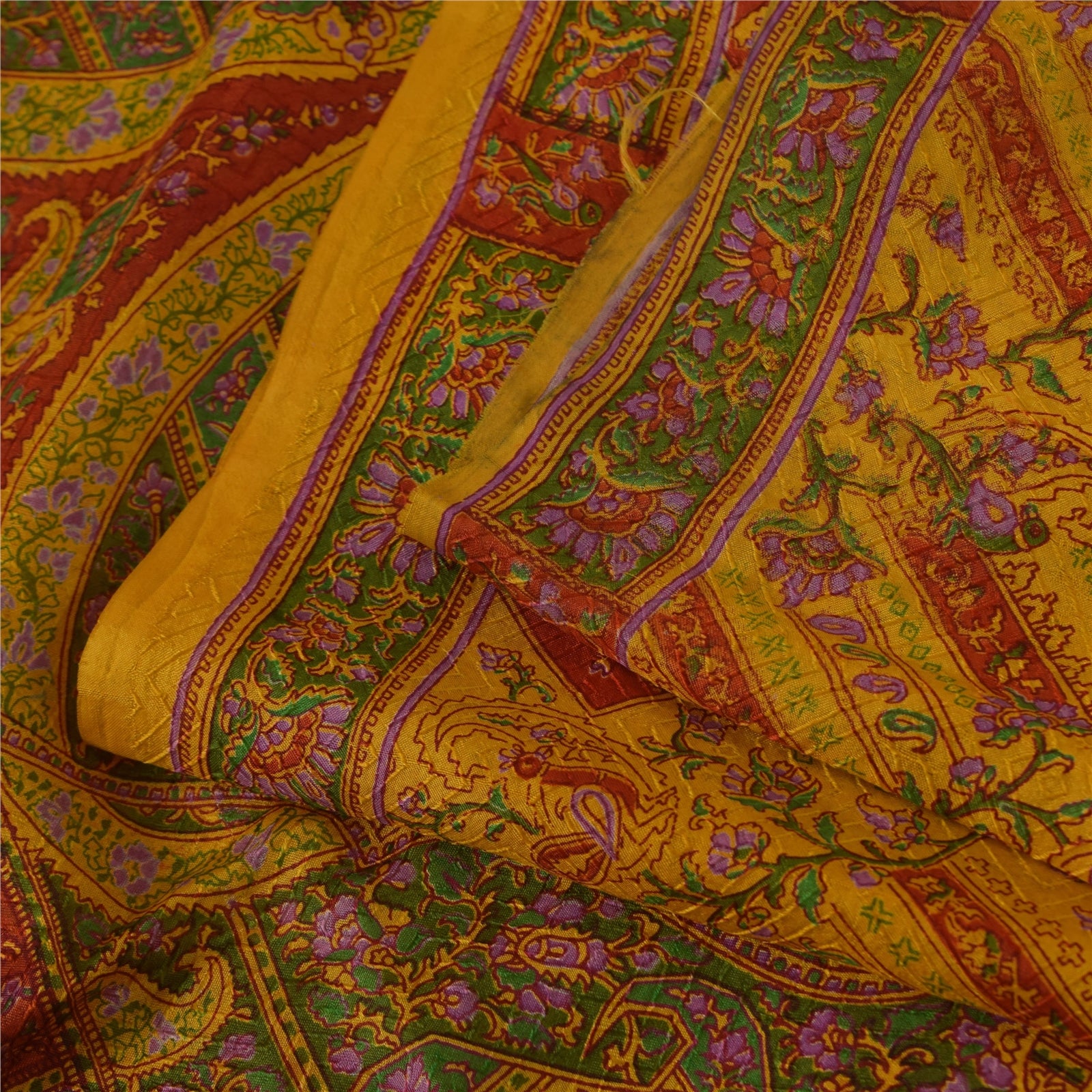 Sanskriti Vintage Yellow & Red Pure Silk Printed Sarees Sari Floral Craft Fabric