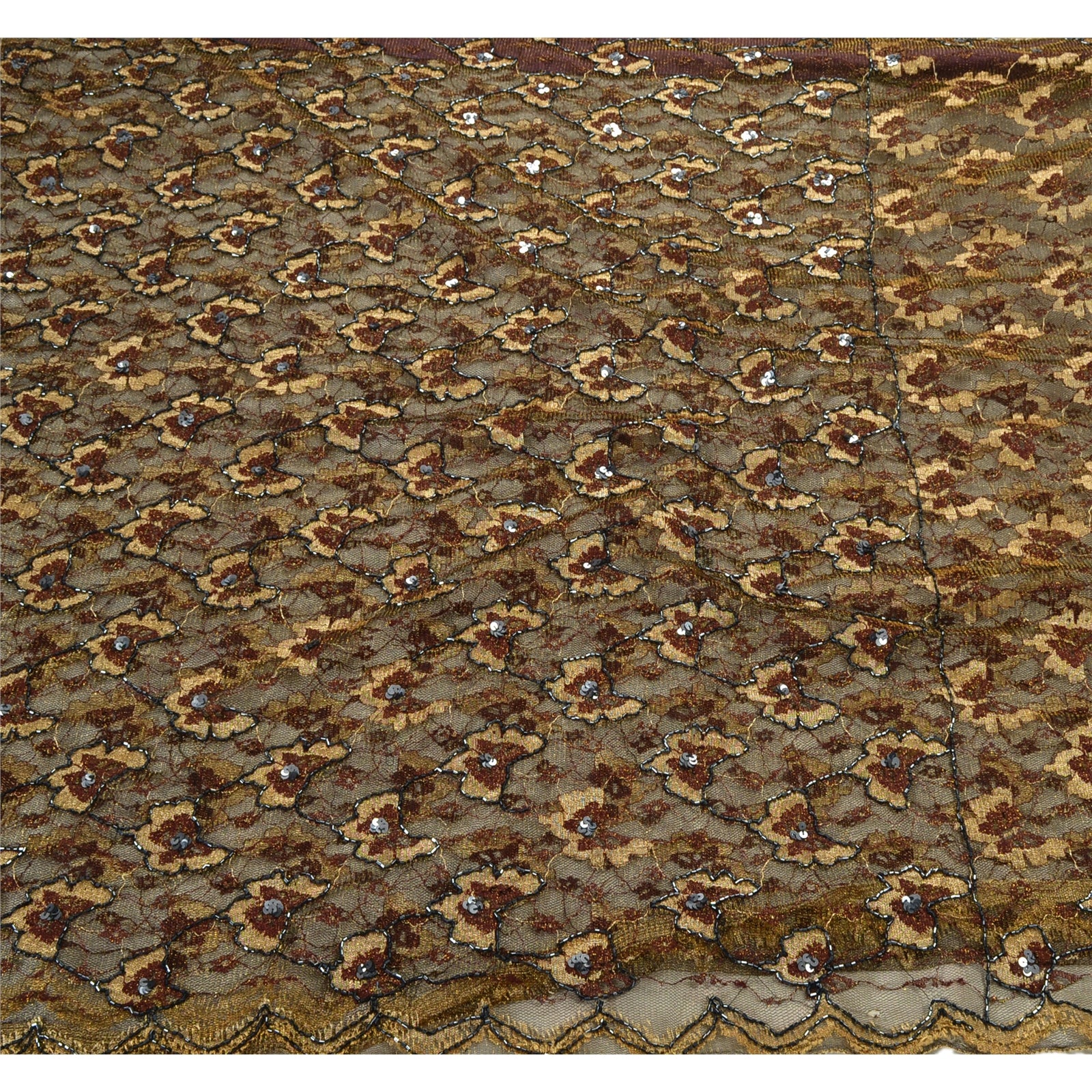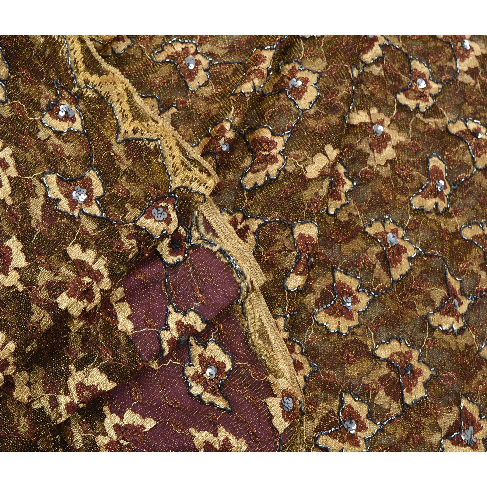 ? Привлекательное черное сари из плетеной сетки с ручной вышивкой. ? Pallu & Border отличается цветочным узором, украшенным черными пайетками и черными стеклянными бусинами. ? В центральной части сари присутствуют цветочные мотивы с похожей работой. Что особенного в этом сари? Сверкающие пайетки с цветочным узором на черной основе из экологически чистой ткани действительно подчеркивают красоту сари. Это уникальное винтажное сари можно использовать для различных идей по рукоделию, даже если вы не хотите использовать его как сари. Спроектируйте платье, используйте его как плед, как украшение для окон, обивку, саронги, столовое белье и многое другое. Дайте волю своим творческим способностям и используйте эту декорированную устойчивую ткань в различных вариантах.