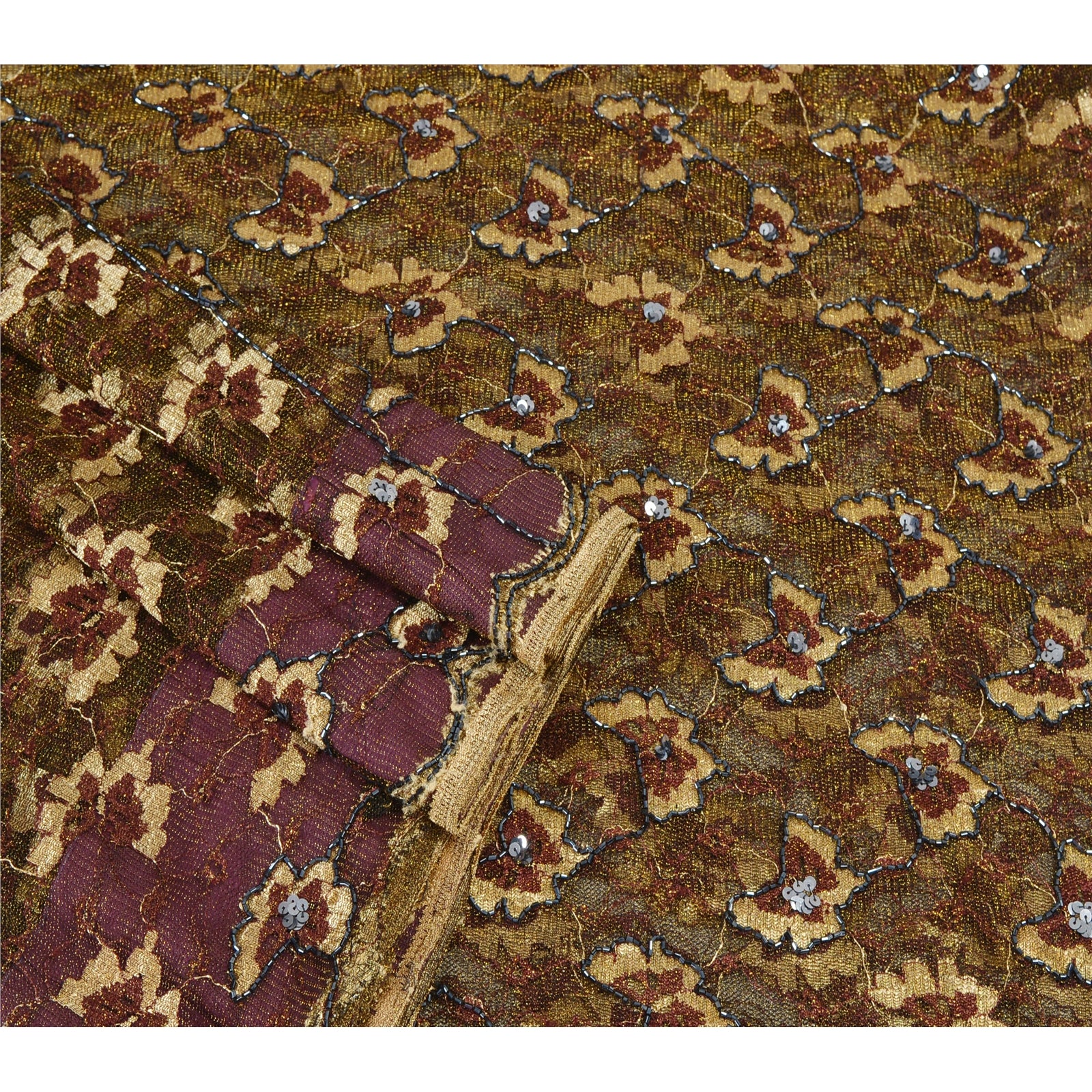 Санскритское винтажное сари сетка ручной работы из бисера, тканая ткань ручной работы из экологически чистой ткани премиум-класса